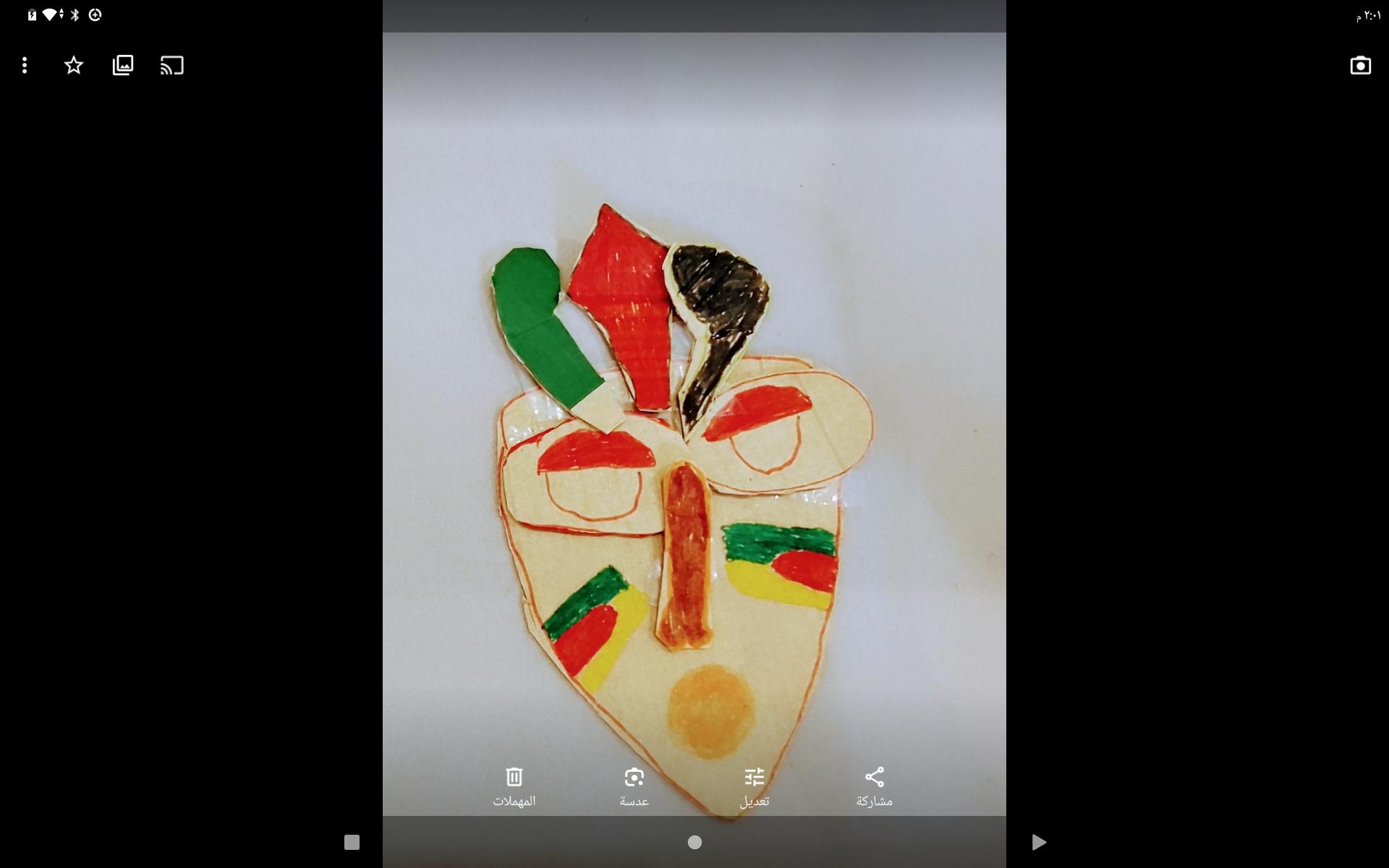 مطلوب للمرة القادمة (الماسك الأفريقي): كرتون – أوراق ملونة لو متاح – مقص – ألوان أكريلك أو ماركر ( فلوماستر) ، يجب أن تكون الألوان مناسبة للكرتون وتجربوها عليه قبل الحصة- ماركر أسود للتحديد ورسم الزخارف الدقيقة- مسدس شمع أو أي مادة مناسبة للصق الكرتون – خرز أو أي خامات في البيت ممكن ندخلها في الماسك