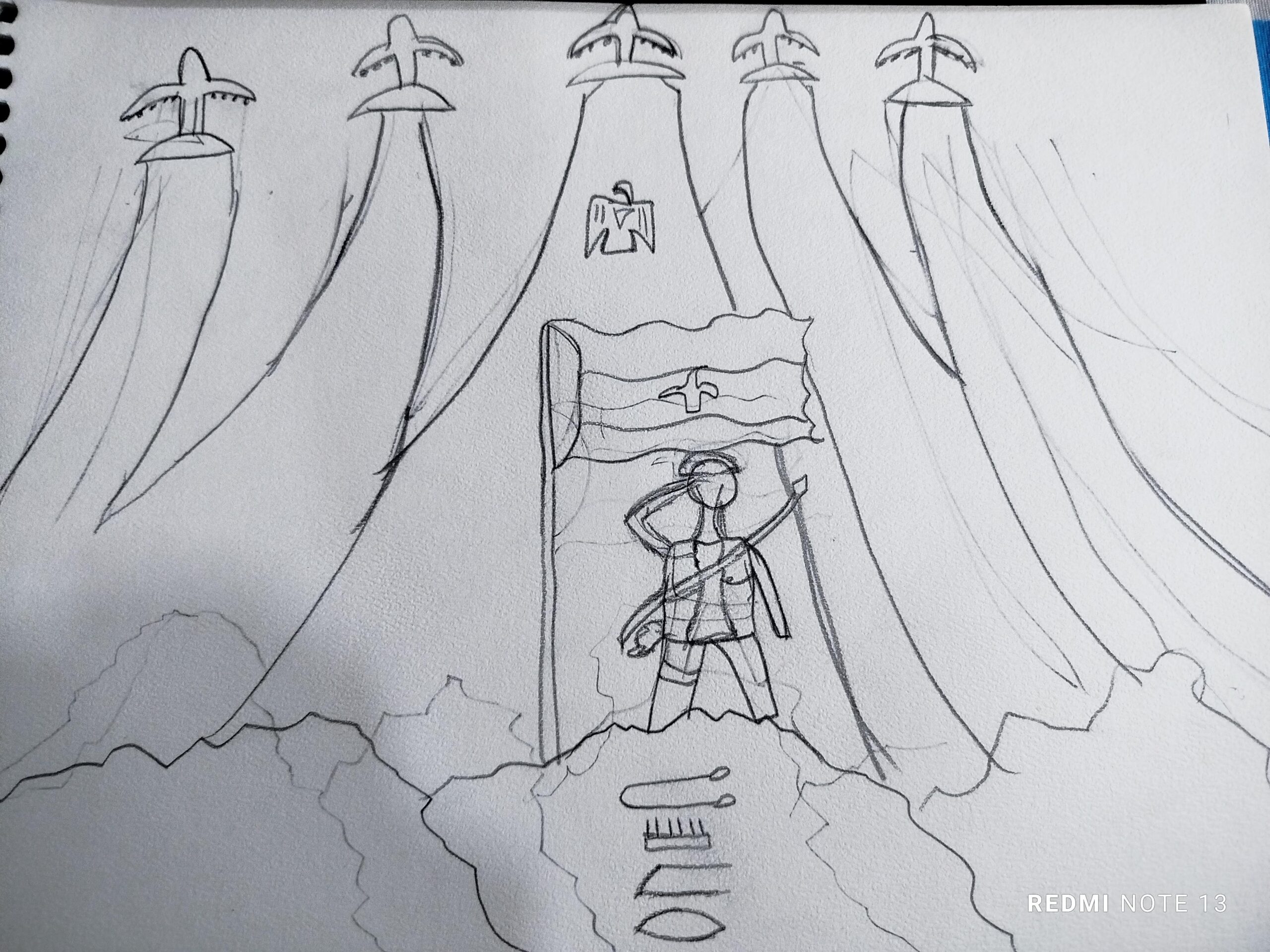 النهاردة عملنا اسكتشات للوحة (انتصارات مصر عبر العصور)، وبدأنا في رسم اللوحة