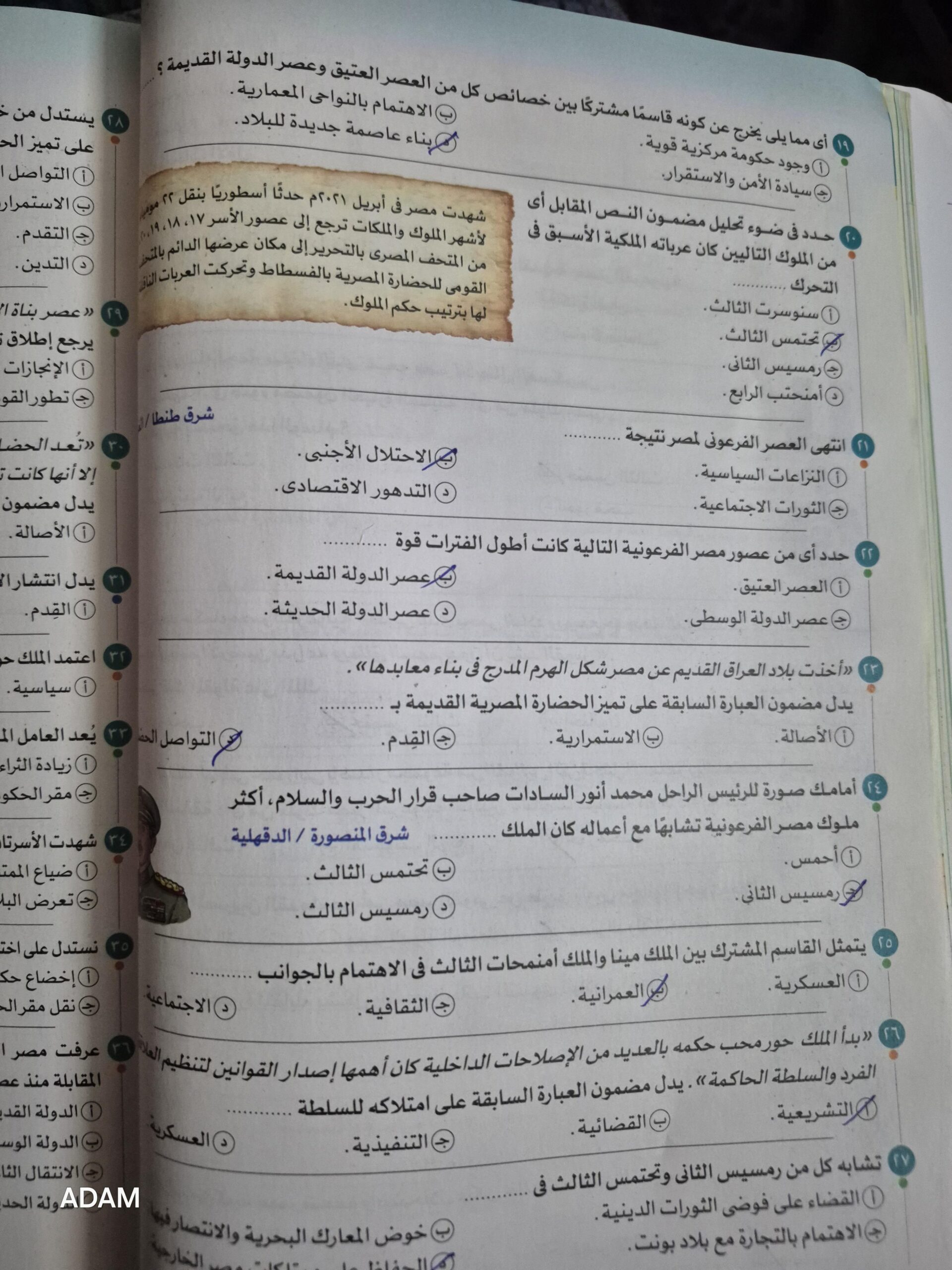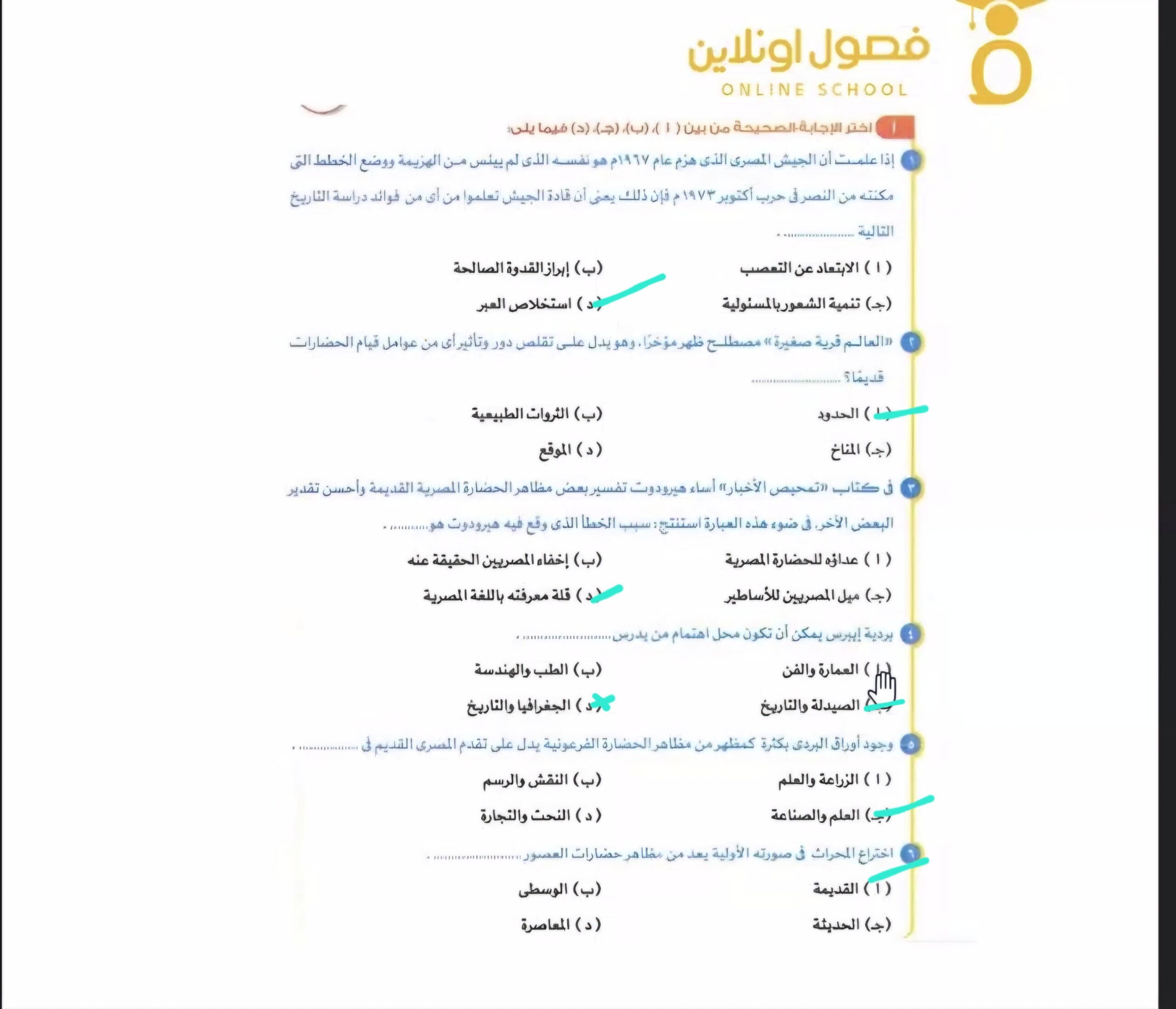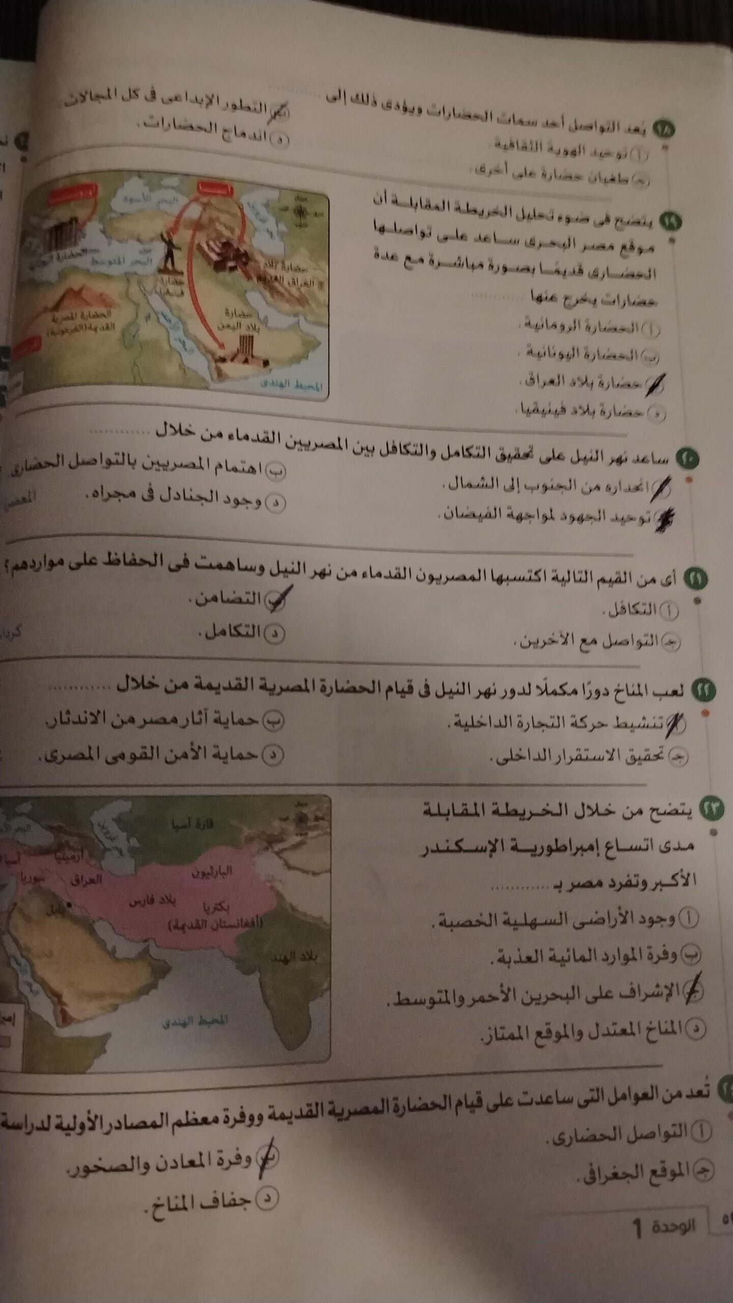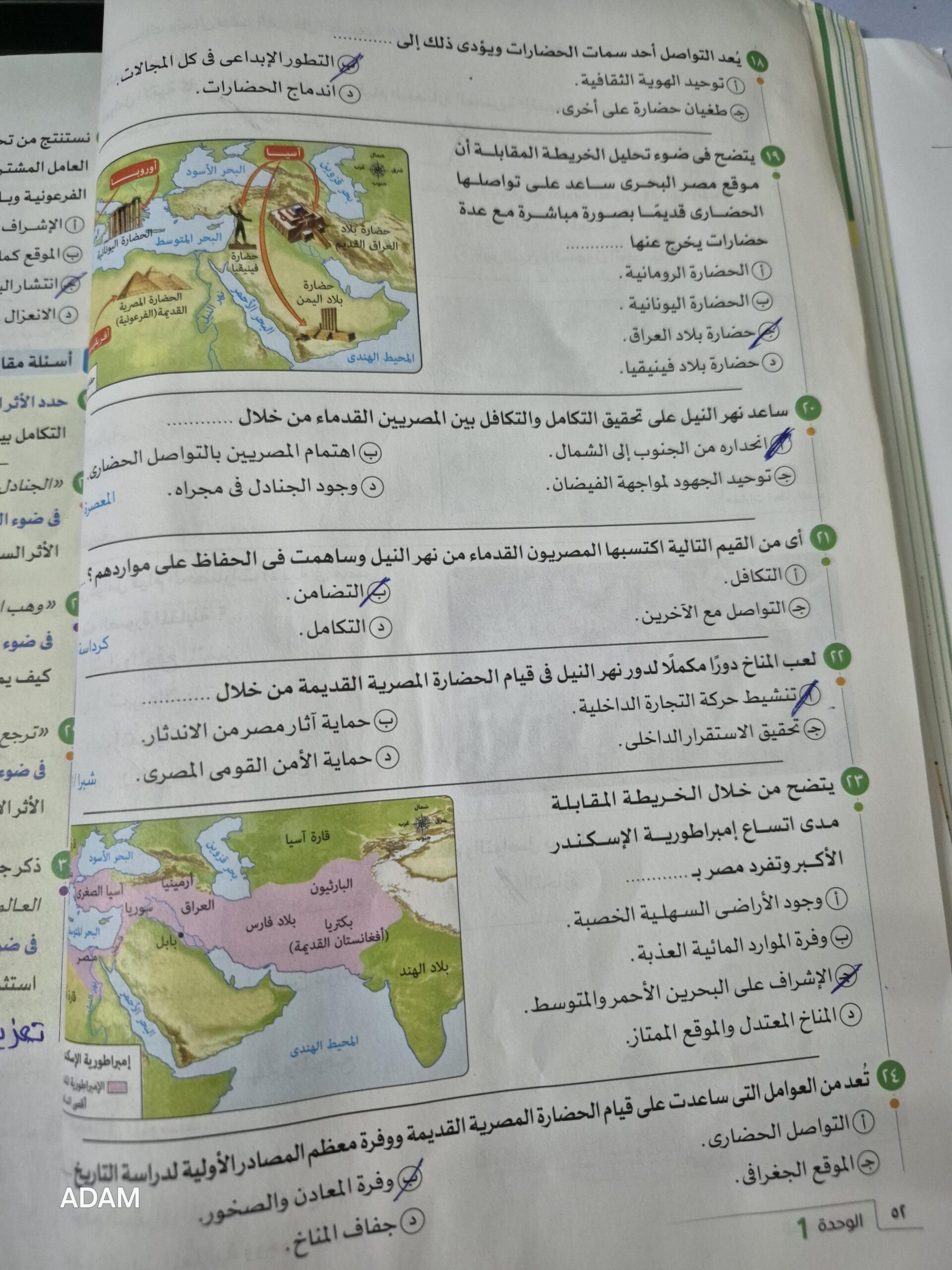 اخدنا اليوم اختبار الحضاره والتاريخ