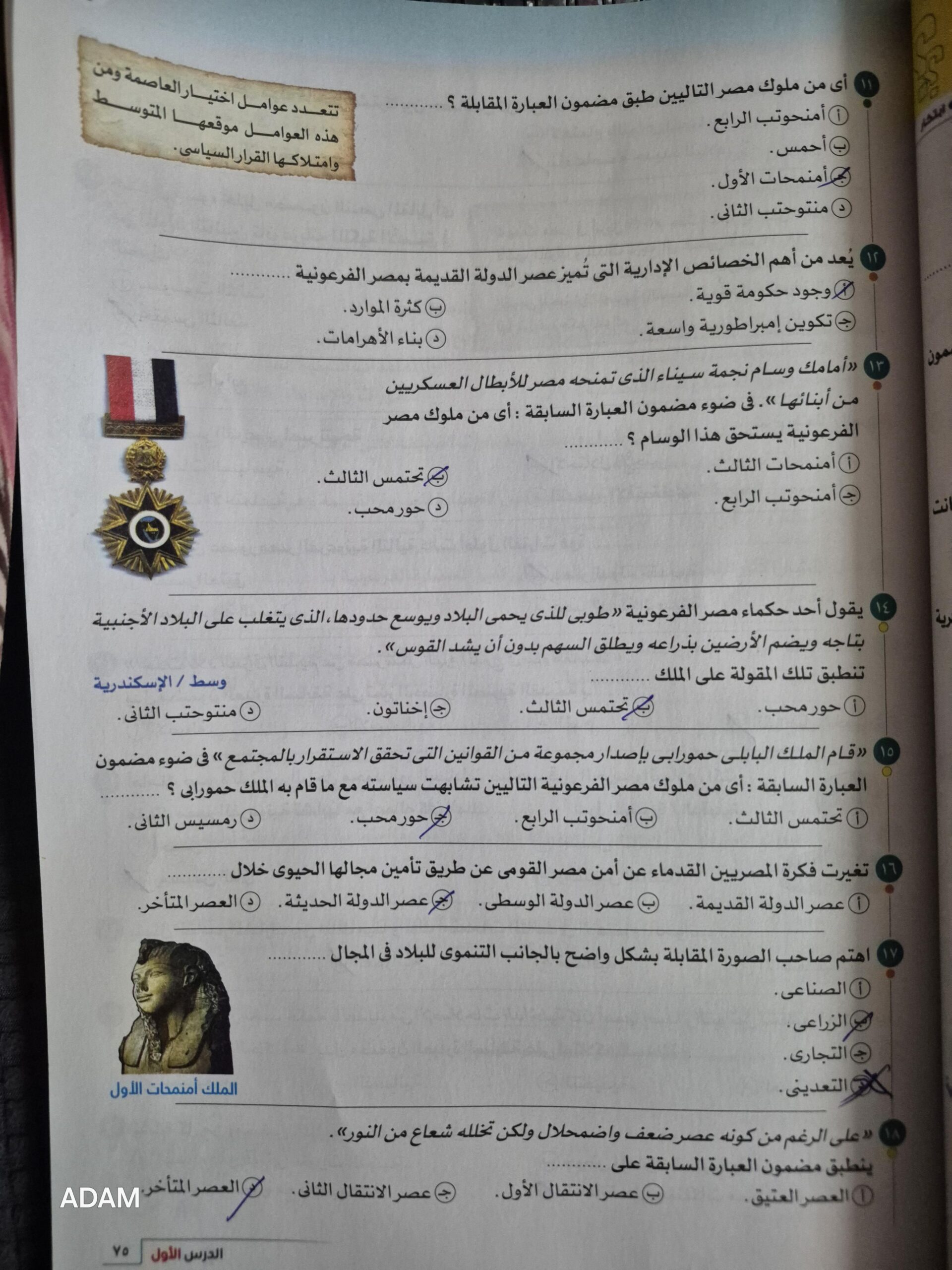 اخدنا اليوم الجزء الاول من الدرس الاول ملامح من تاريخ مصر القديمه