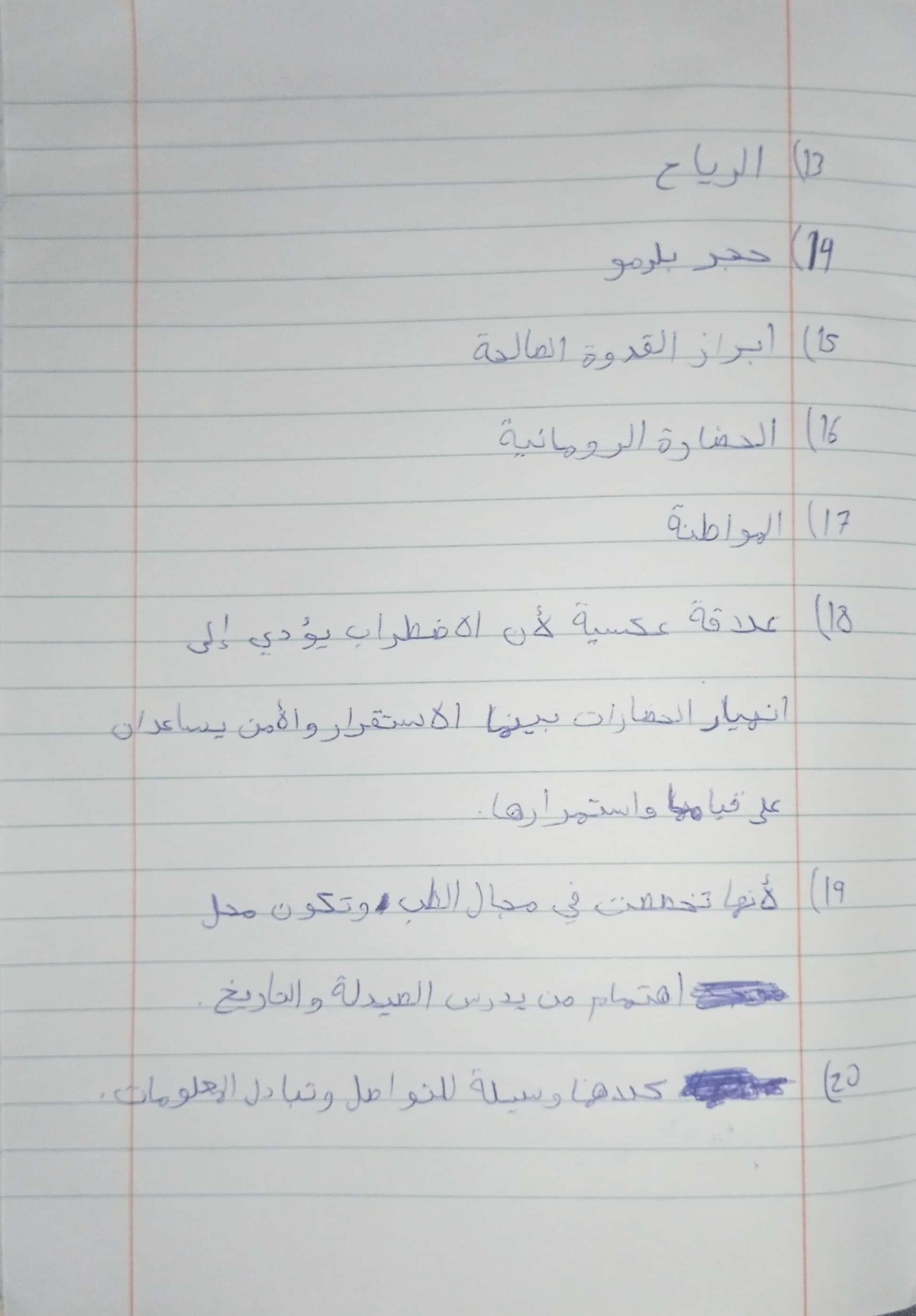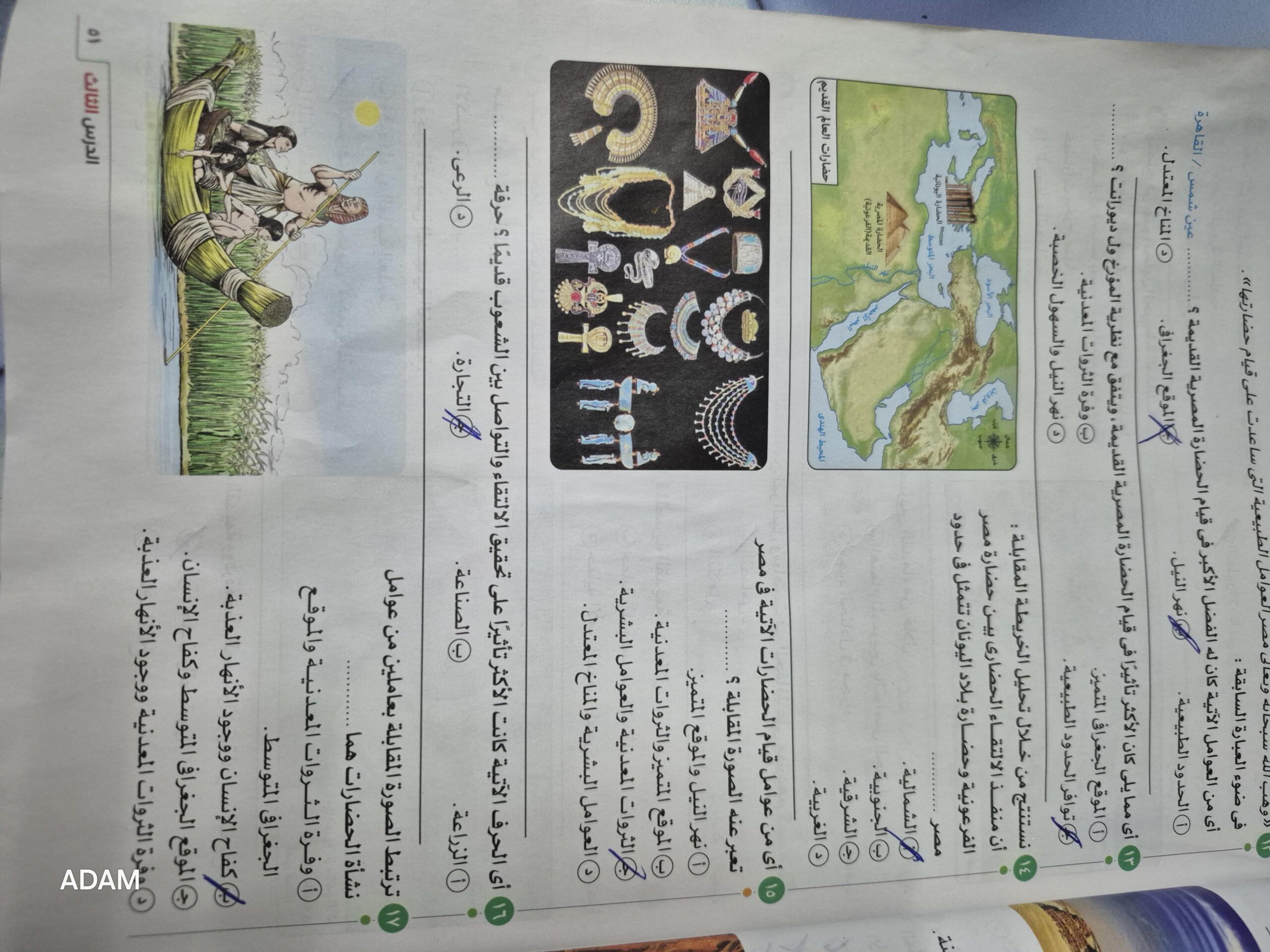 كملنا حل تدريبات علي مصادر دراسه الحضارات