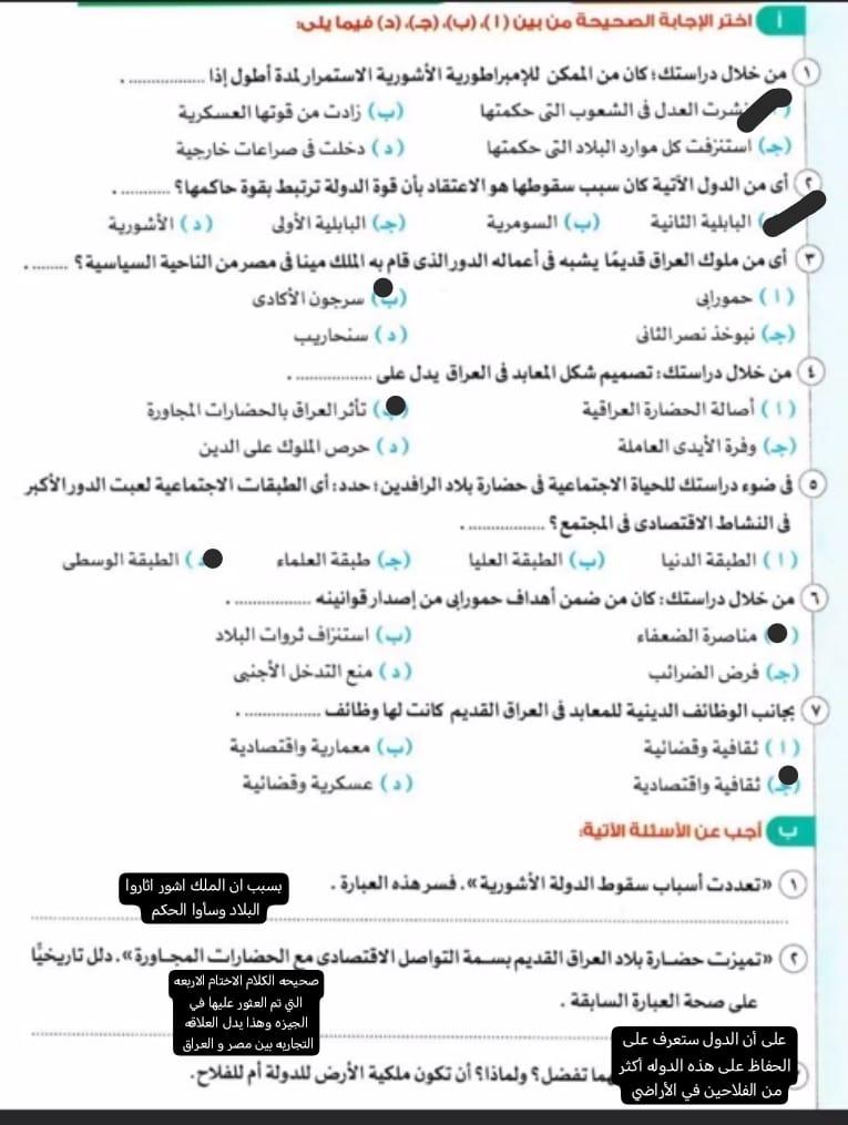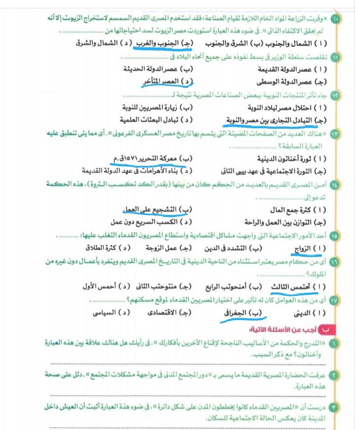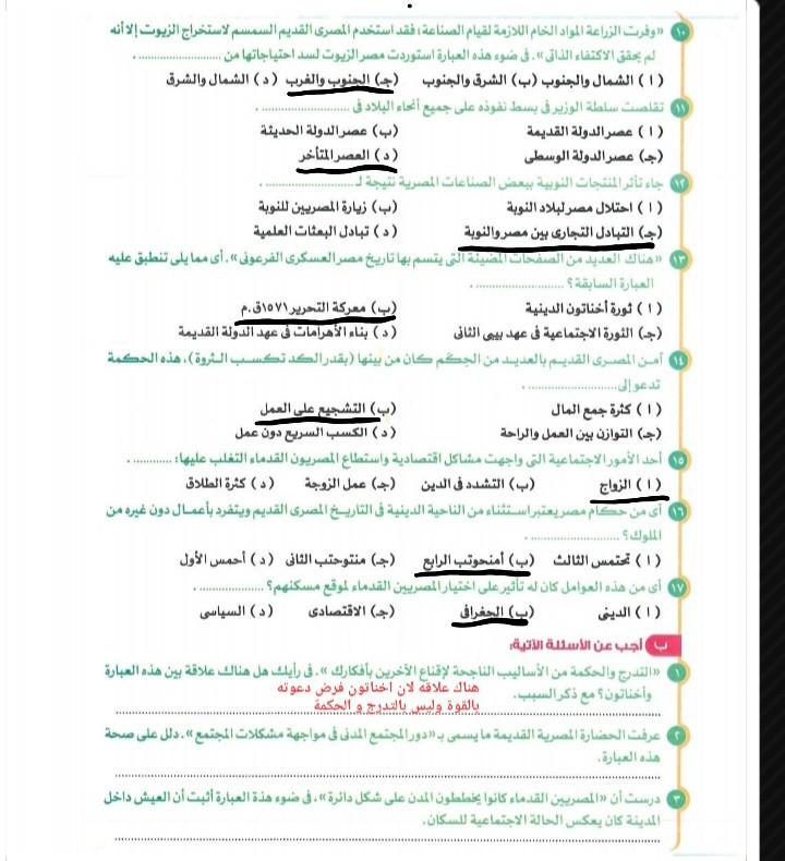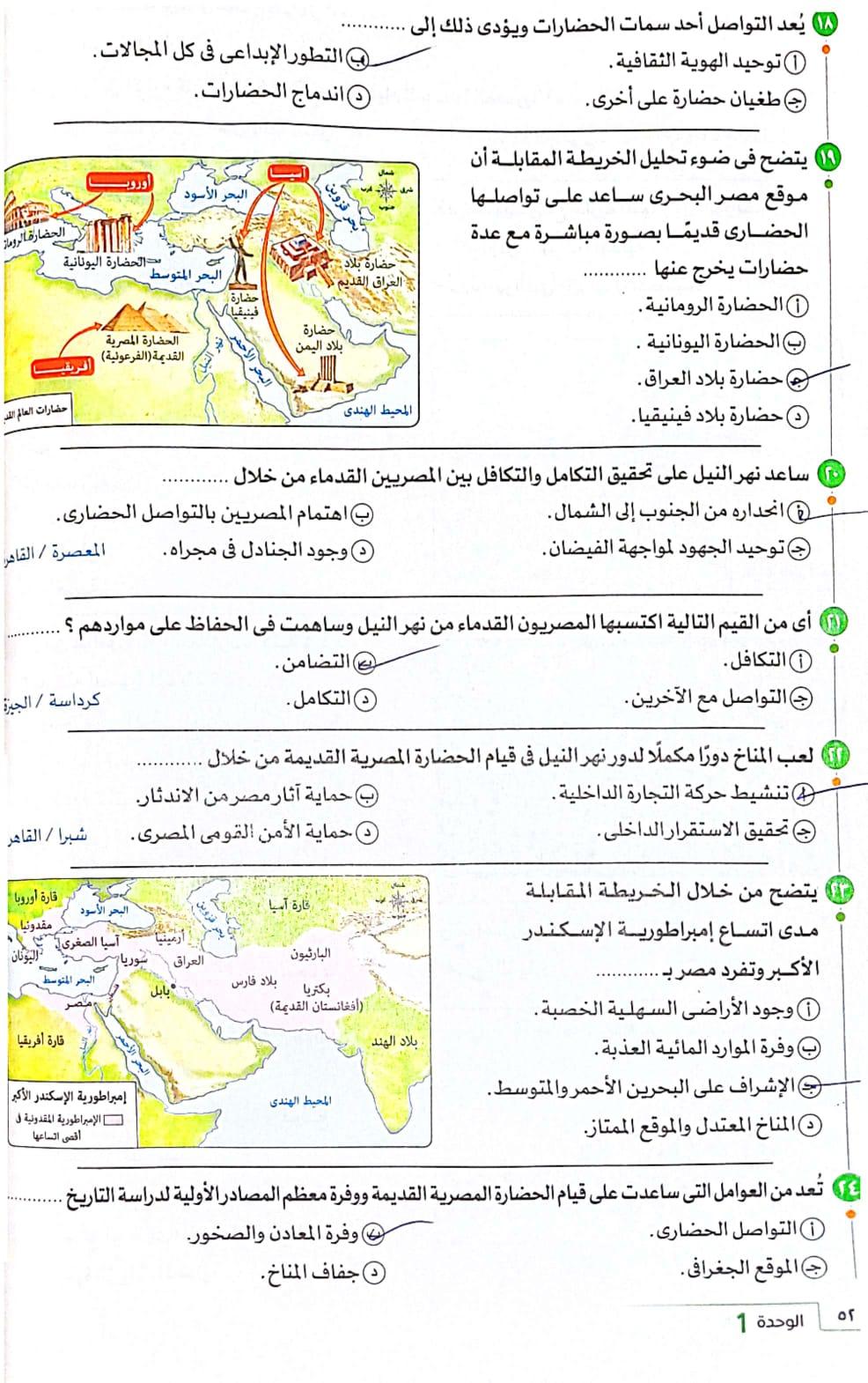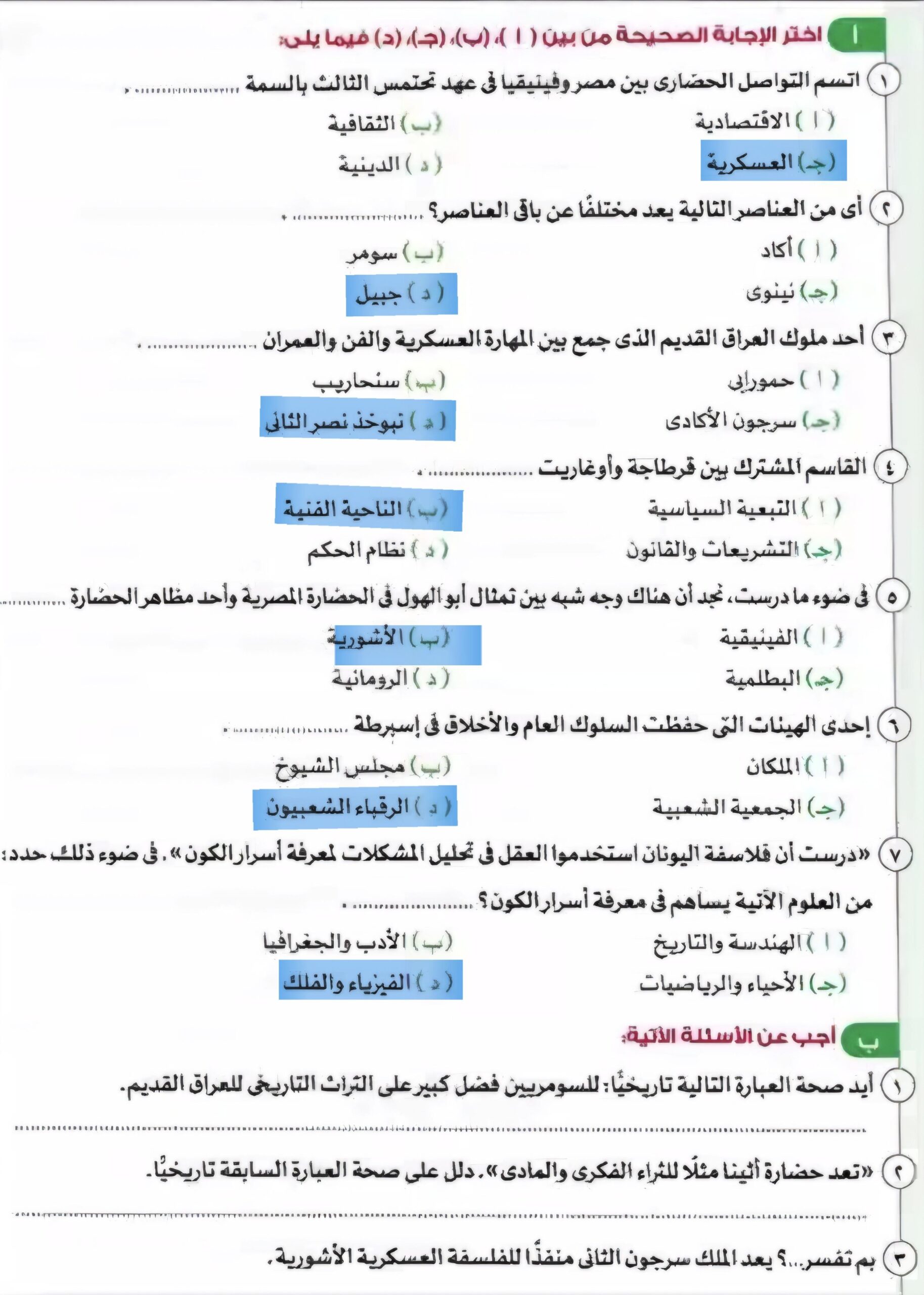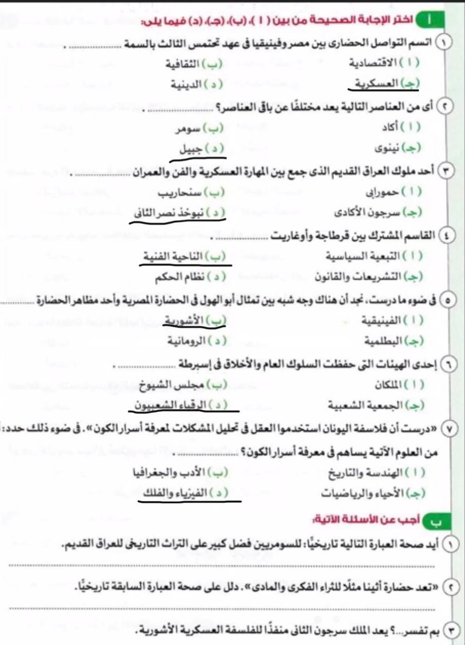 حلينا تدريبات عن مصادر دراسه الحضارات وباقي التدريبات واجب
