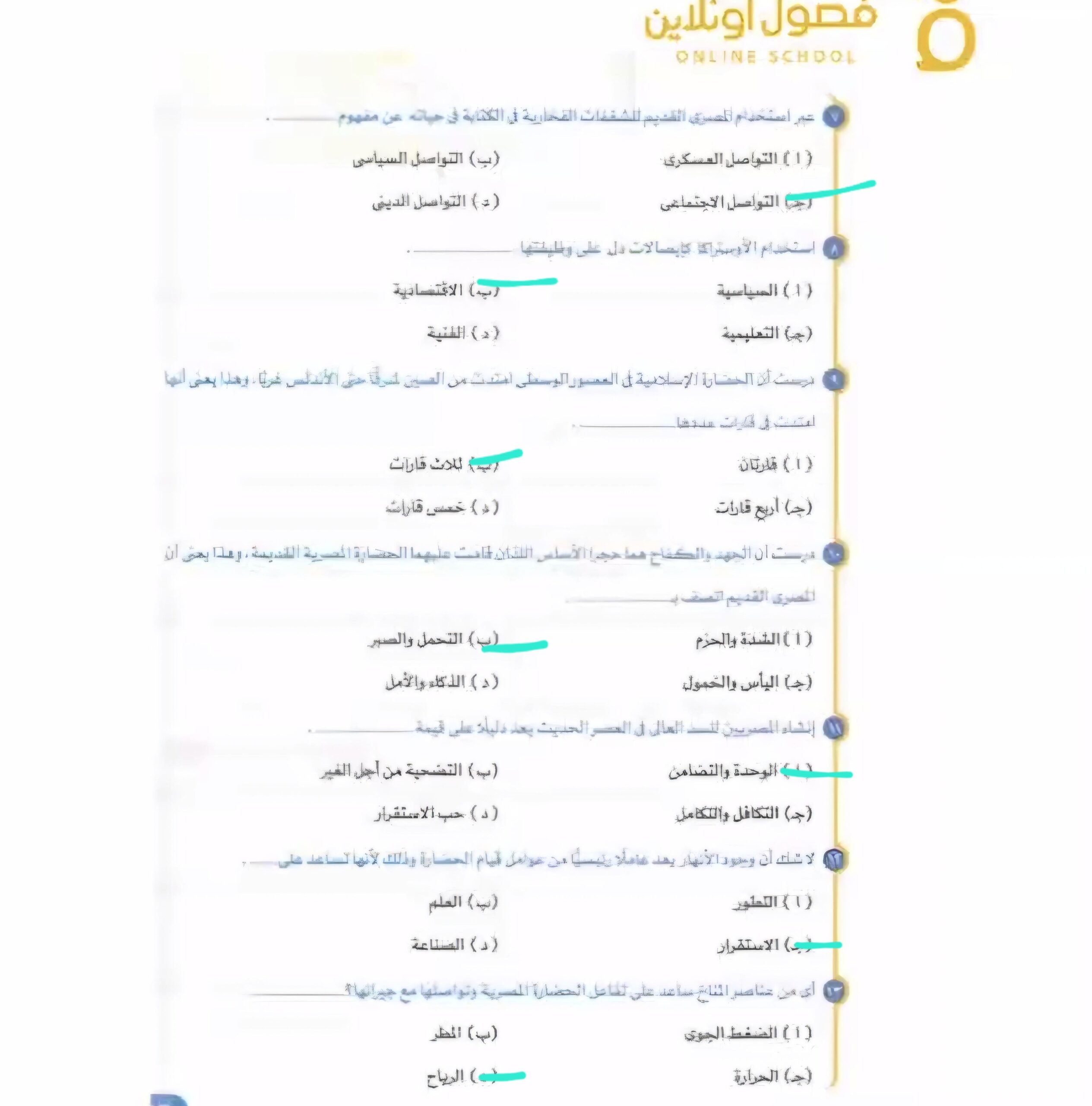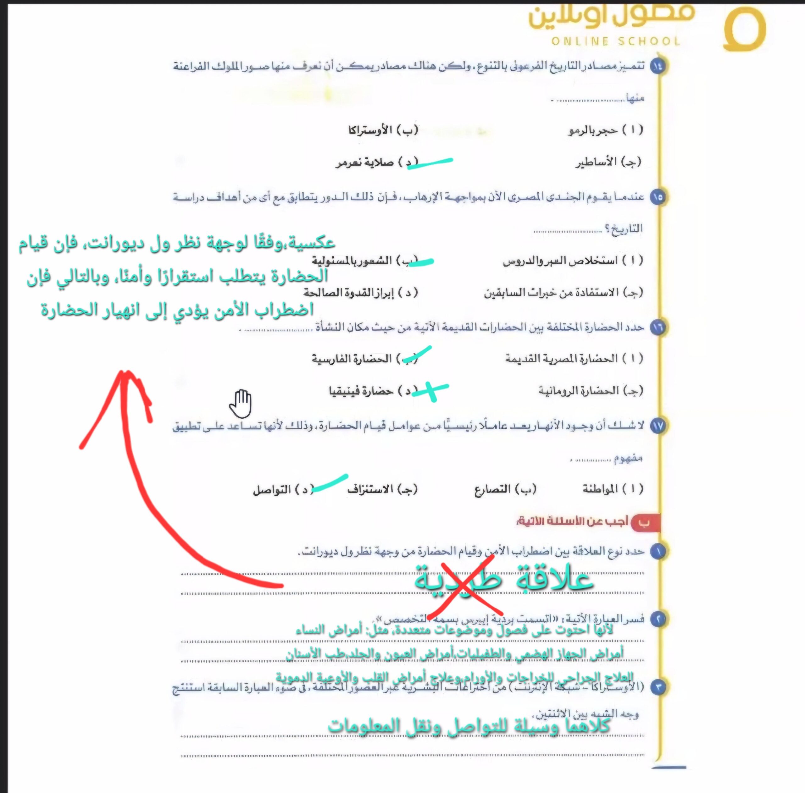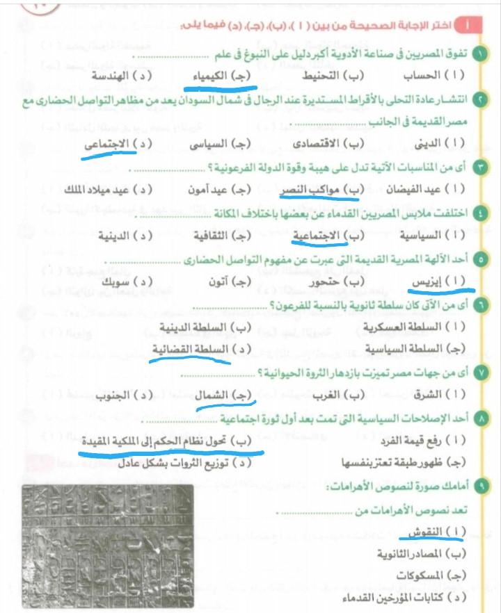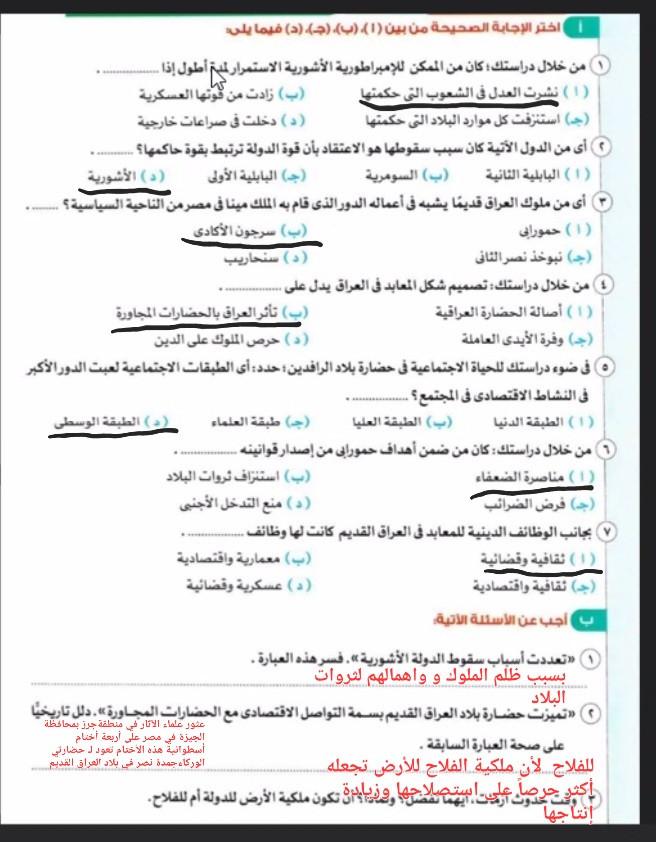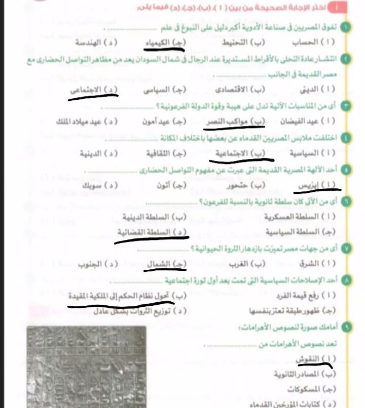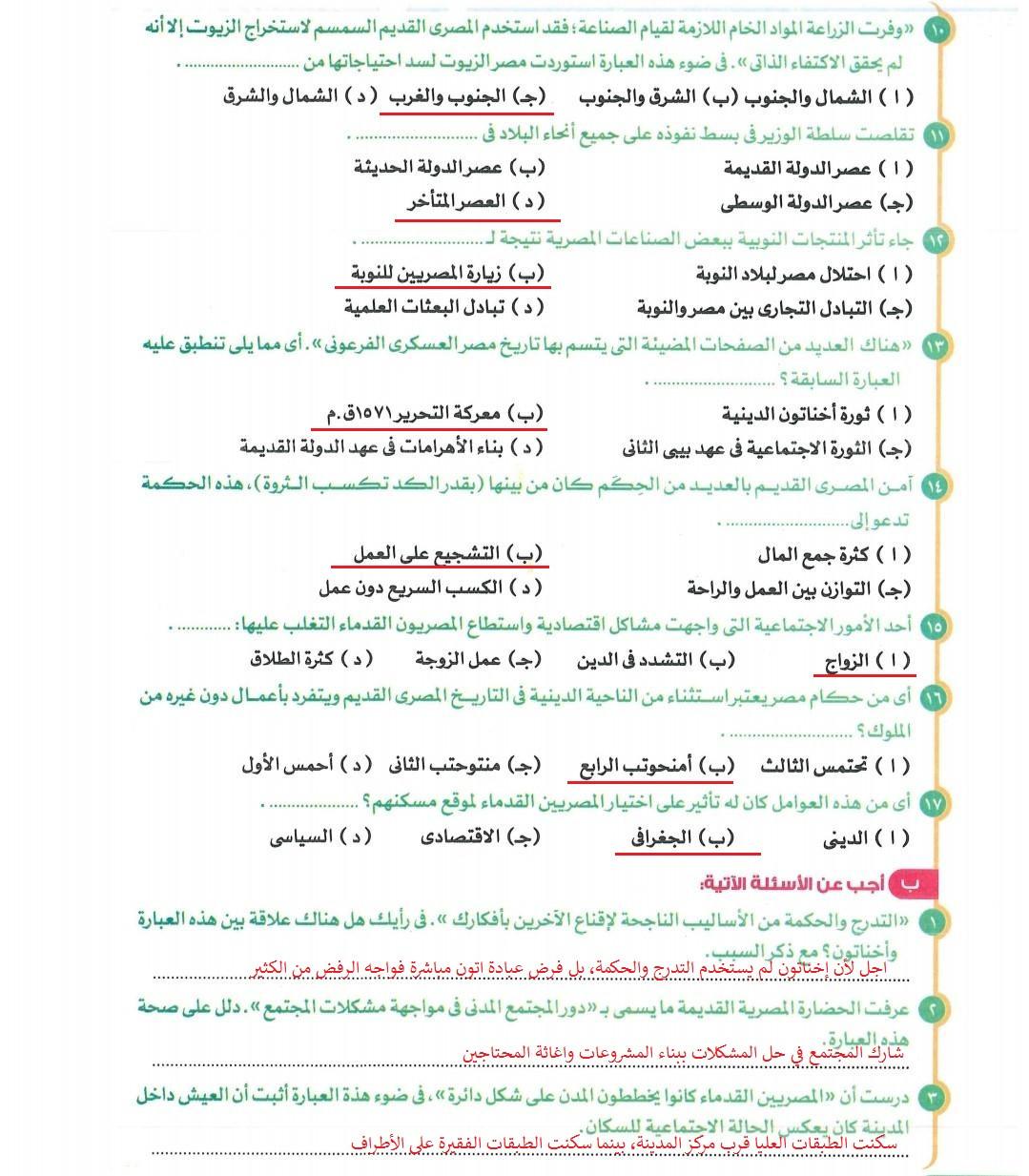 حلينا تدريبات عن مصادر دراسه الحضارات وباقي التدريبات واجب