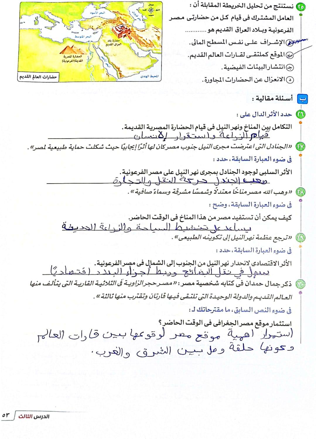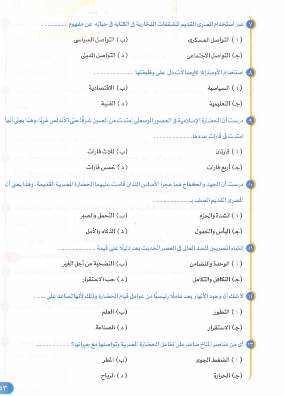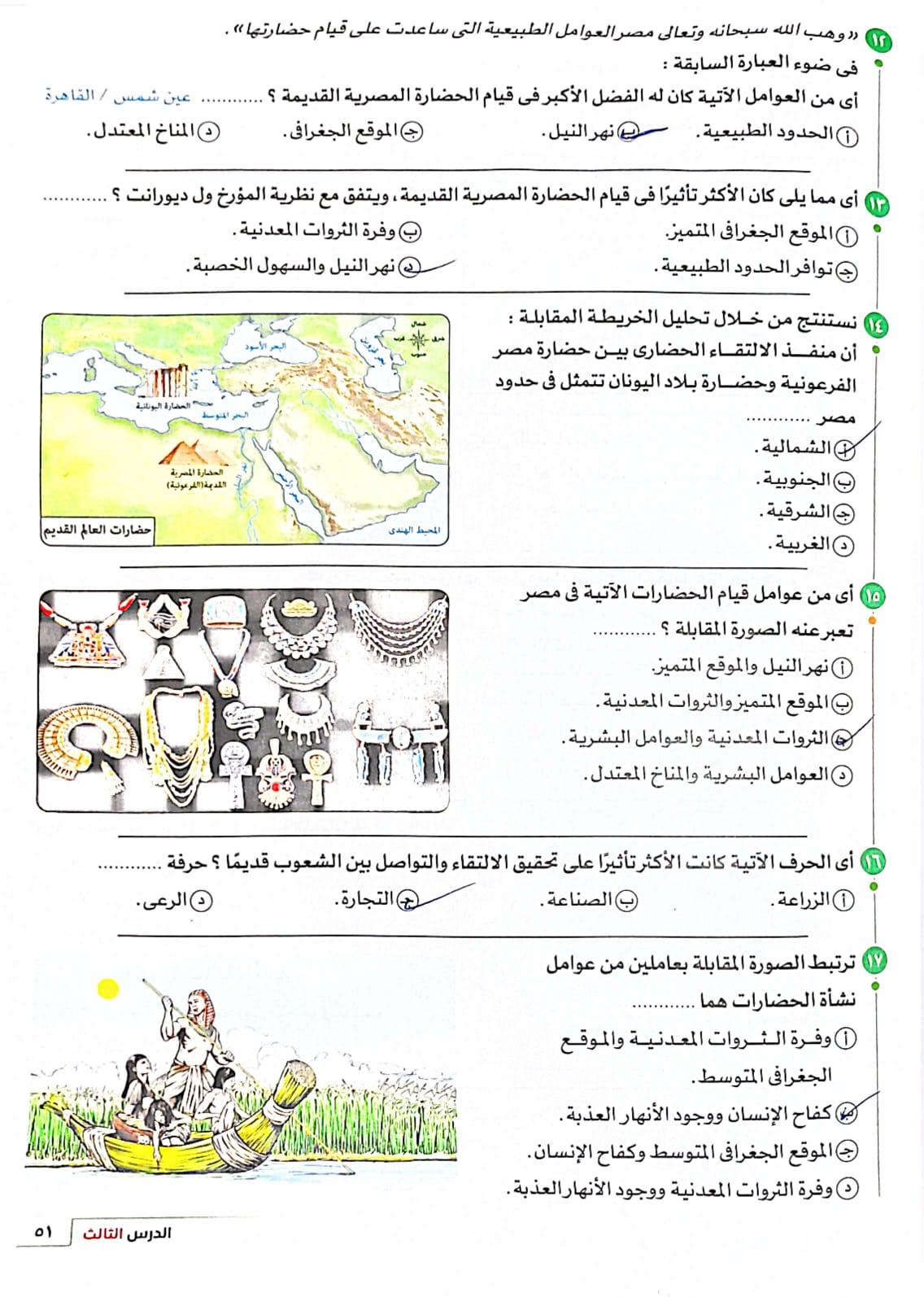 خلصنا عوامل قيام الحضاره وحلينا تدريبات والواجب من ص 51 الي ص 53 بالمقالي