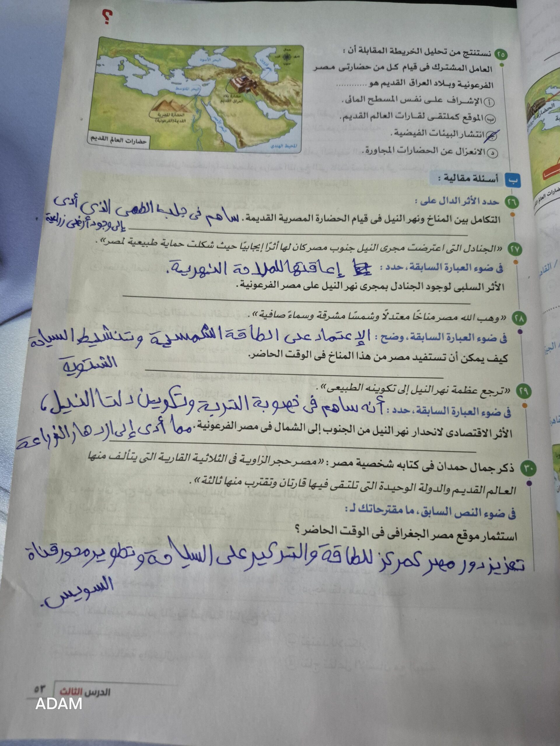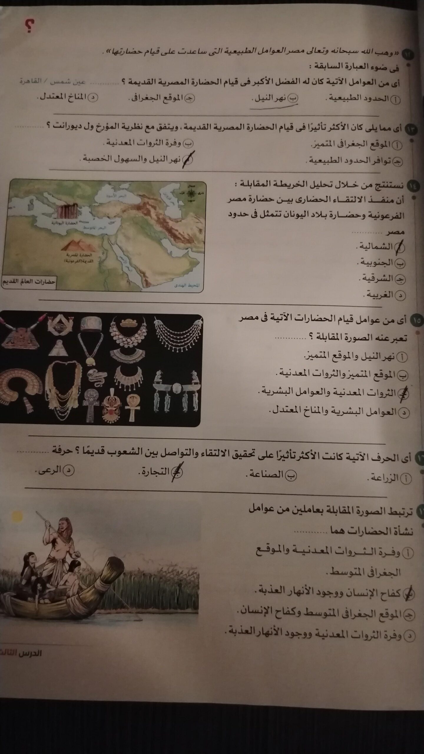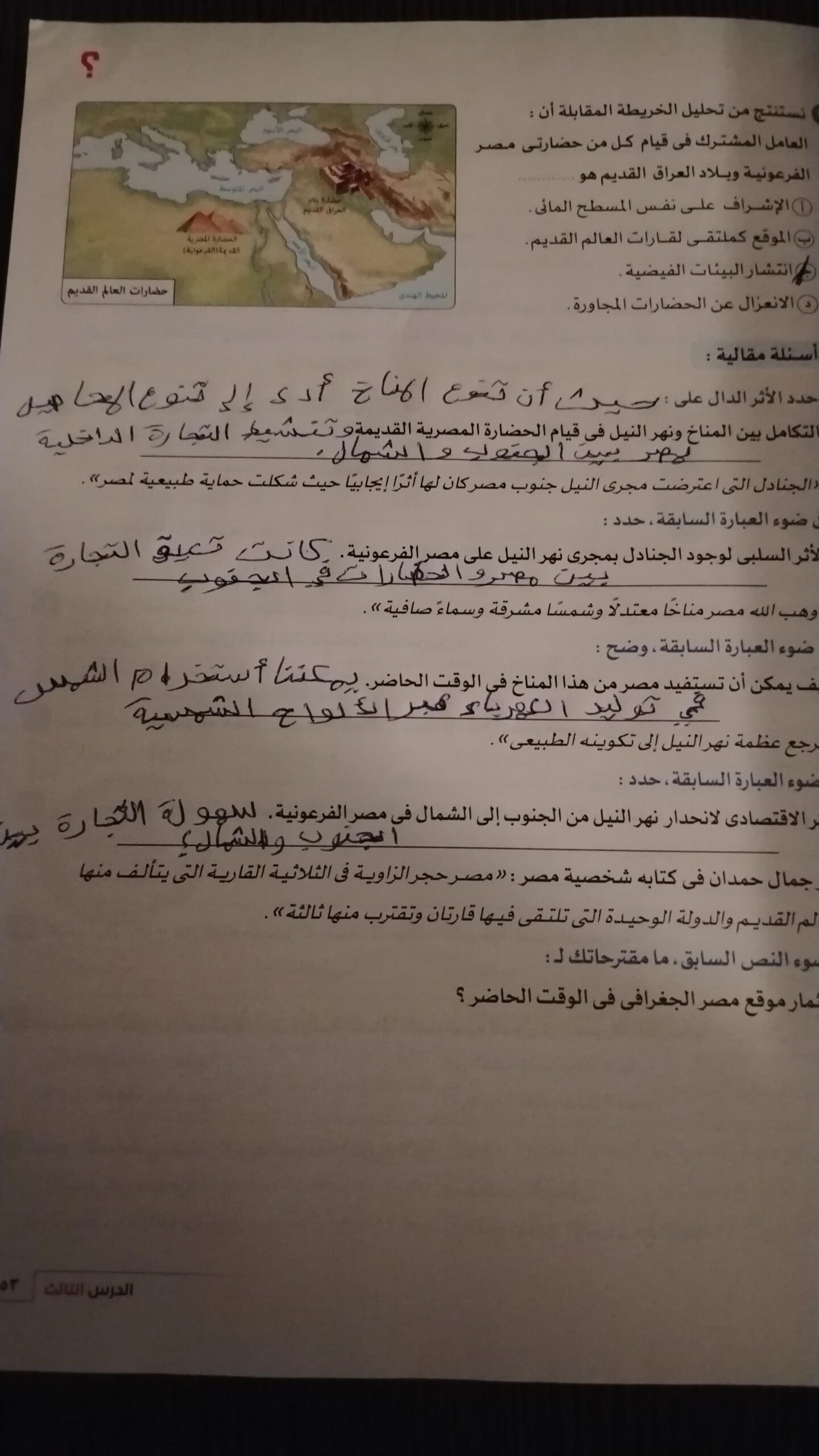خلصنا عوامل قيام الحضاره وحلينا تدريبات والواجب من ص 51 الي ص 53 بالمقالي