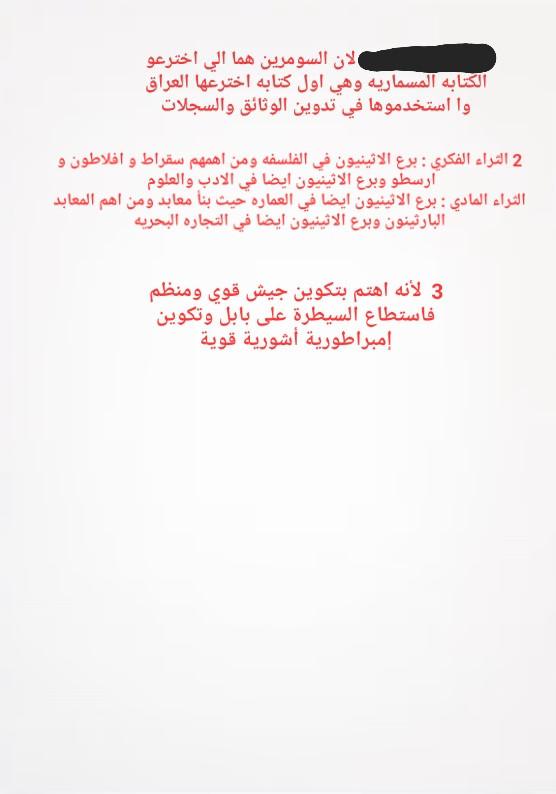 انتهينا من الحضاره اليونانيه وهنأجل اختبار الوحده التالته ليوم الاحد ان شاء الله