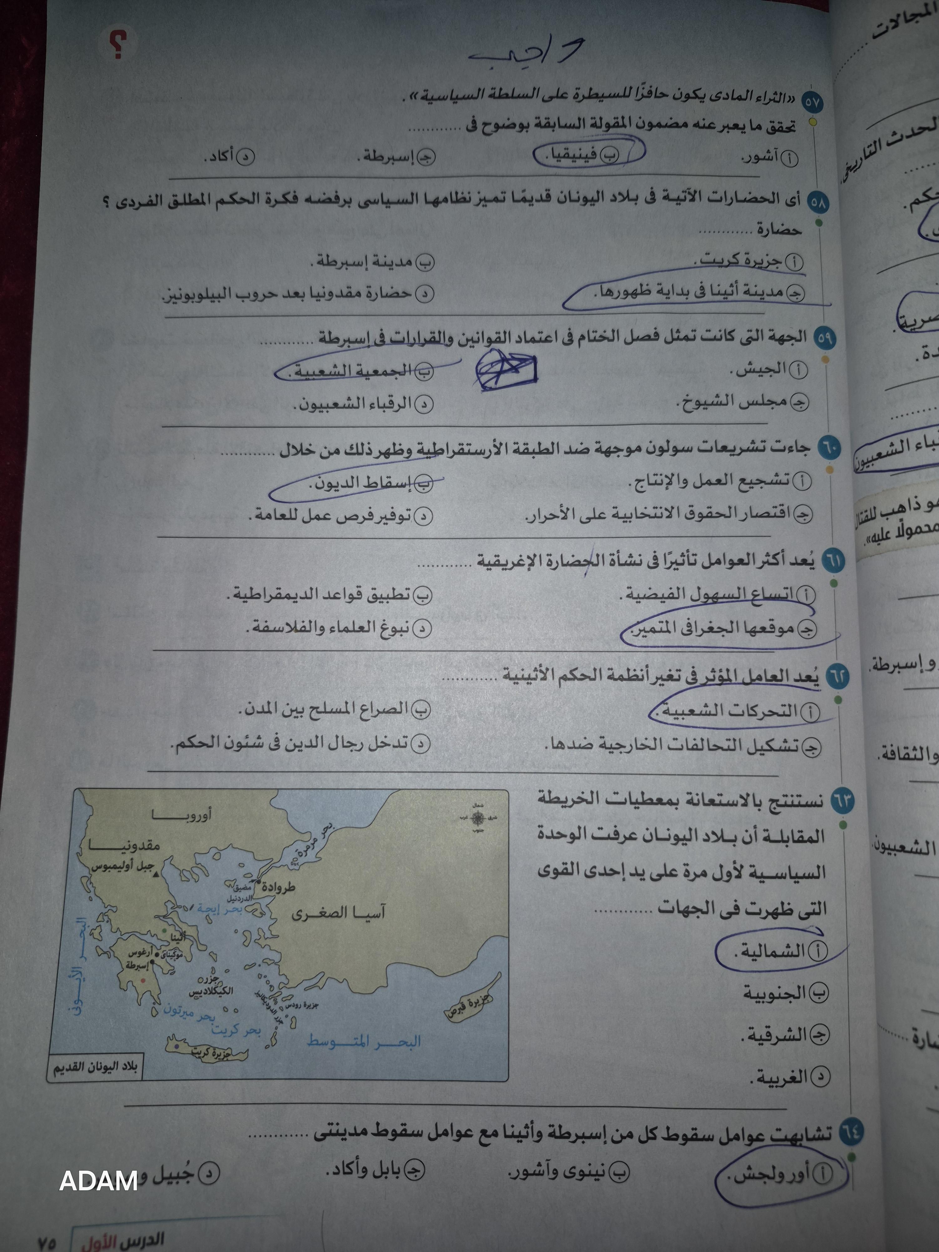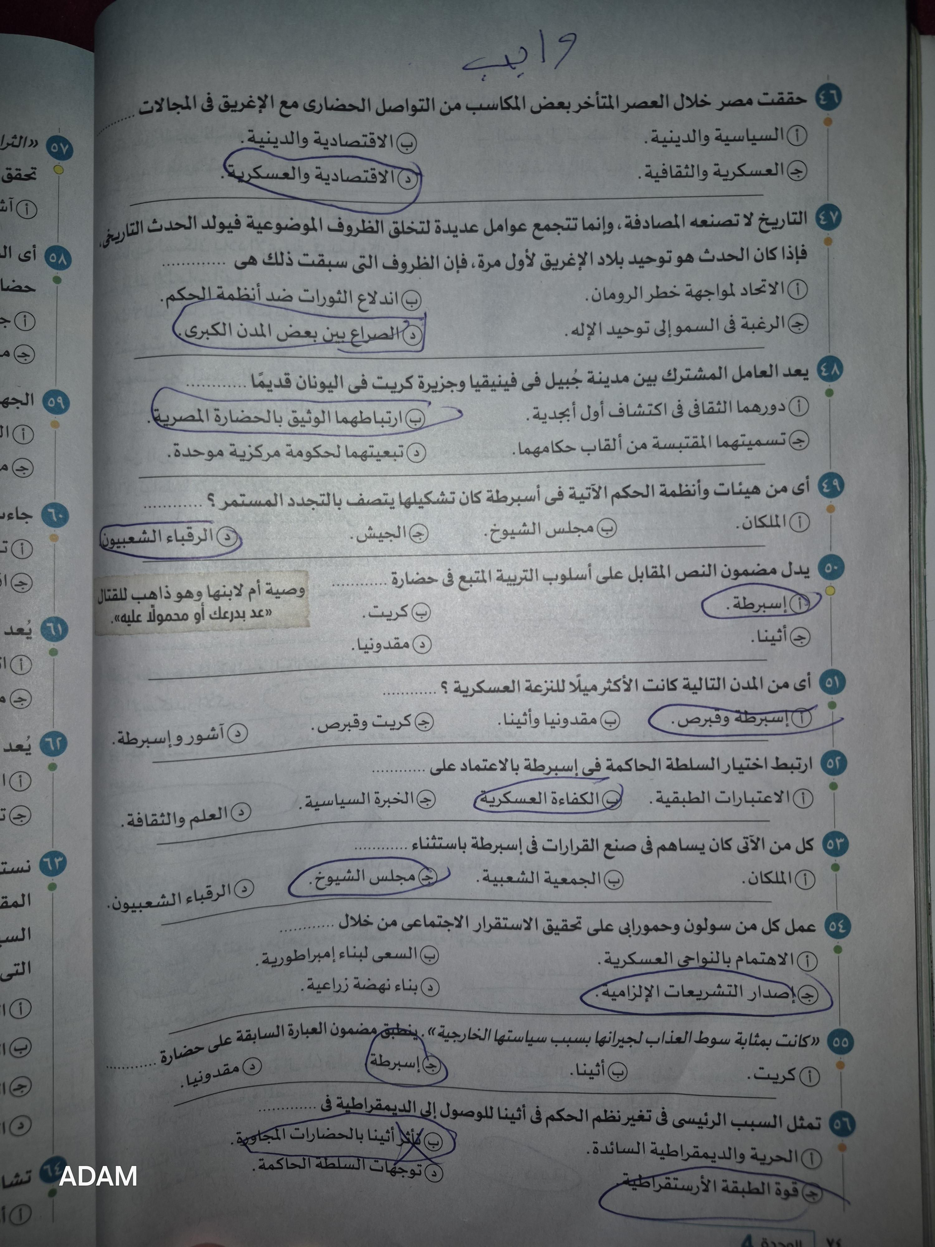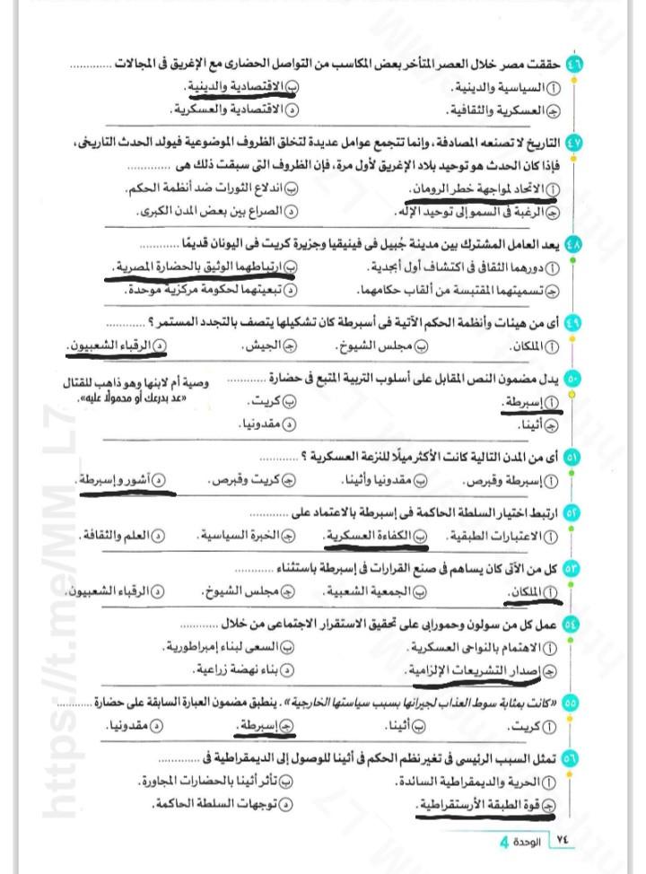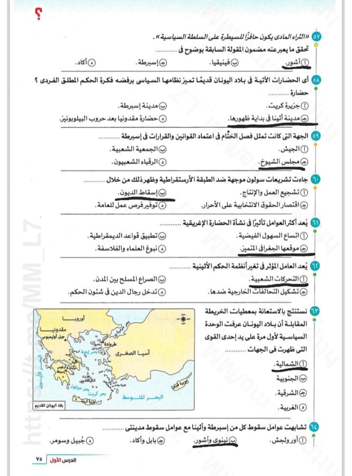 حلينا اليوم جزء من الحضارع اليونانيه والواجي الاسئله من 41 الي 64 واجب