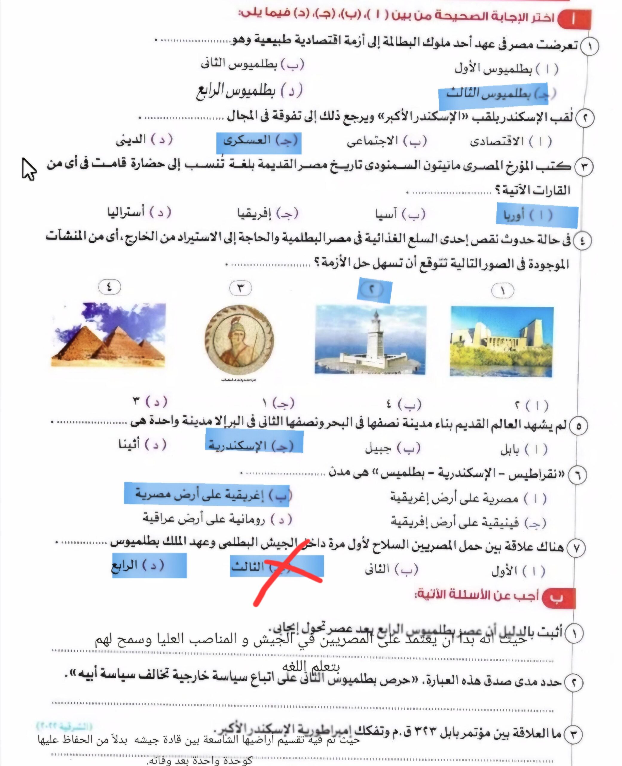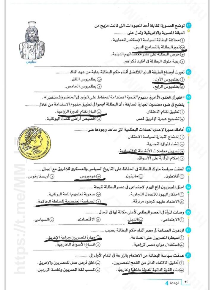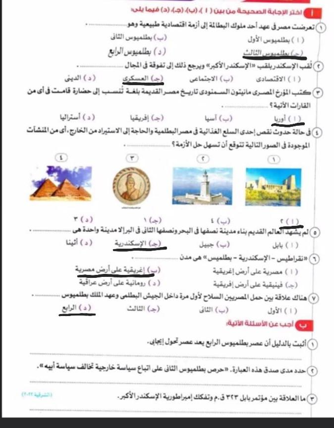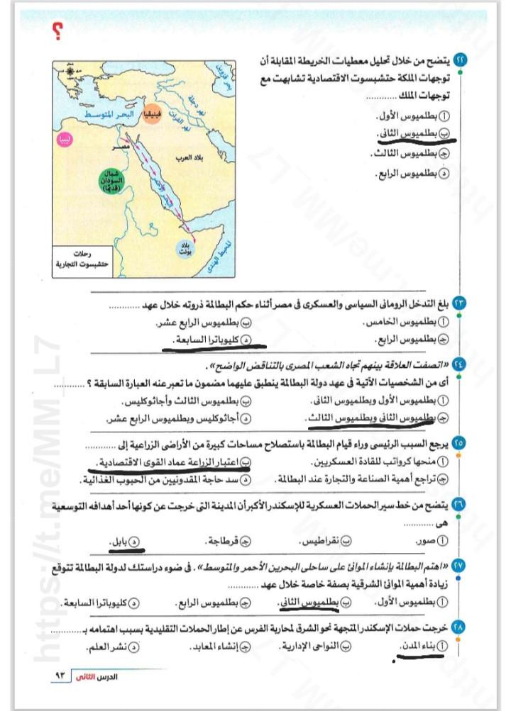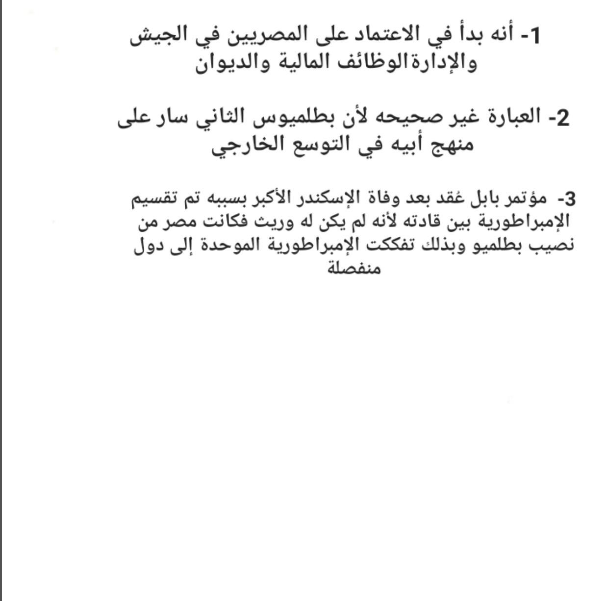 انتهينا من درس التانسي مصر تحت حكم البطتالمه والواجب من سؤال 13 الي 28 والاختبار الشهري هيكيكون عن الدرس التاني دا
