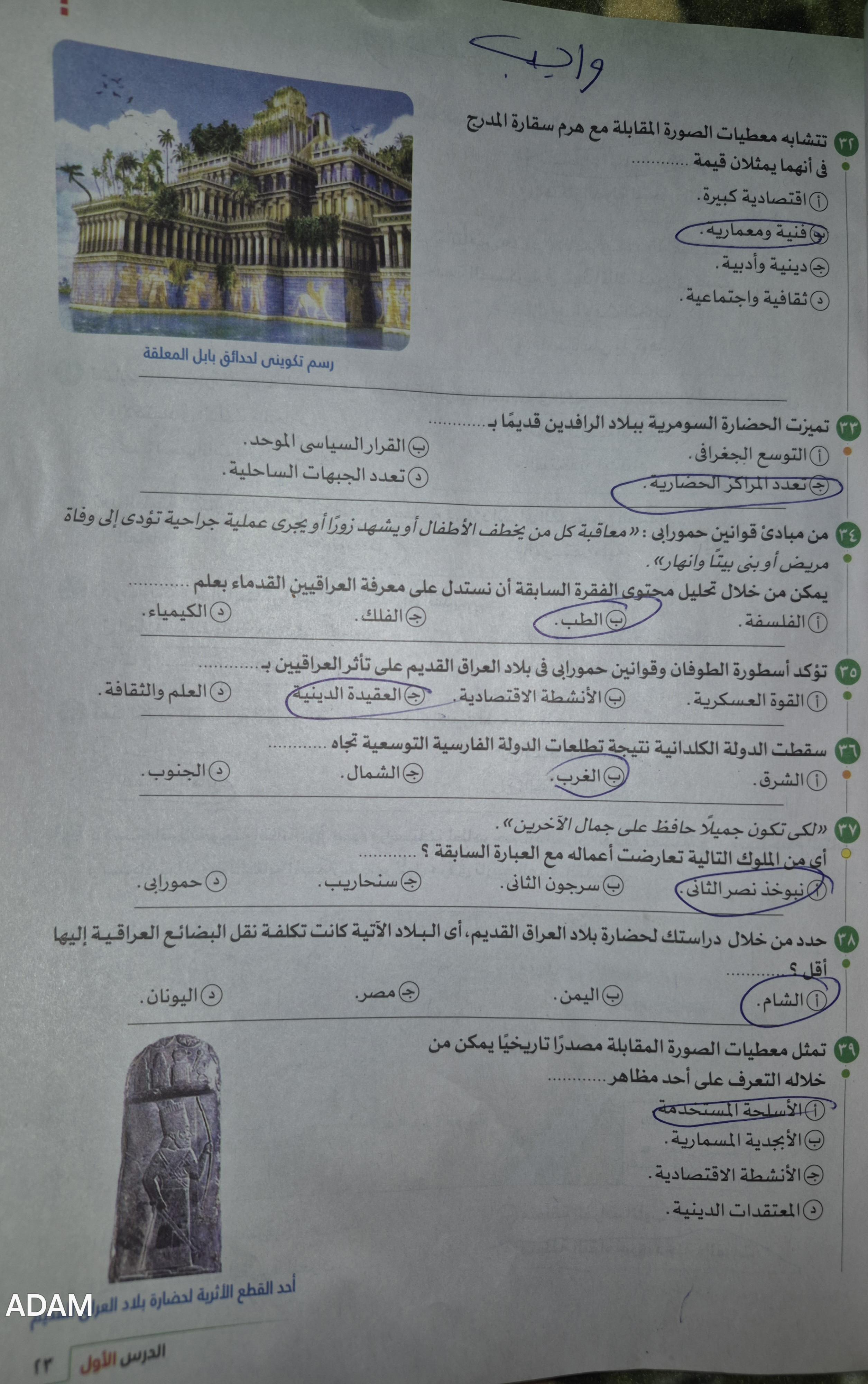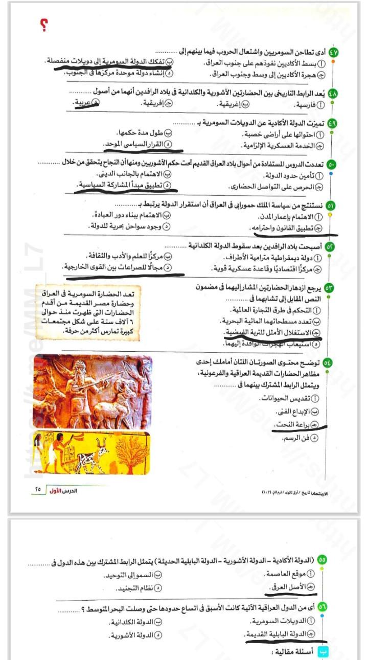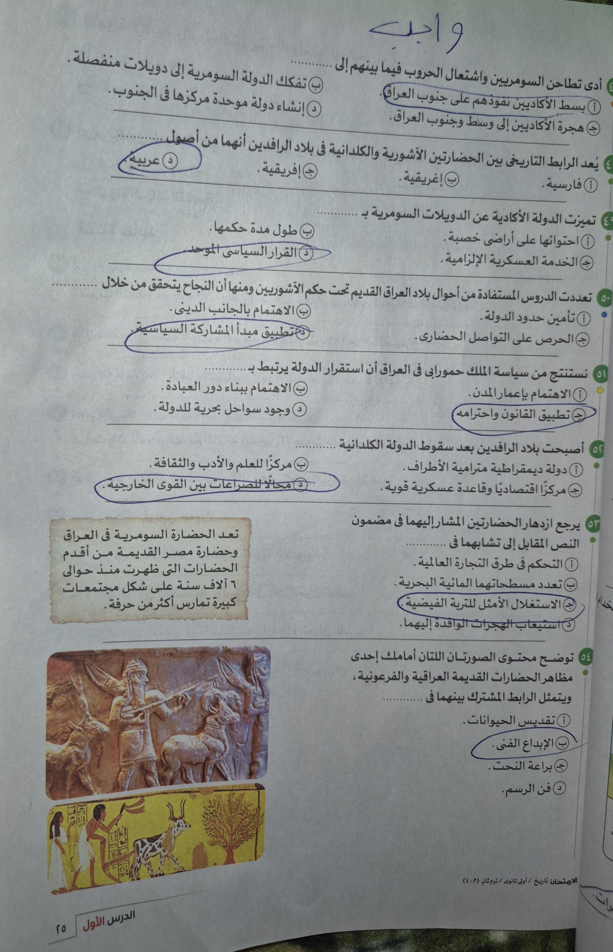 حلينا اليوم تدريبات حضاره بلاد الرافدين وغدا اختبار عليها ان شاء الله