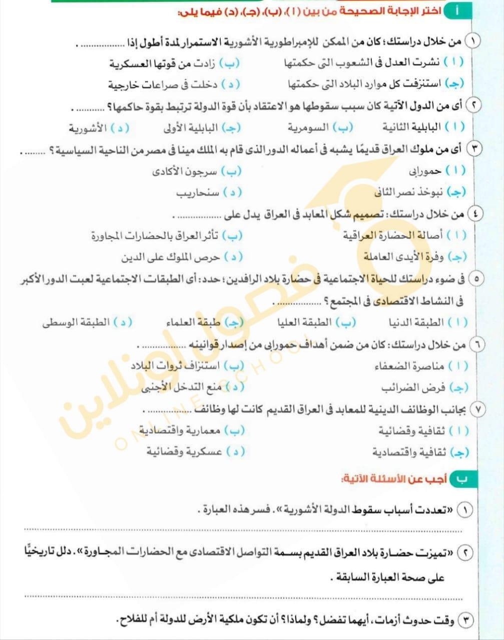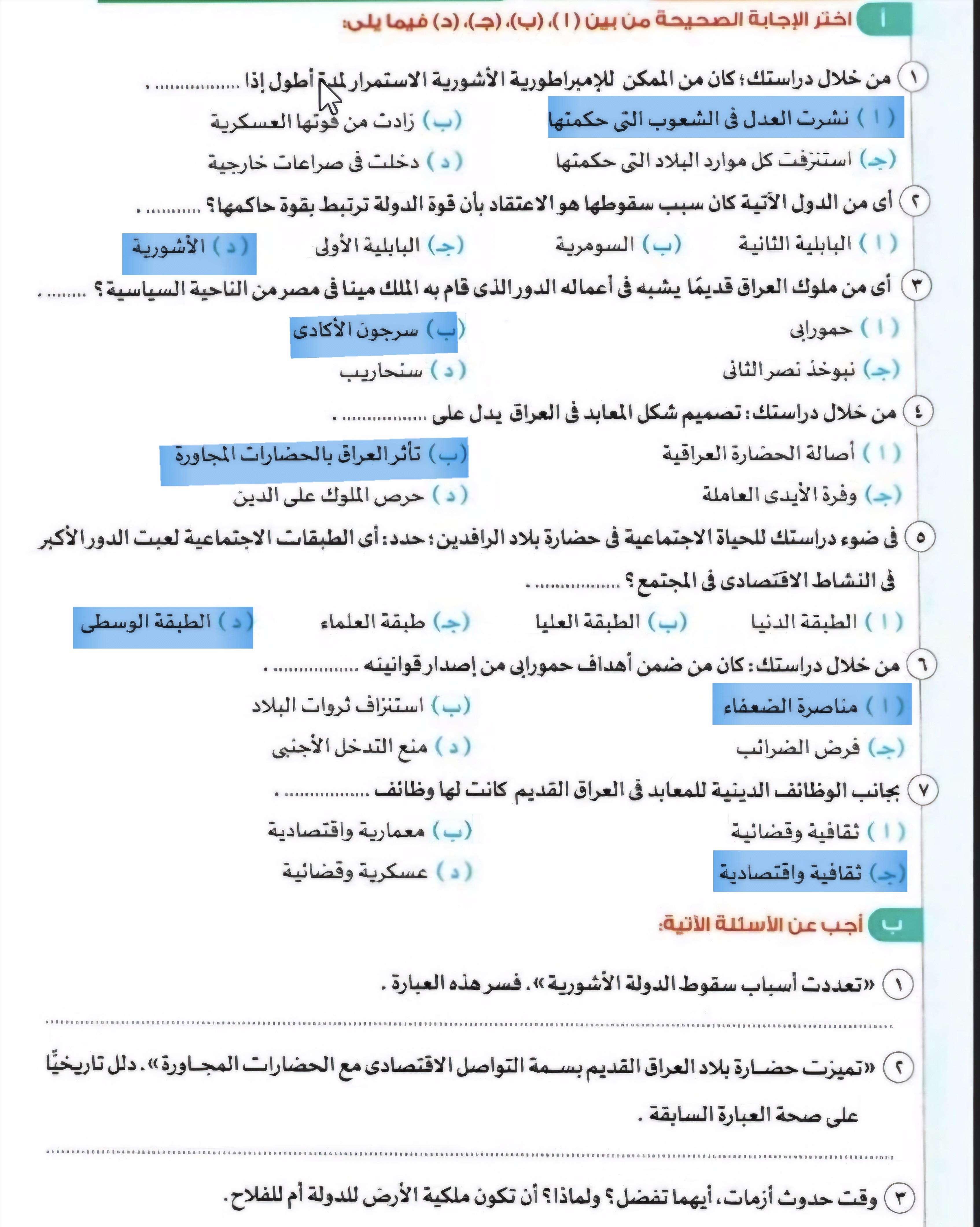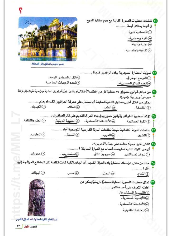 حلينا اليوم تدريبات حضاره بلاد الرافدين وغدا اختبار عليها ان شاء الله