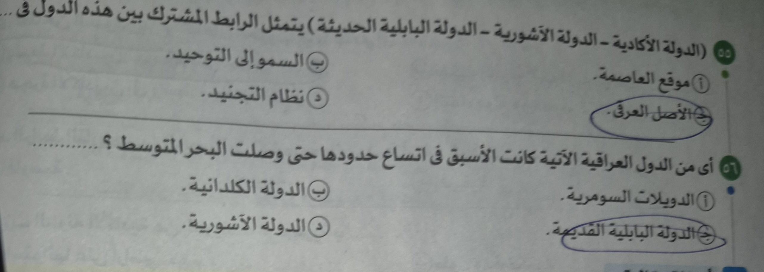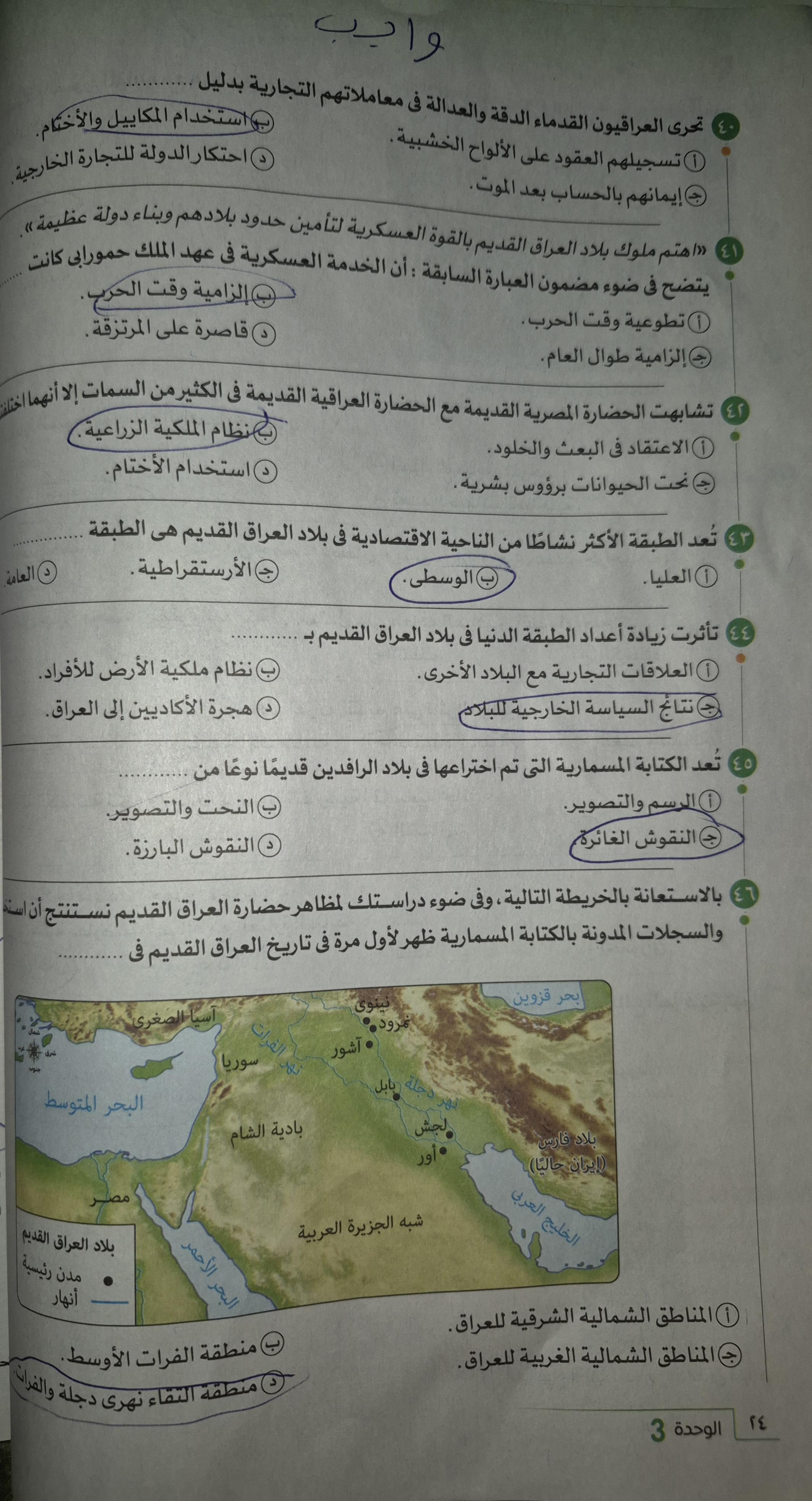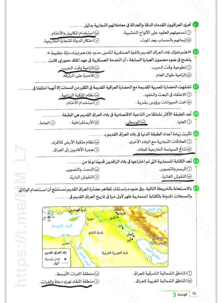 اليوم اختبار علي الوحده التالته الحضاره الفينيقيين والعراقيه
