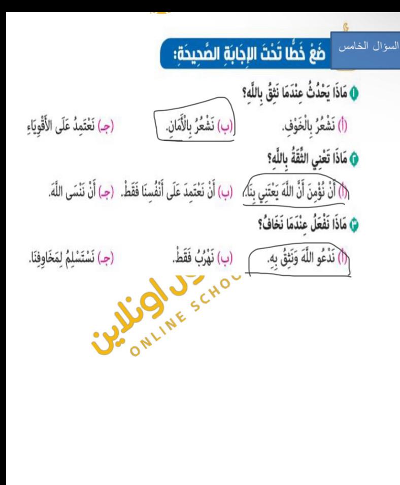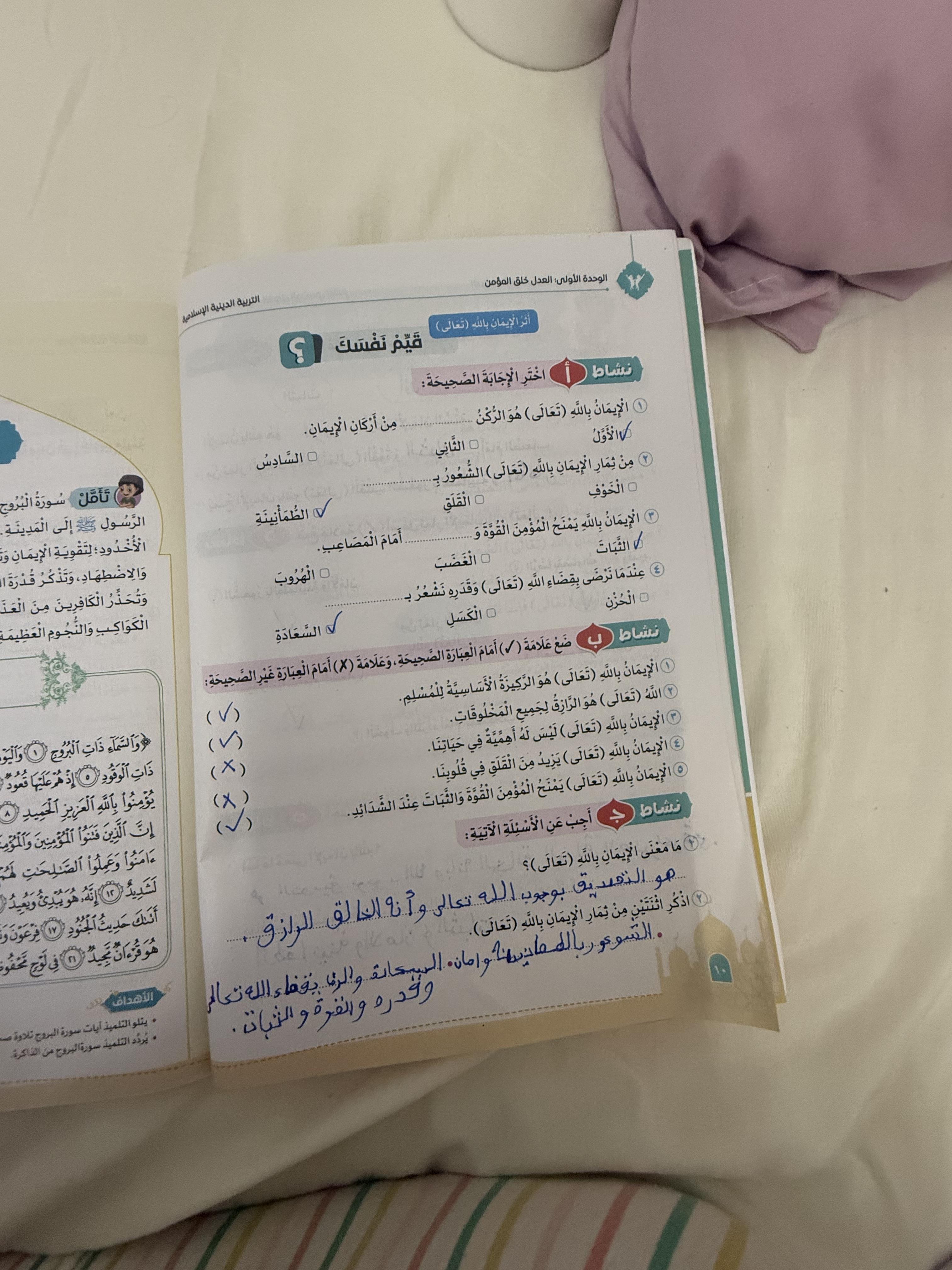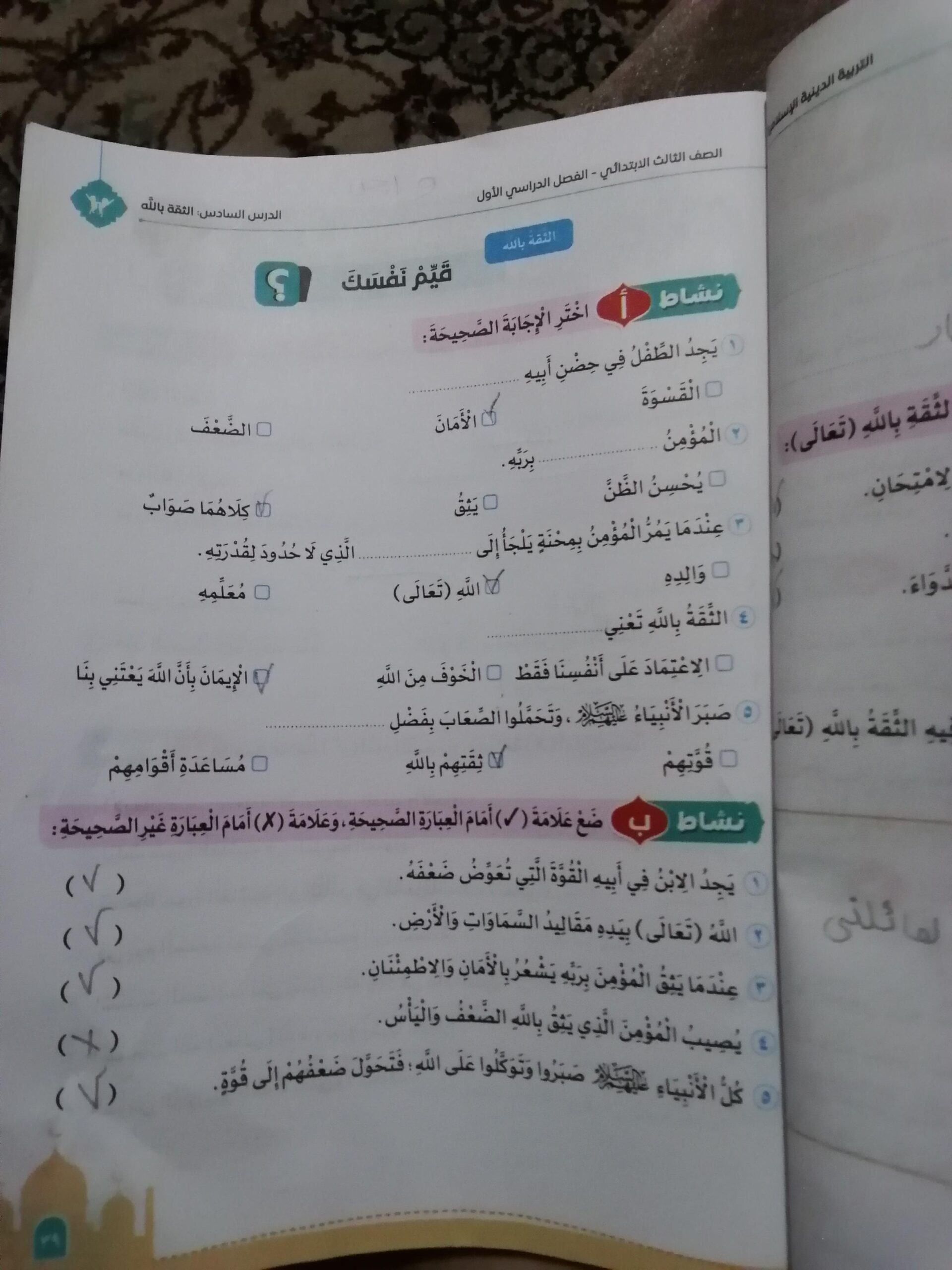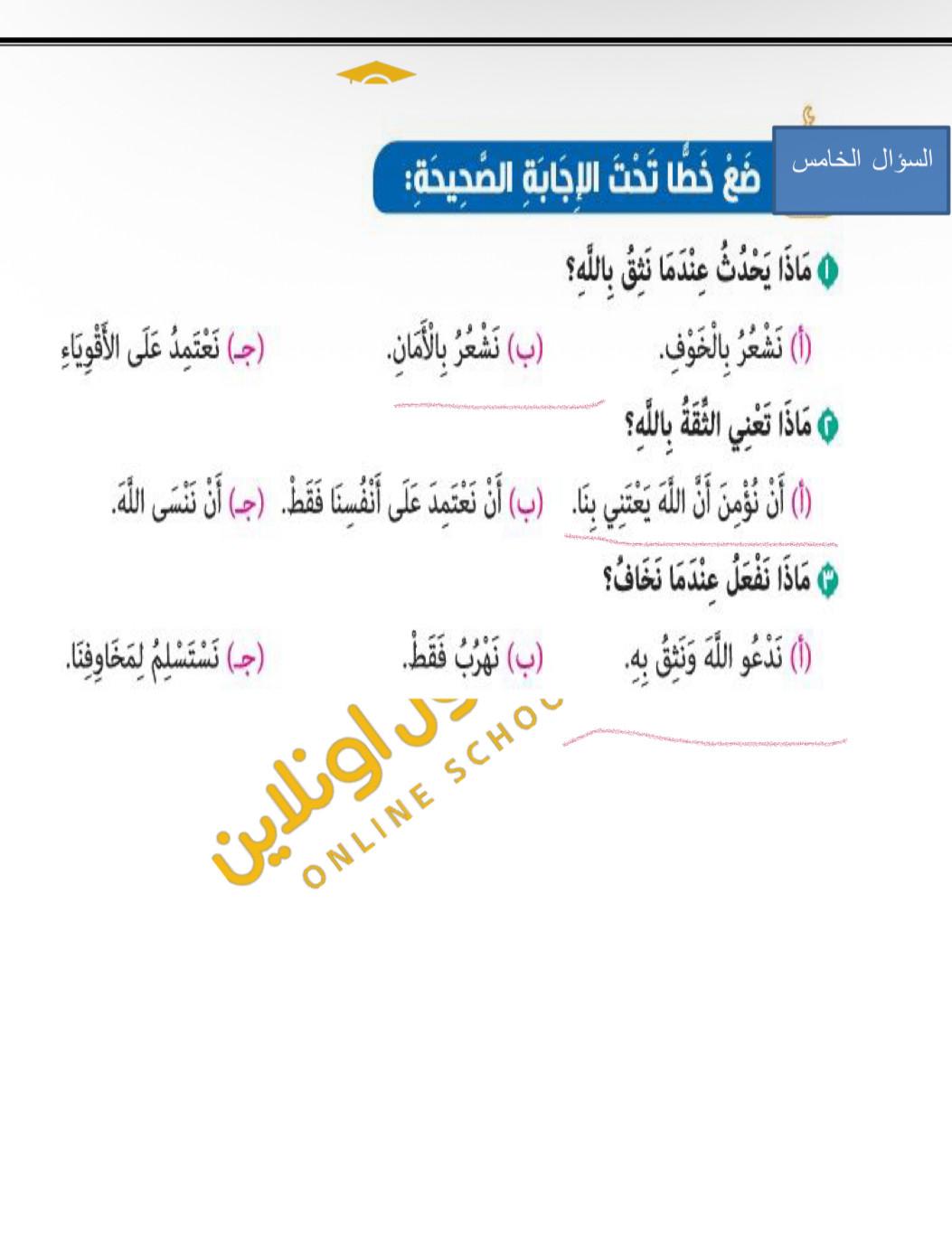 الواجب/مذاكرة درس الثقة بالله وتحضير الوحدة الثانية