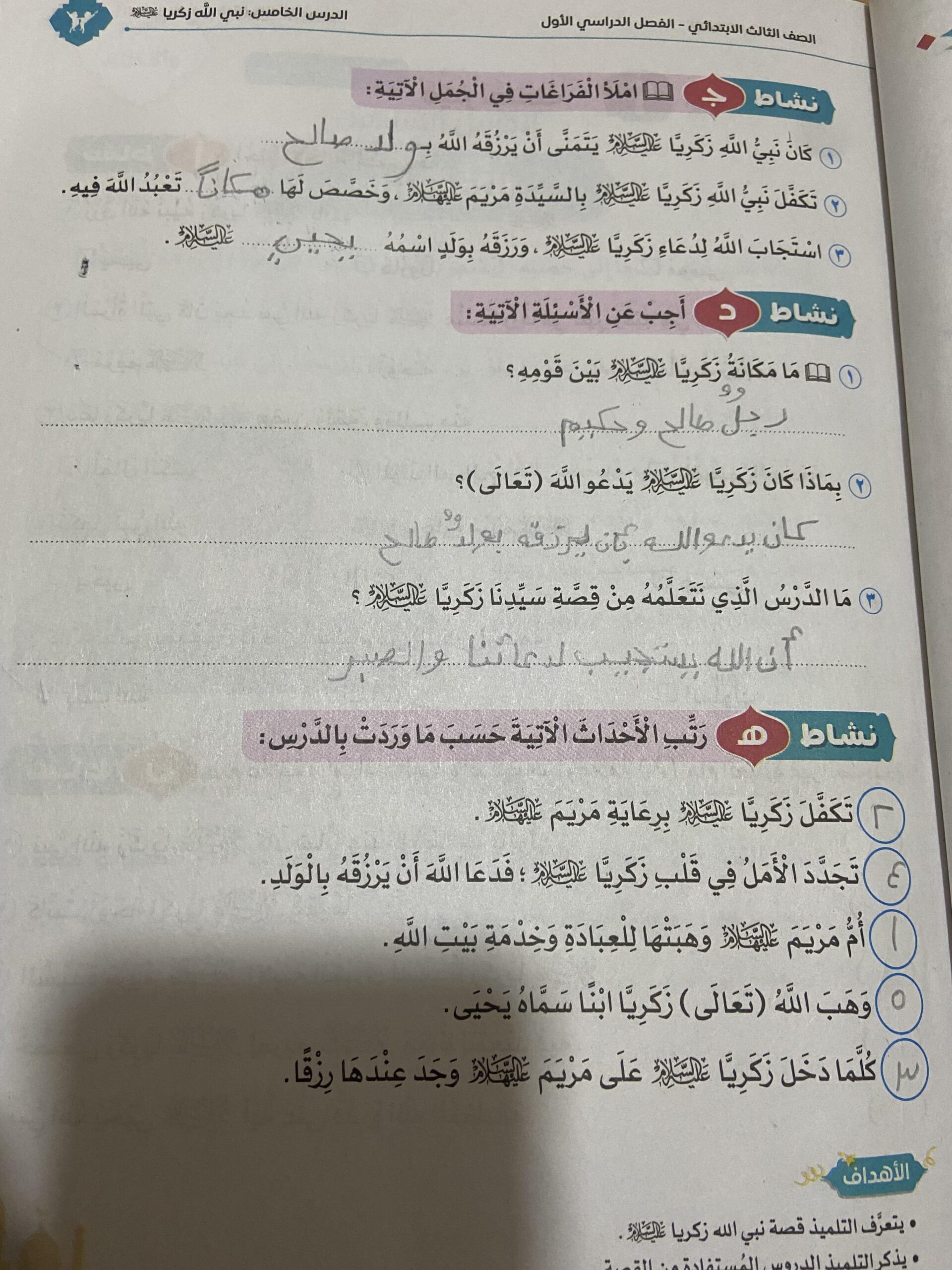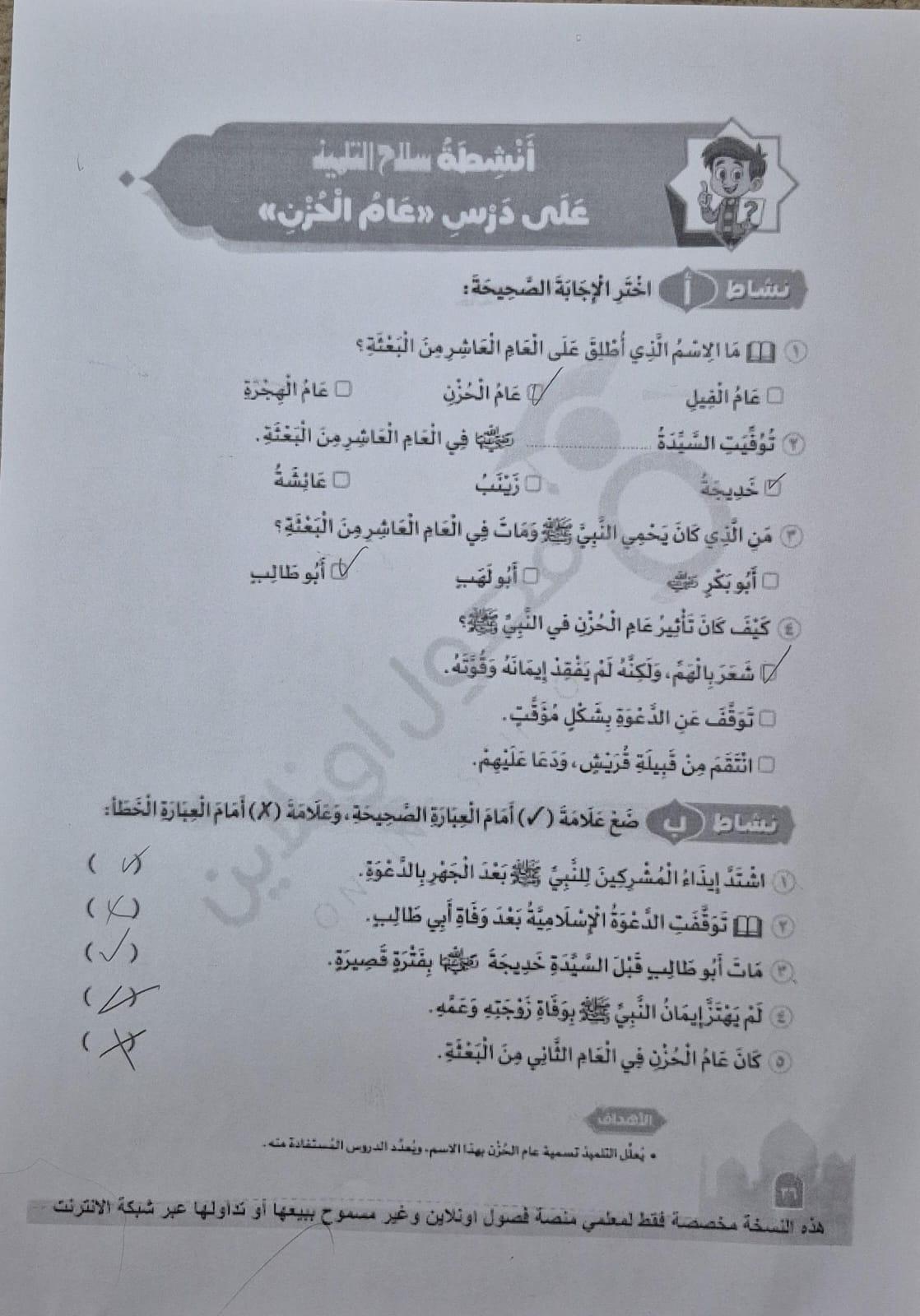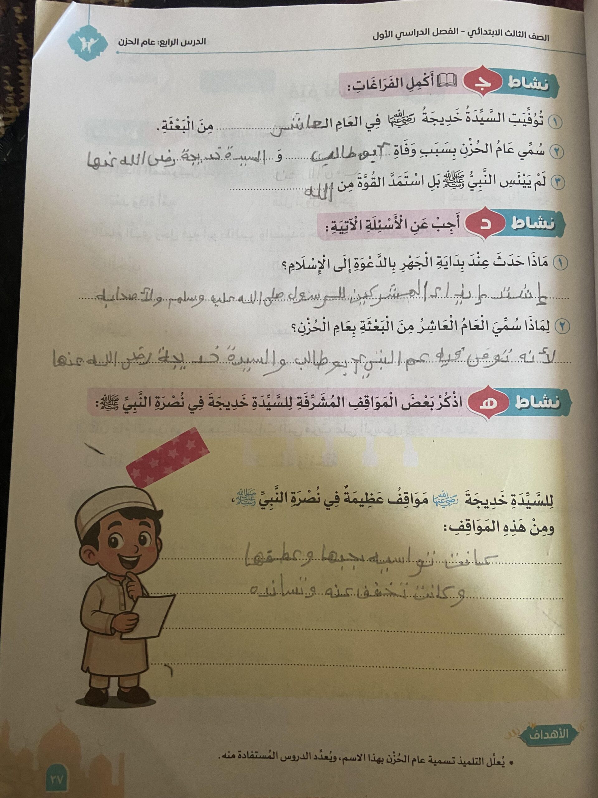 الدرس/ مراجعة درس عام الحزن+ قصة نبي الله زكريا عليه السلام