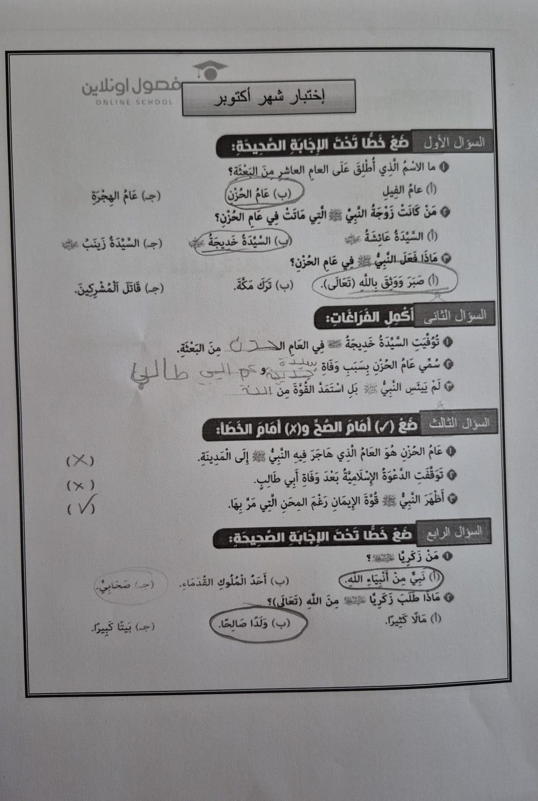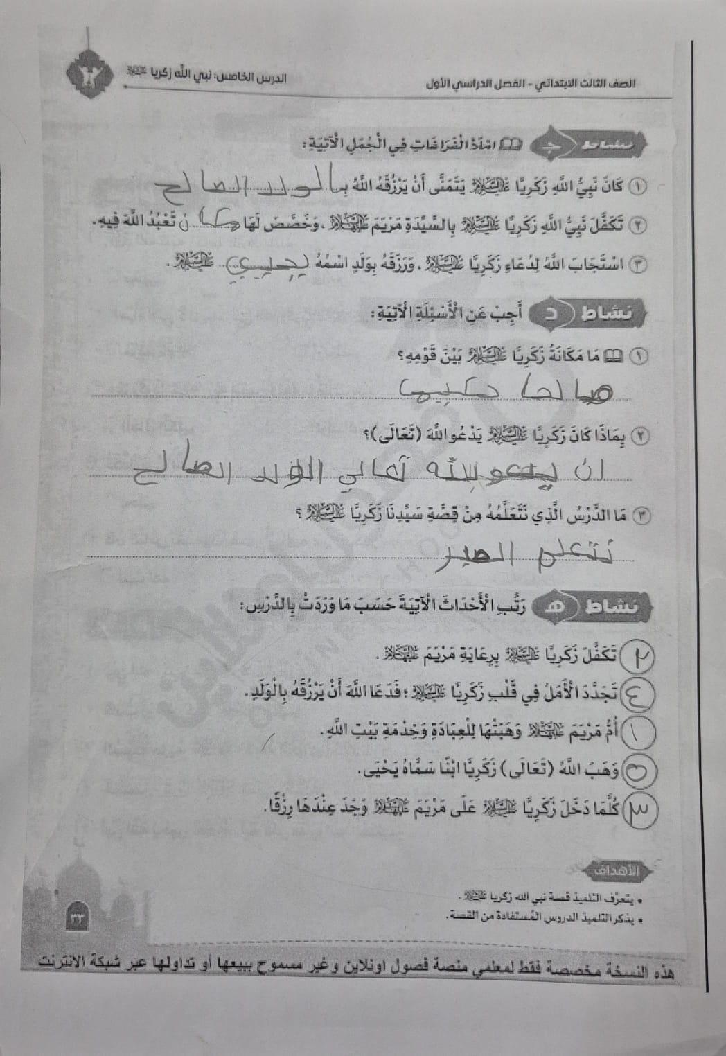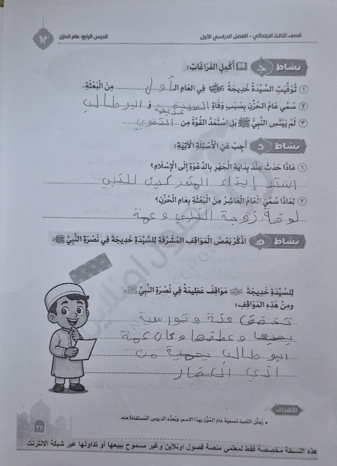 الدرس/ مراجعة درس عام الحزن+ قصة نبي الله زكريا عليه السلام