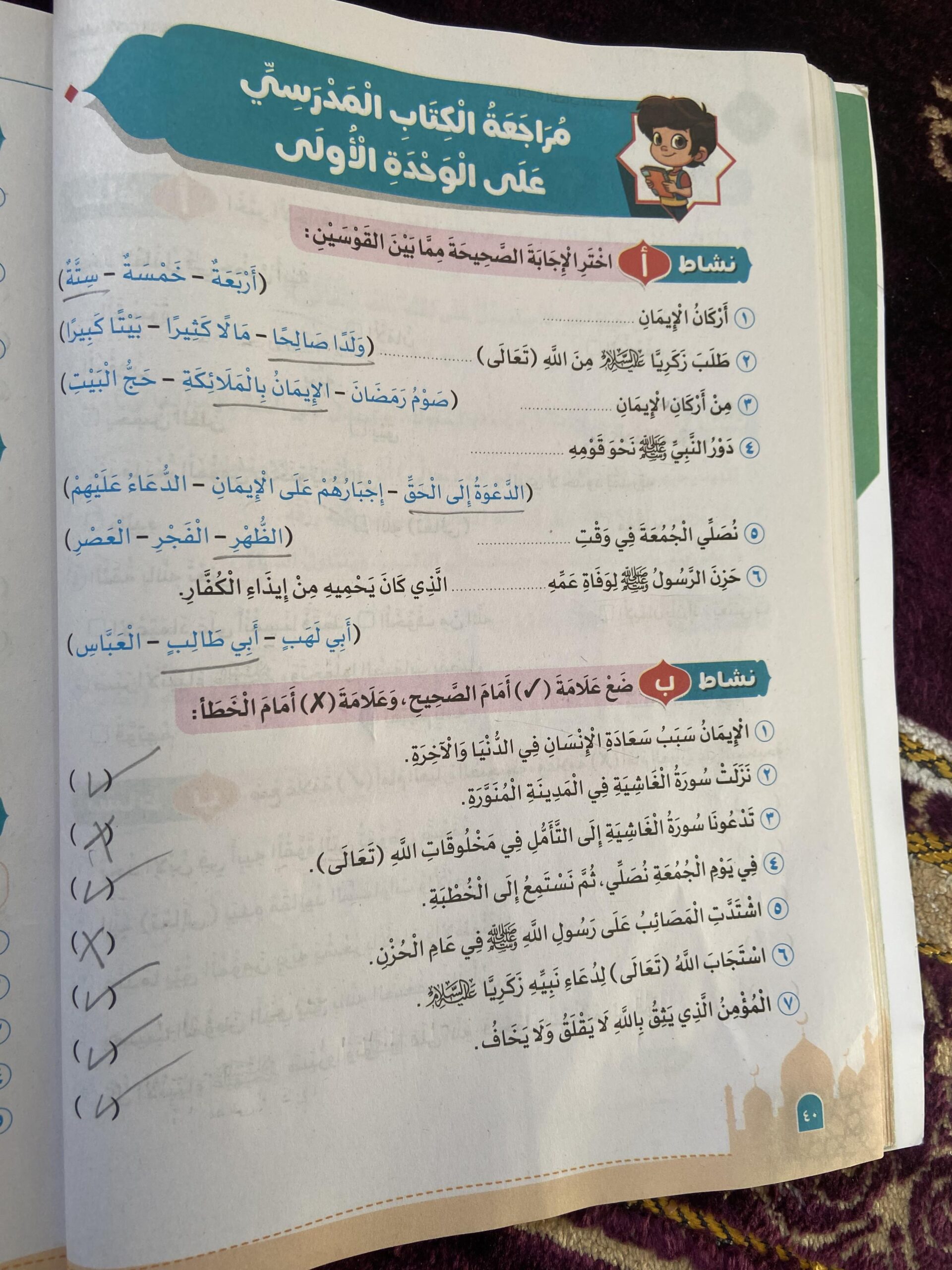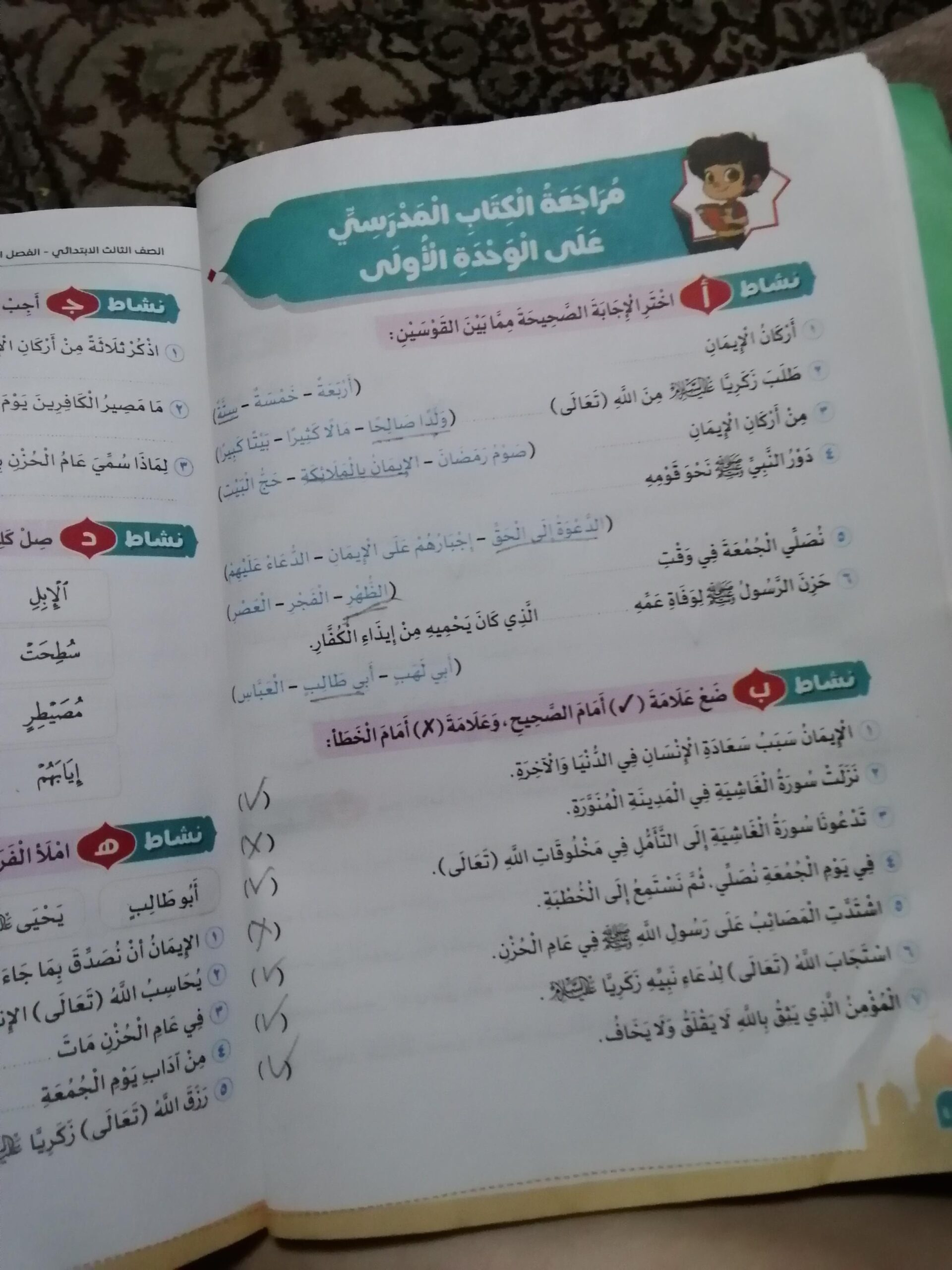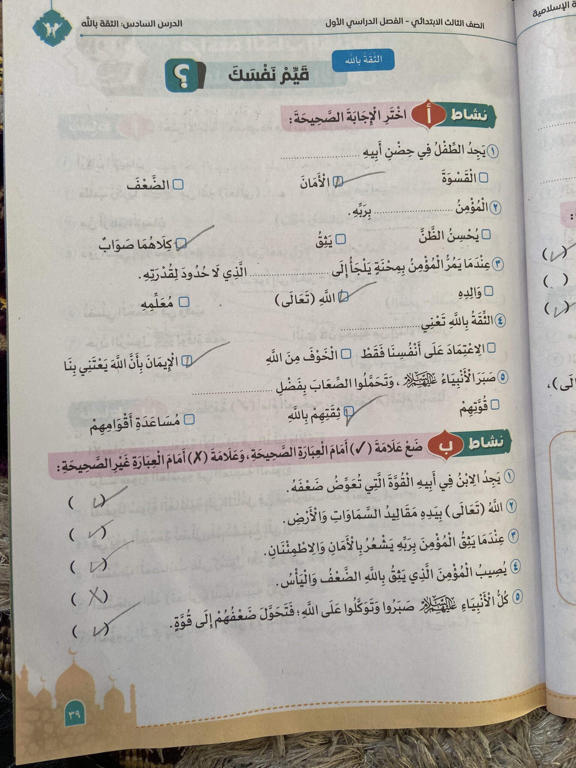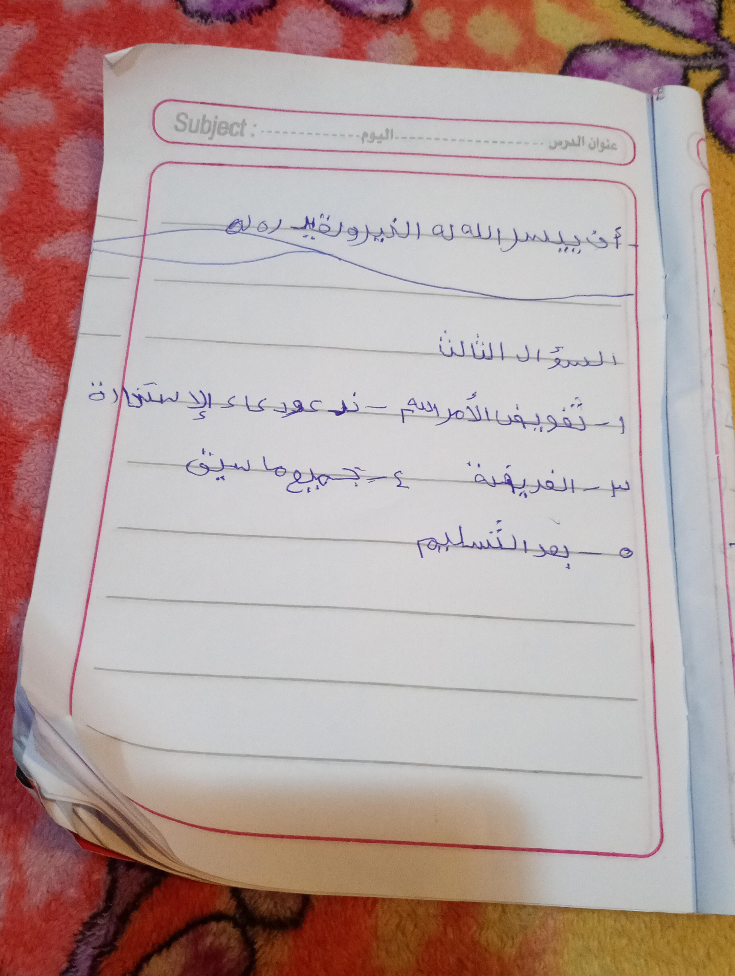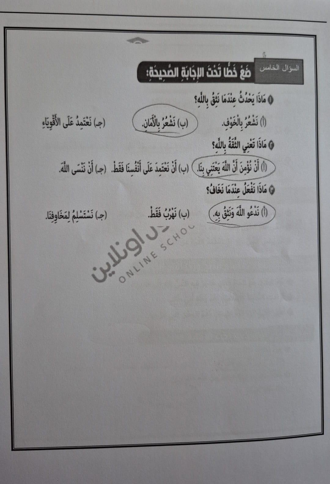 الدرس /تم مراجعة الوحدة الأولي الواجب/مذاكرة درس الثقة بالله وتحضير الوحدة الثانية