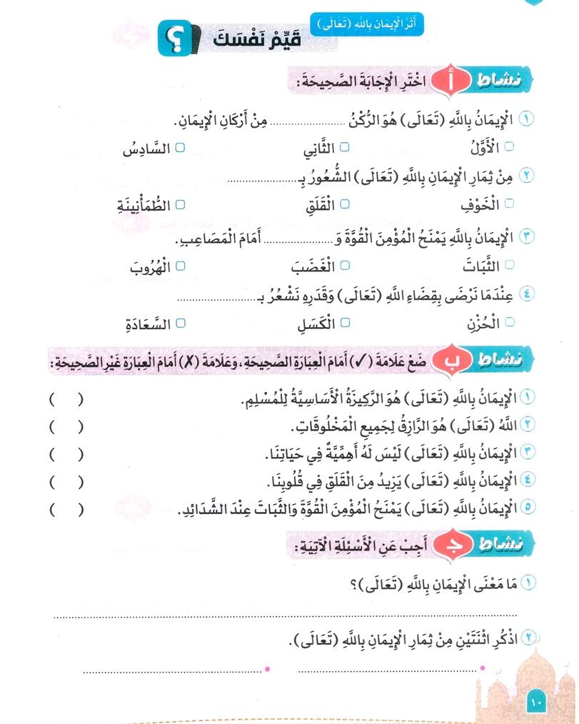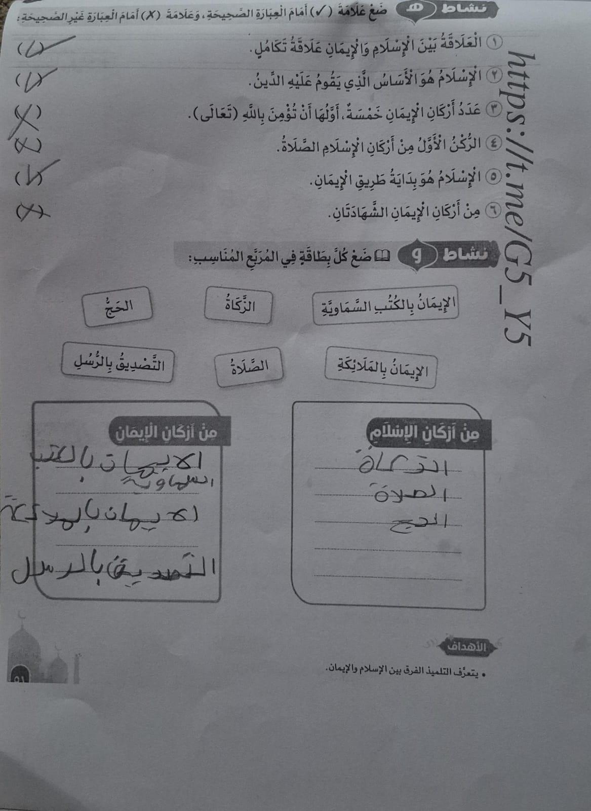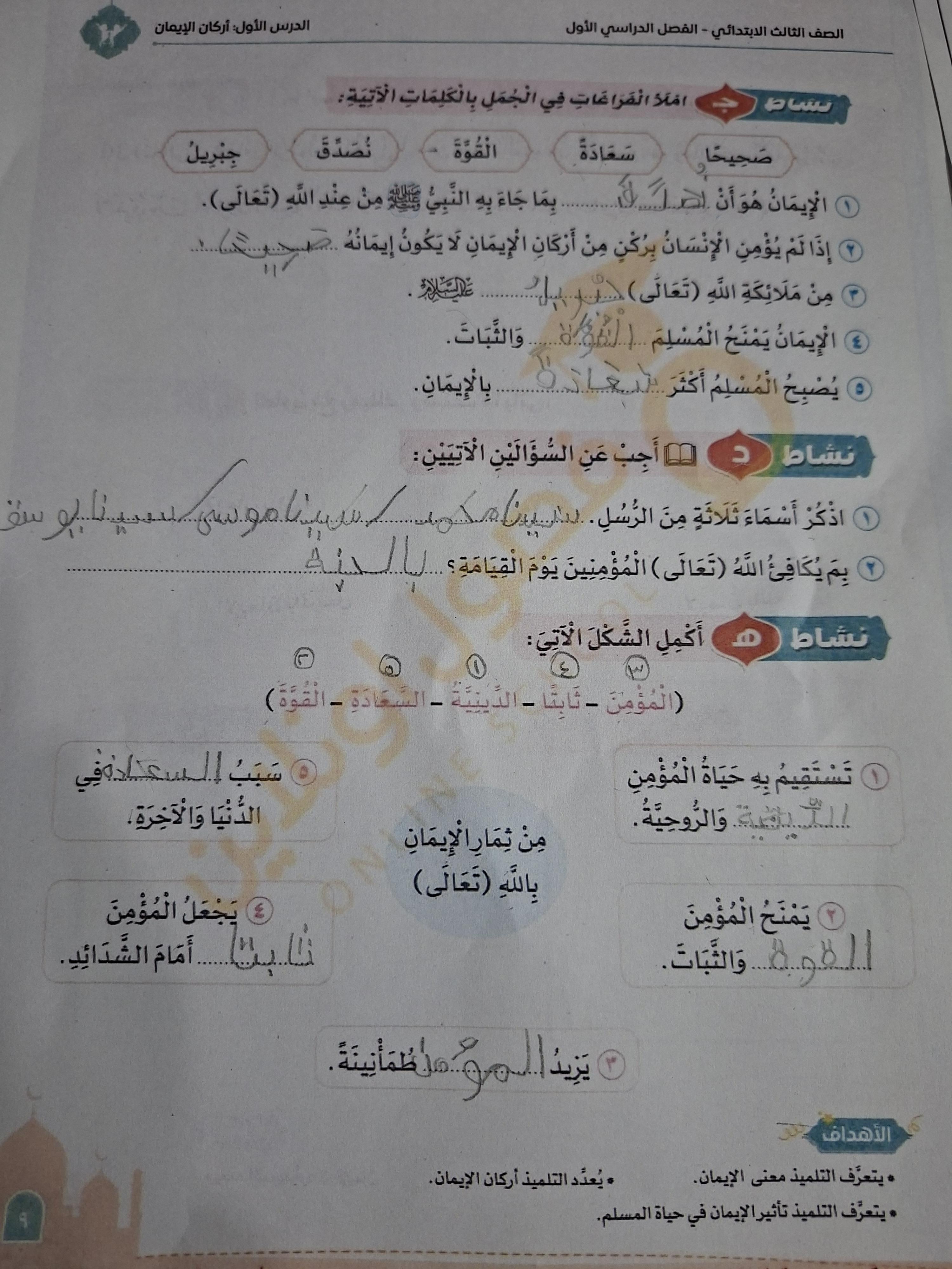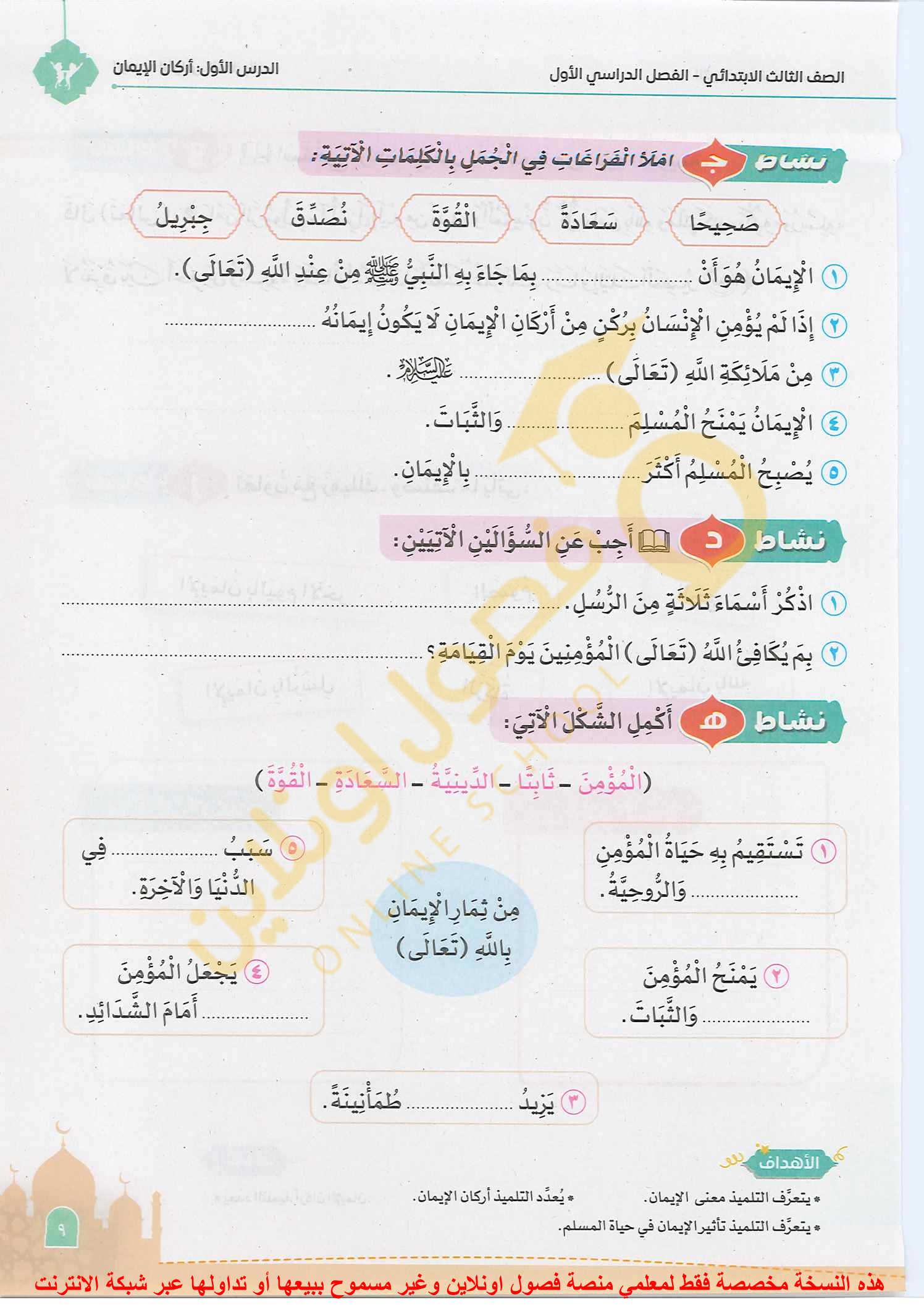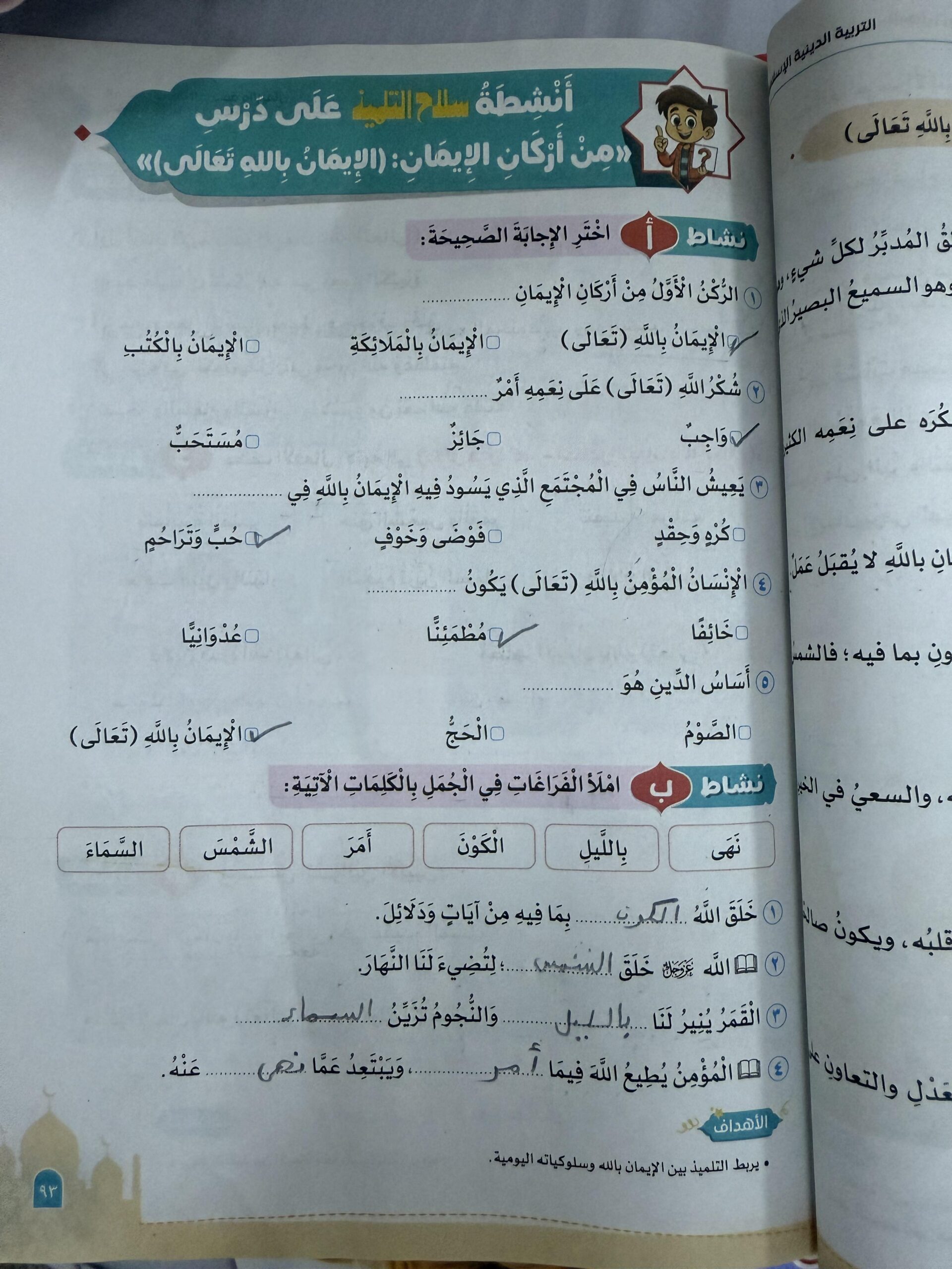 الدرس/ أركان الإيمان الواجب/ حل التدريبات + حفظ الحديث