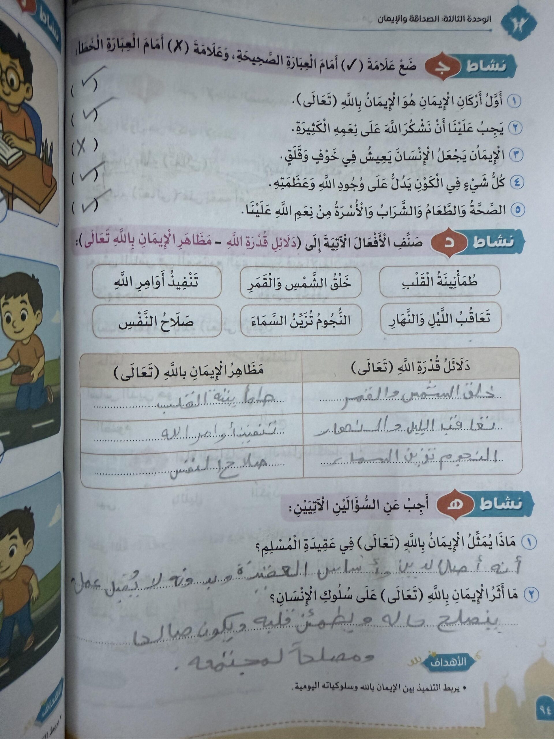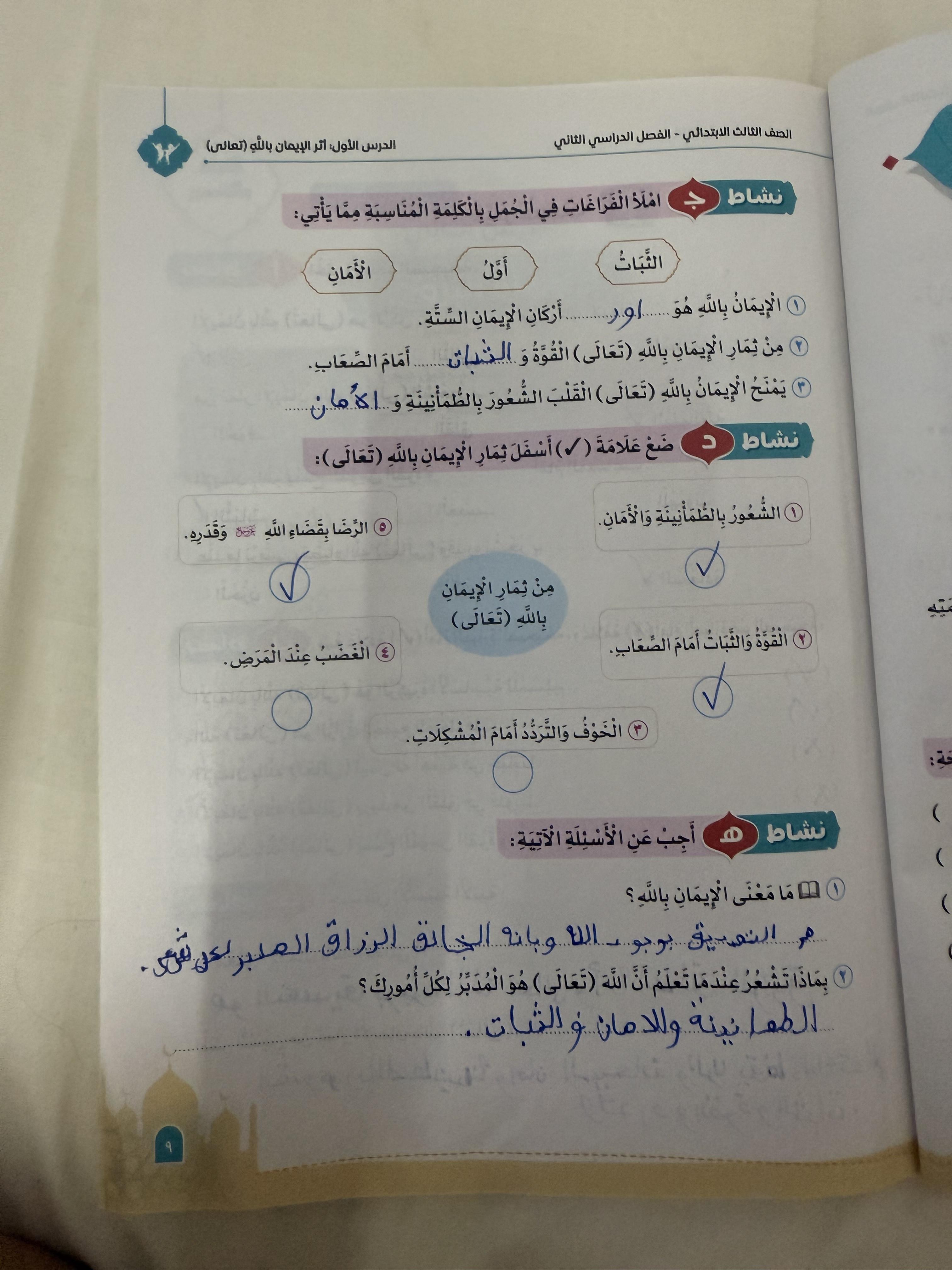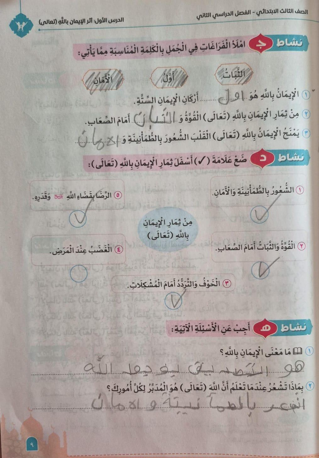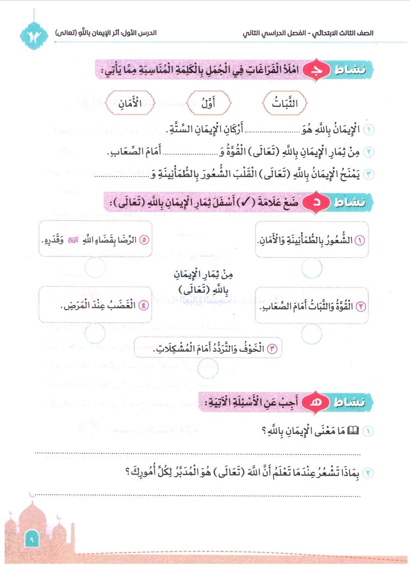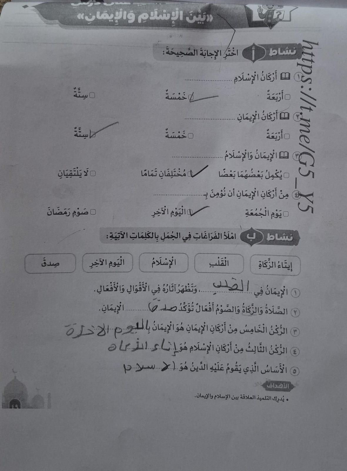 الدرس/ أركان الإيمان الواجب/ حل التدريبات + حفظ الحديث