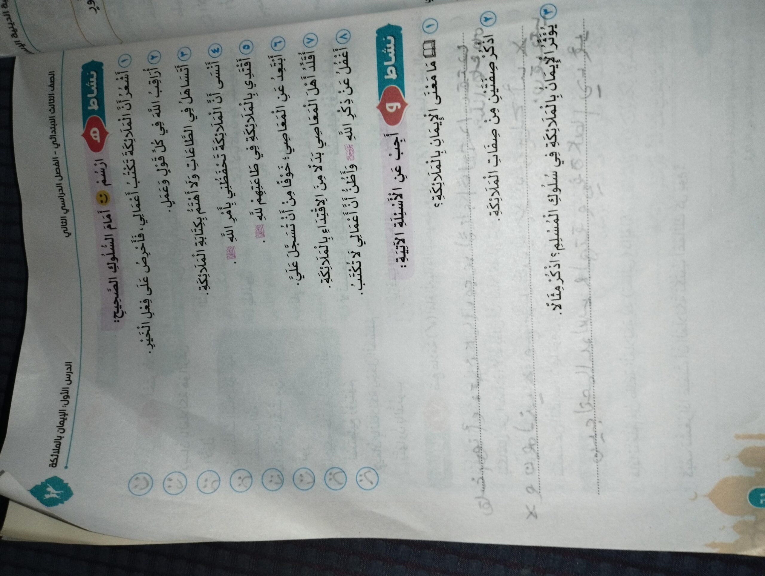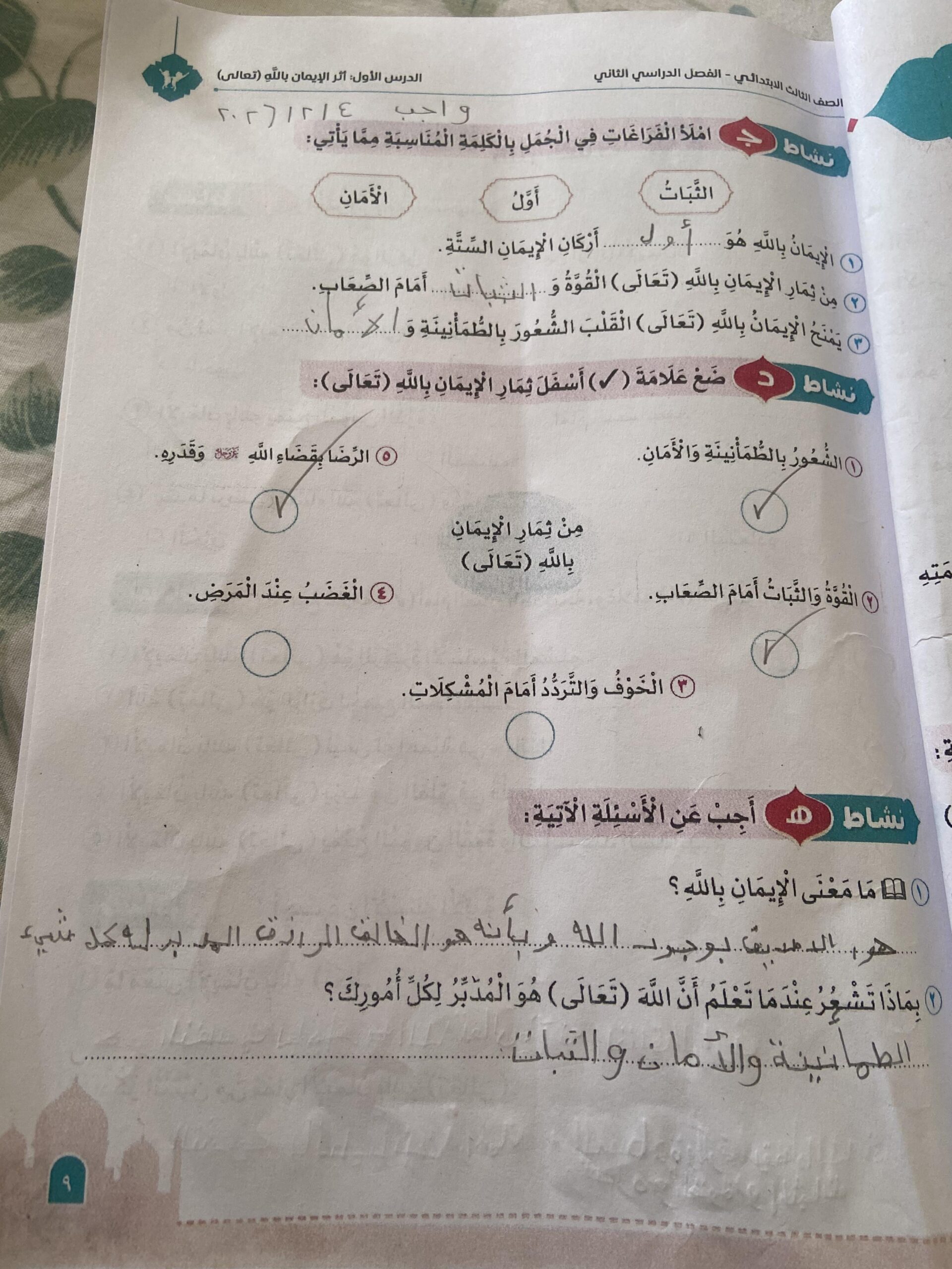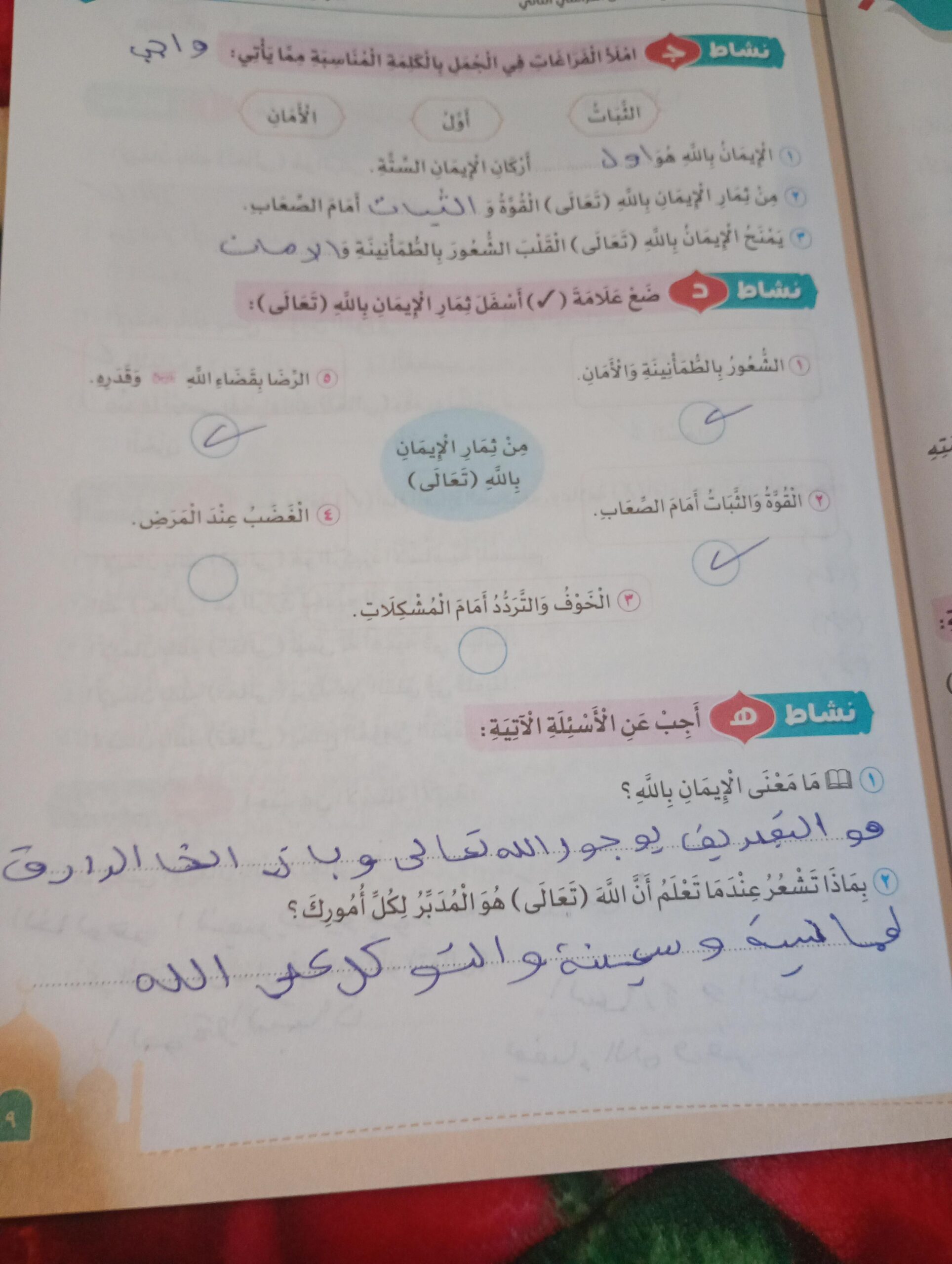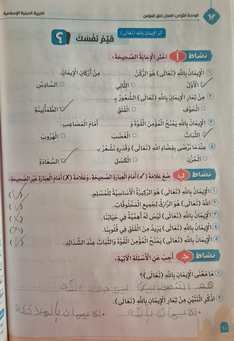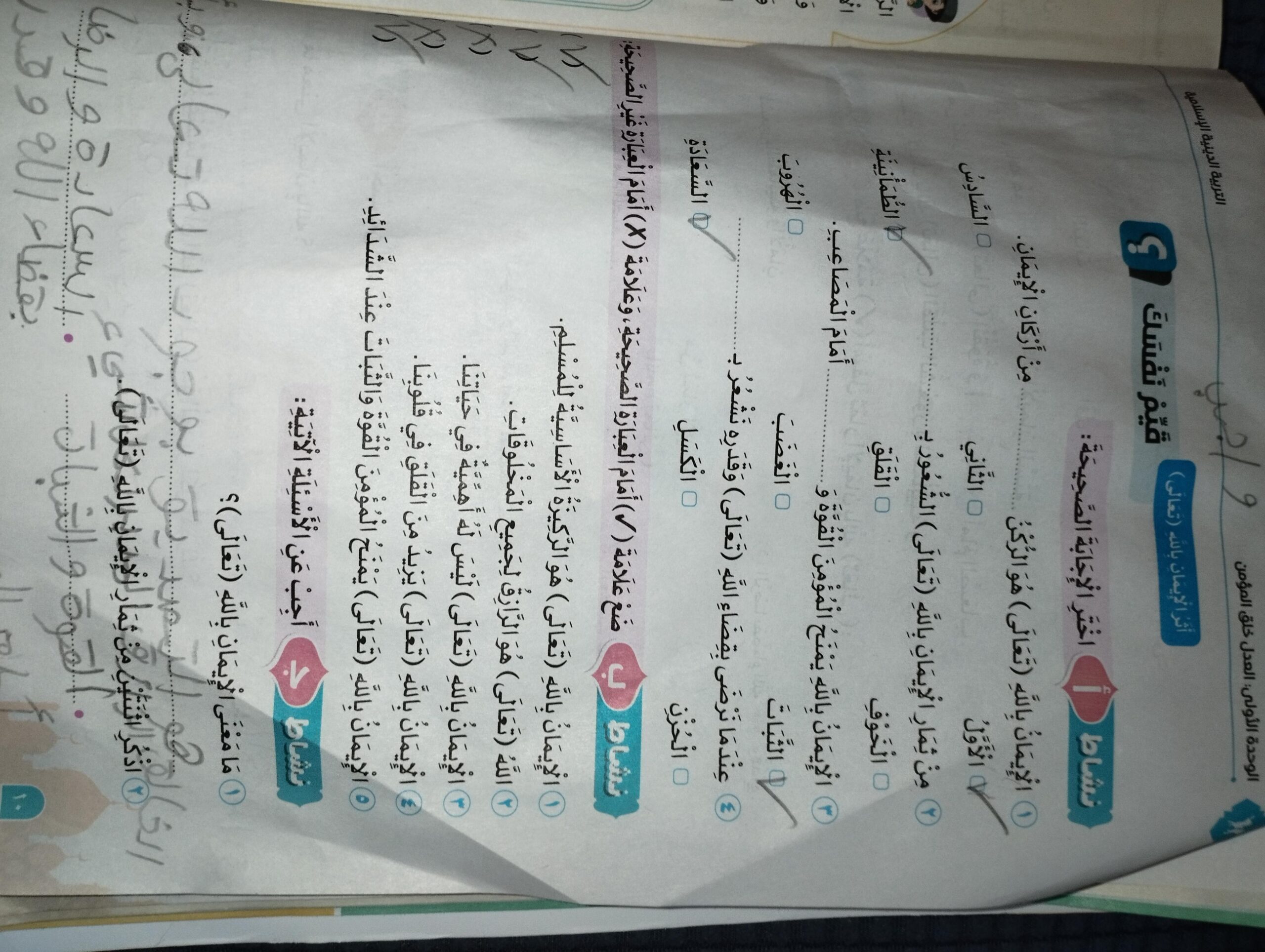 الدرس/ أركان الإيمان الواجب/ حل التدريبات + حفظ الحديث
