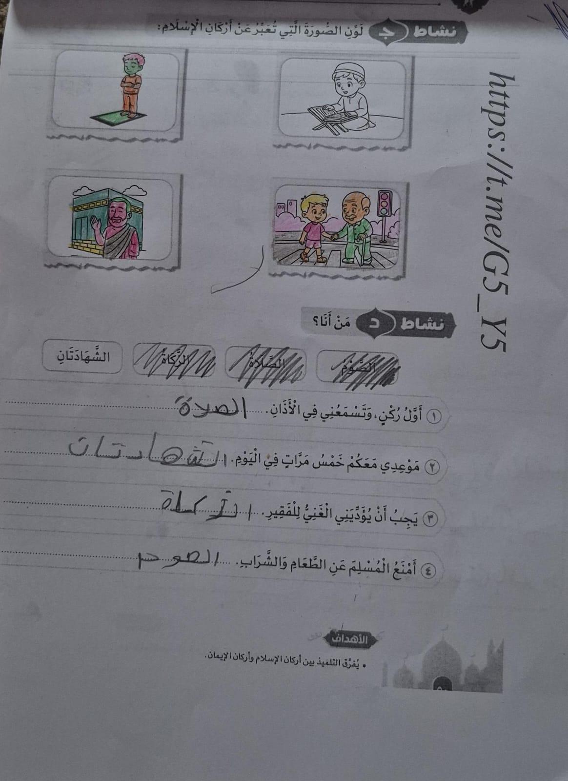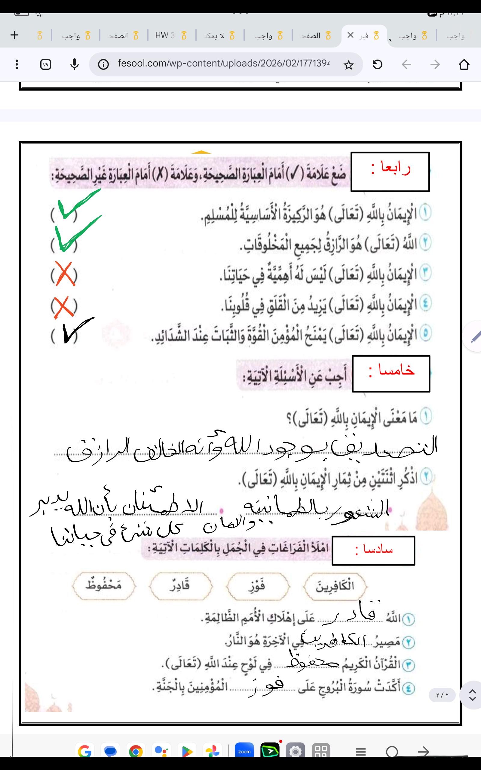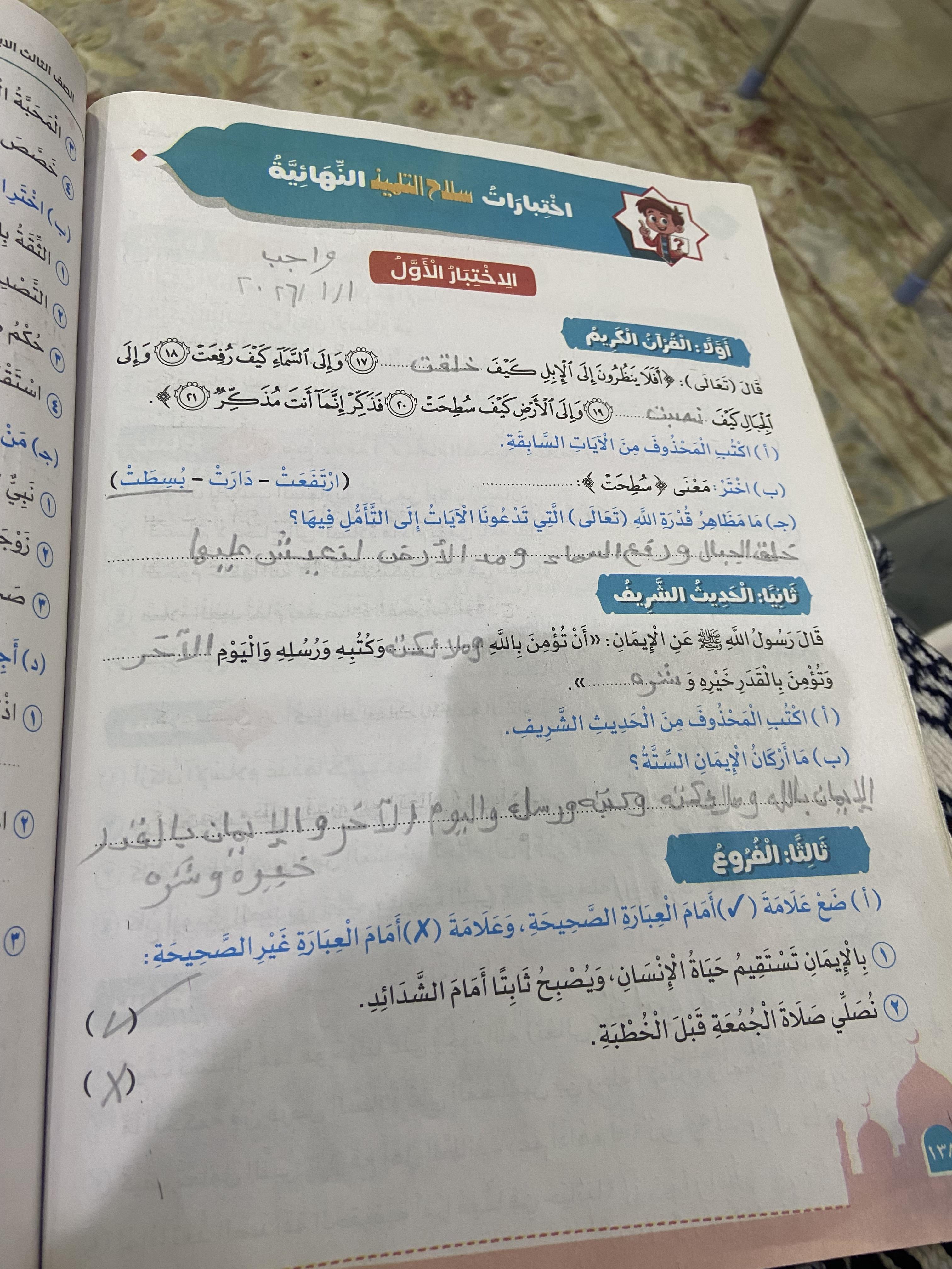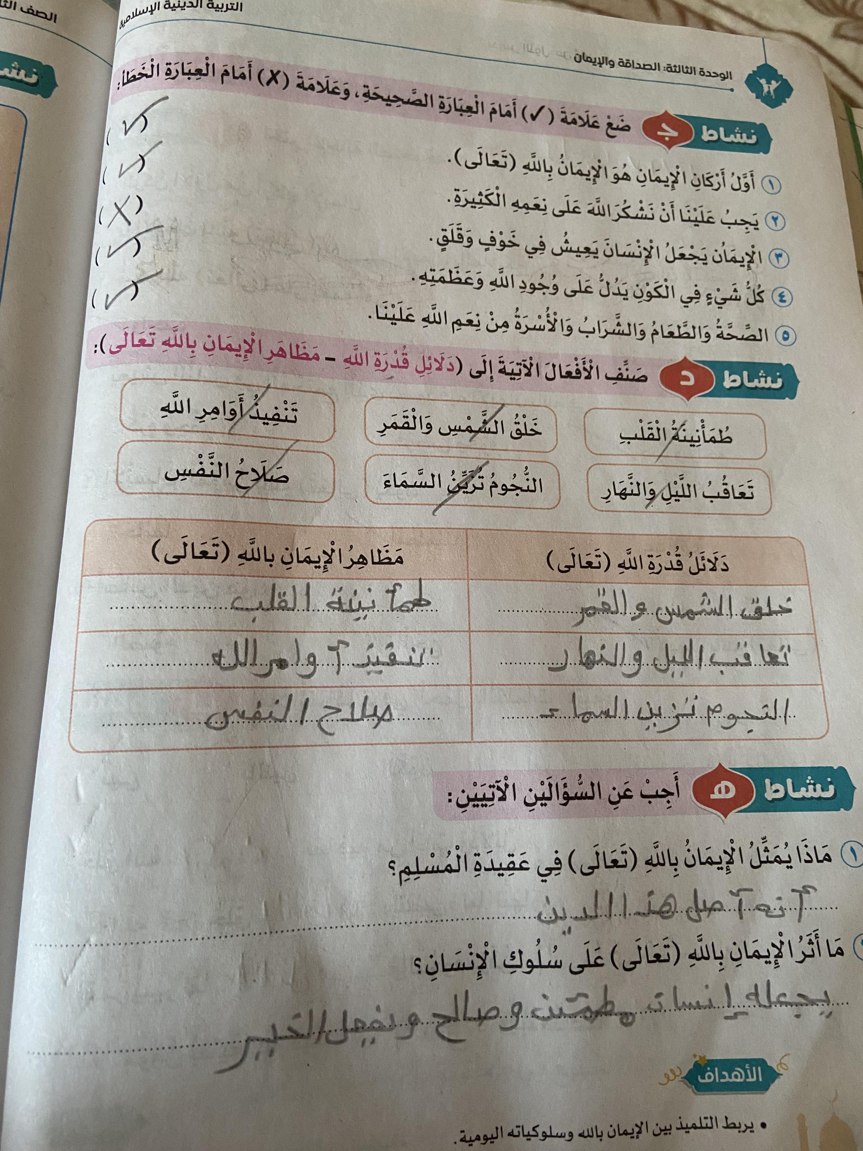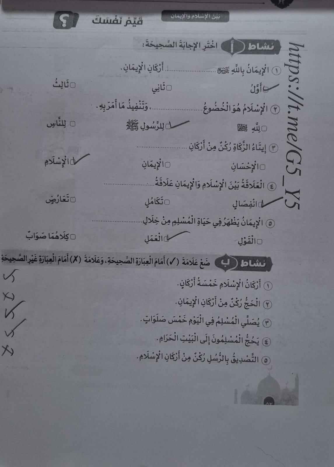 الدرس/ أركان الإيمان الواجب/ حل التدريبات + حفظ الحديث