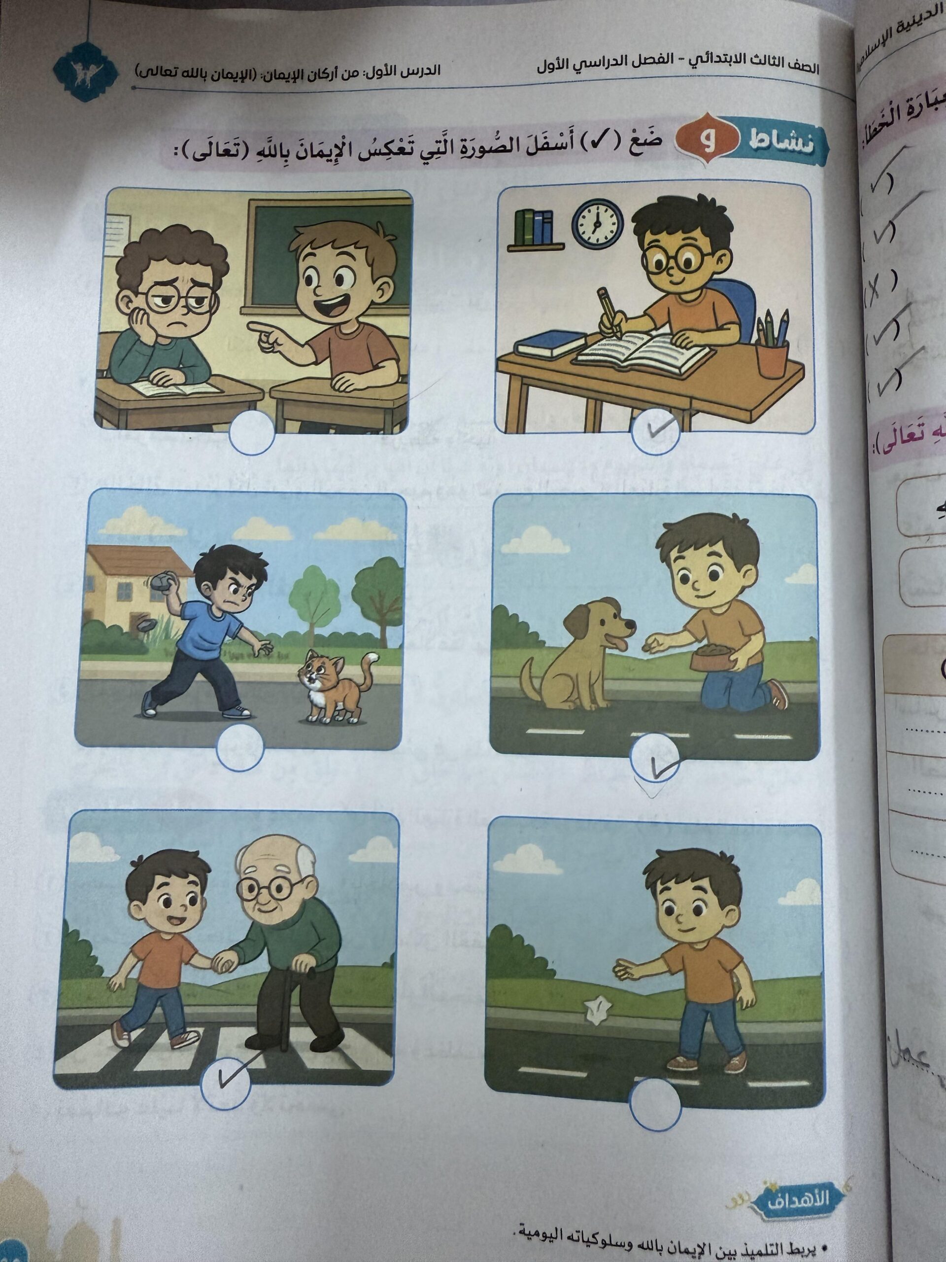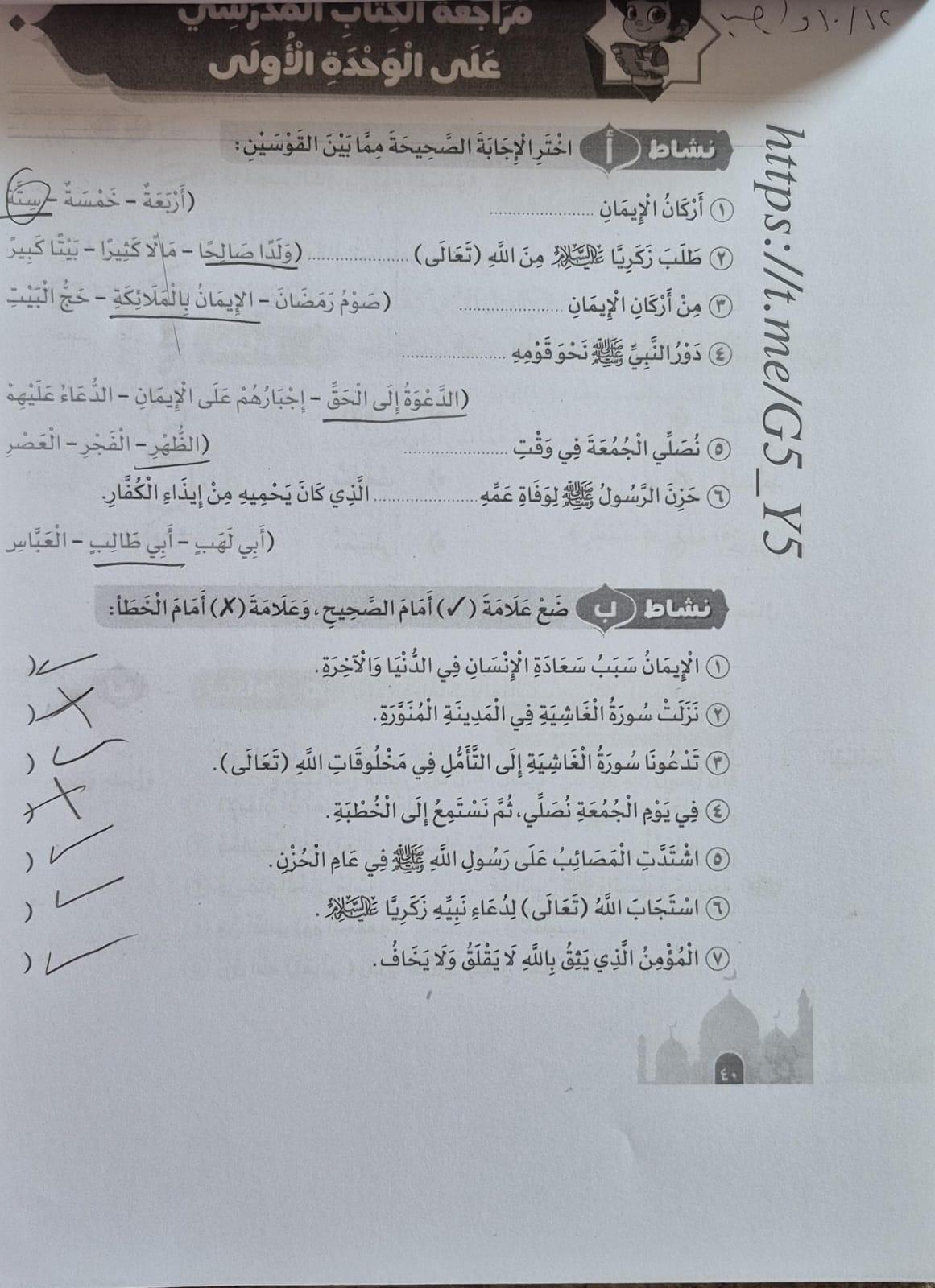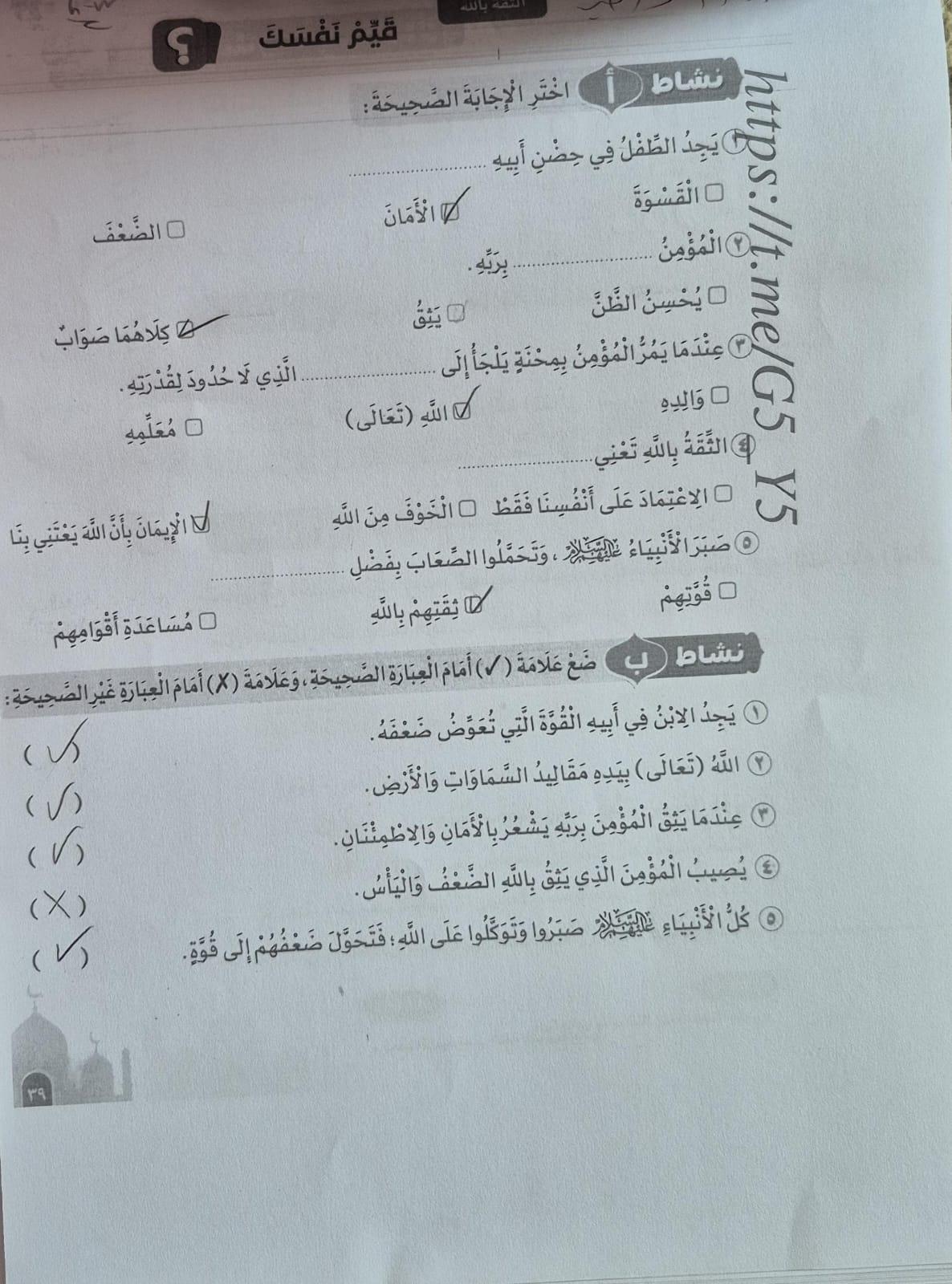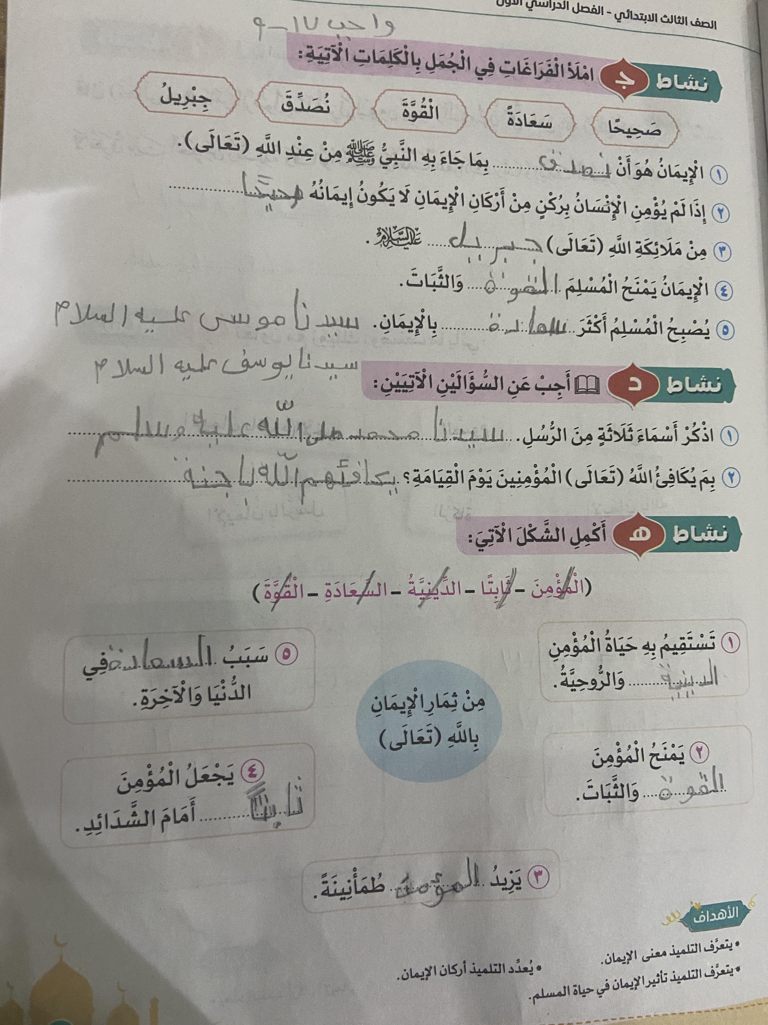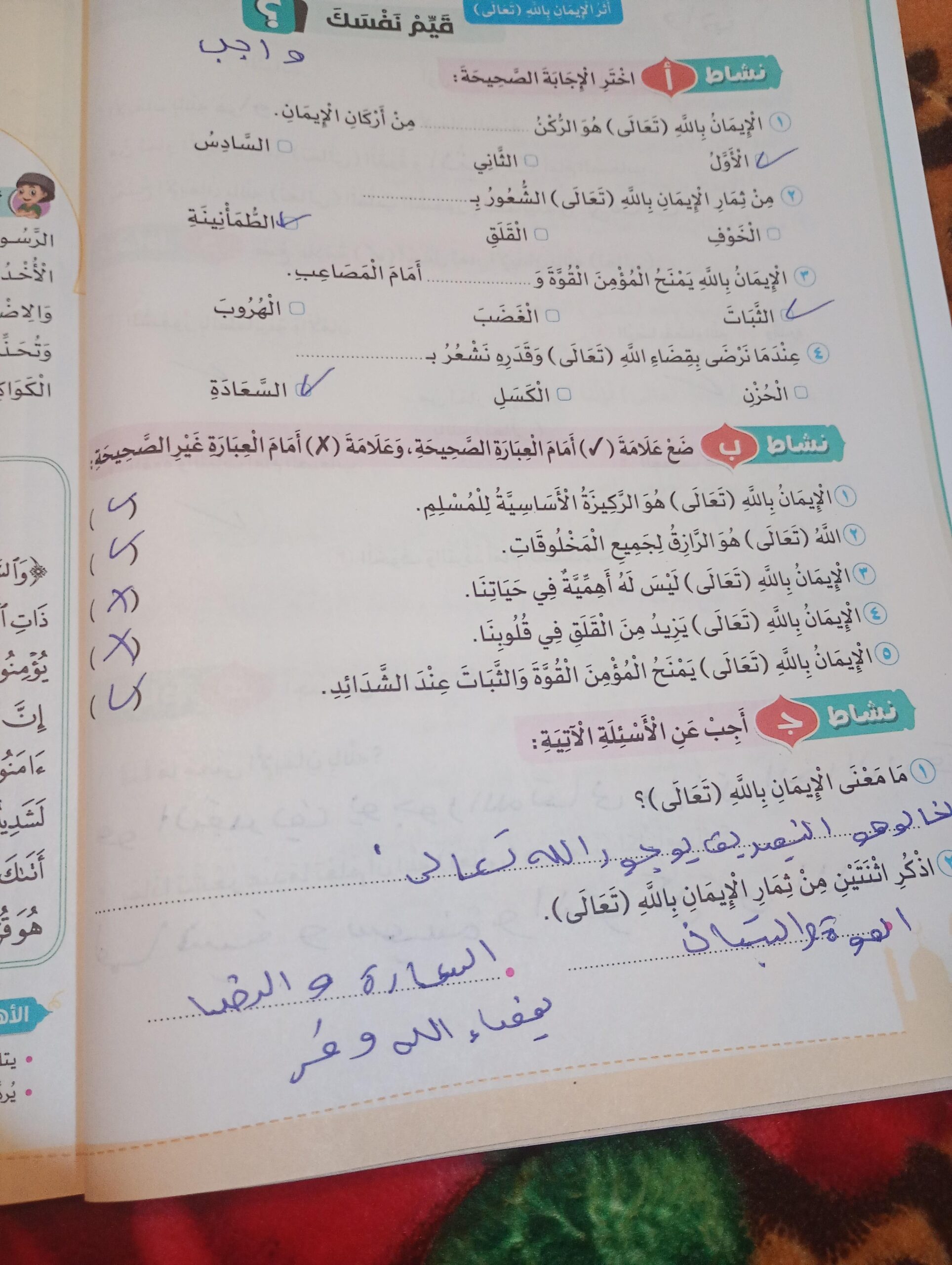 الدرس/ أركان الإيمان الواجب/ حل التدريبات + حفظ الحديث
