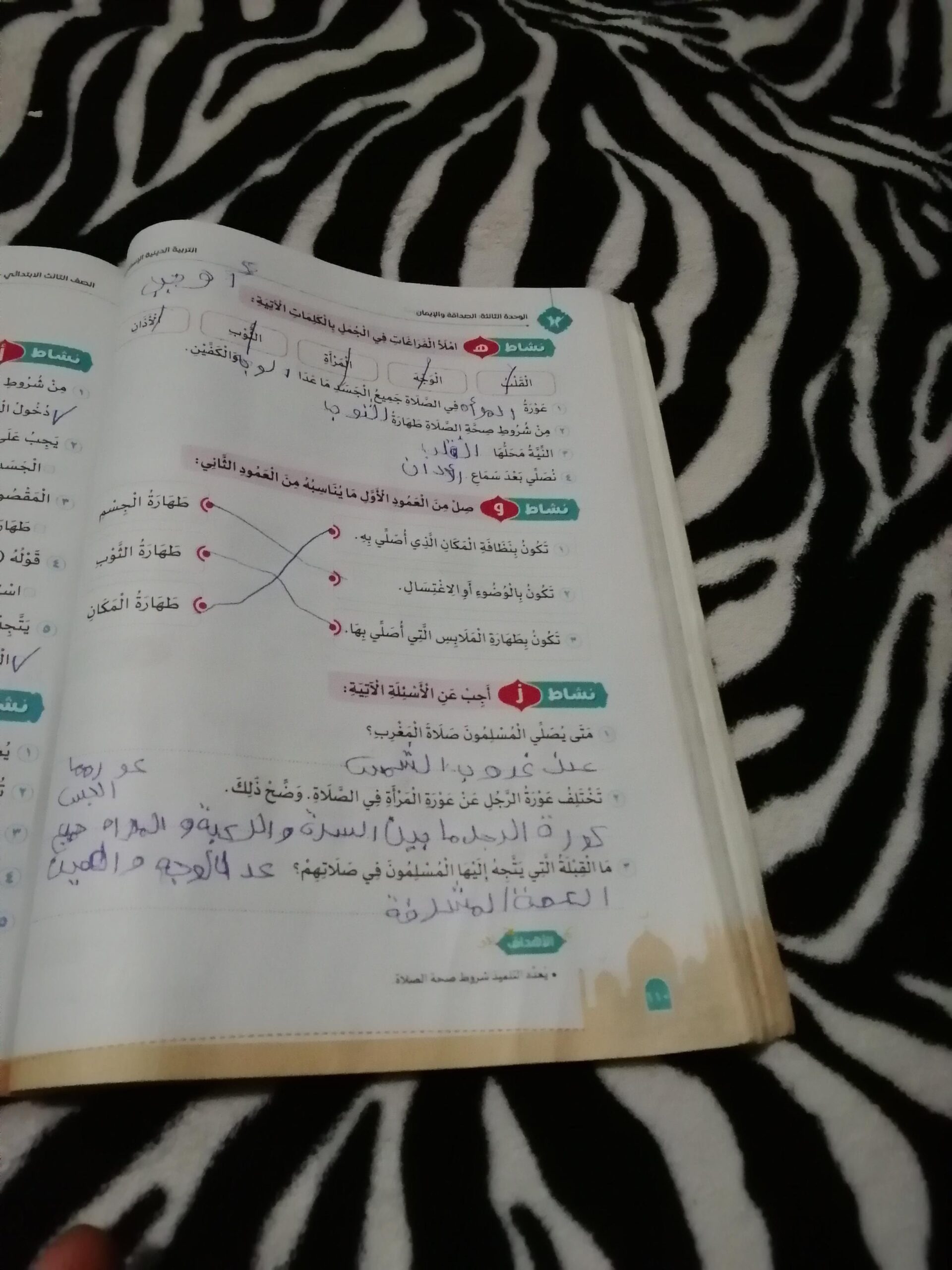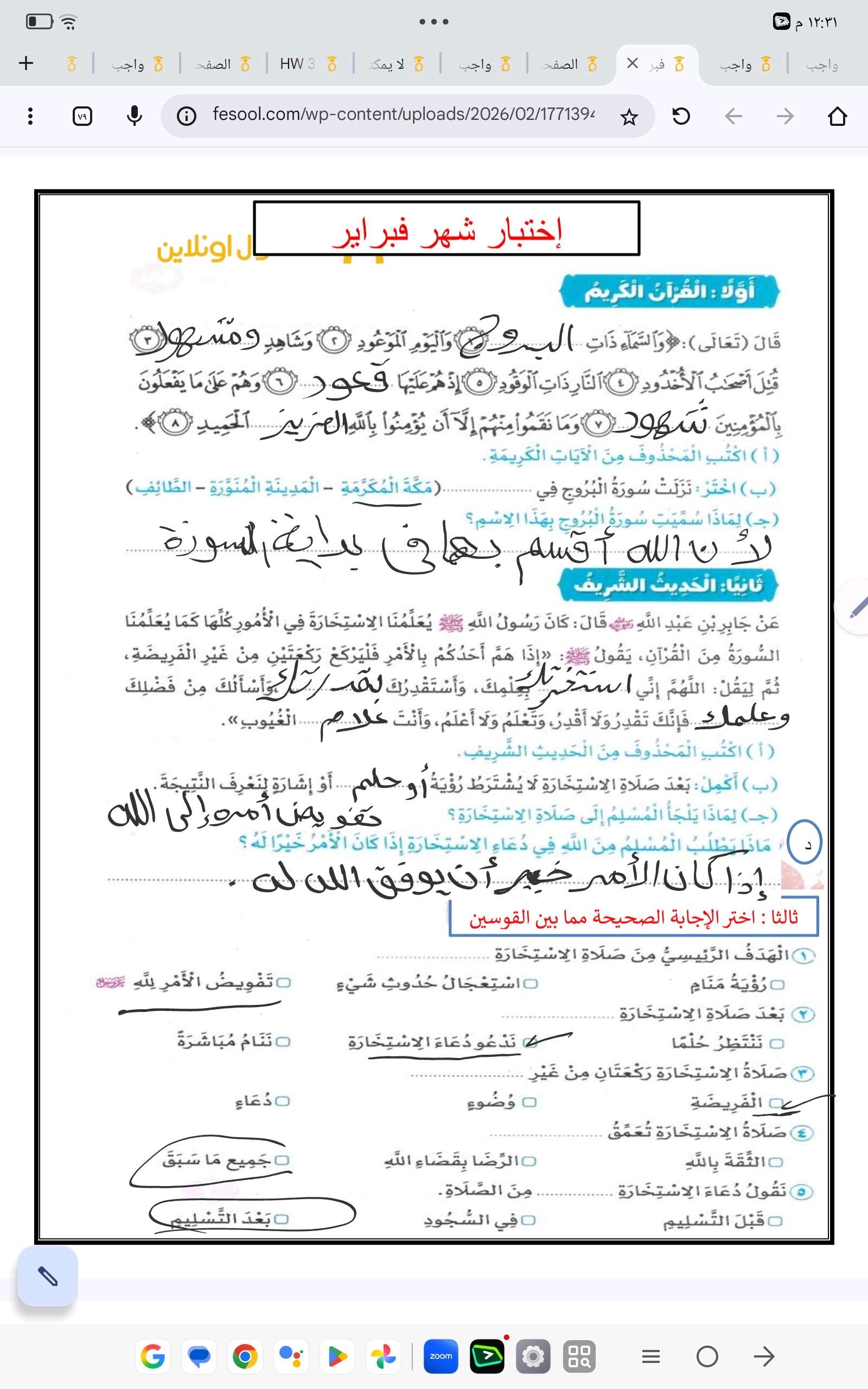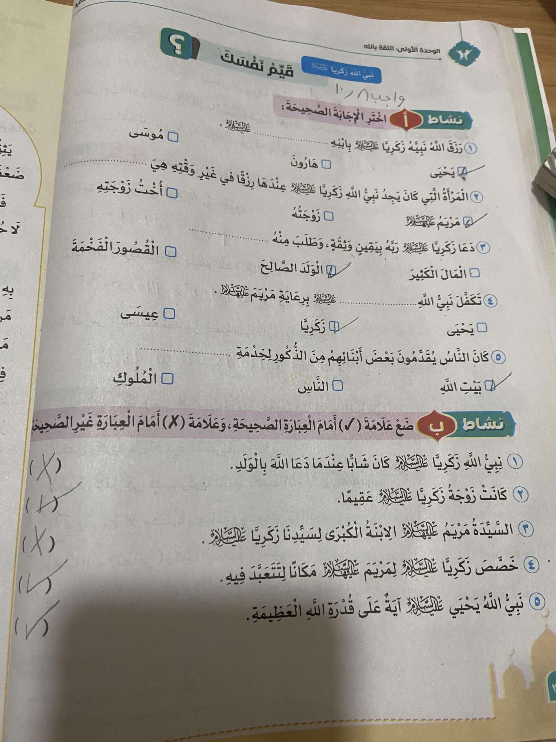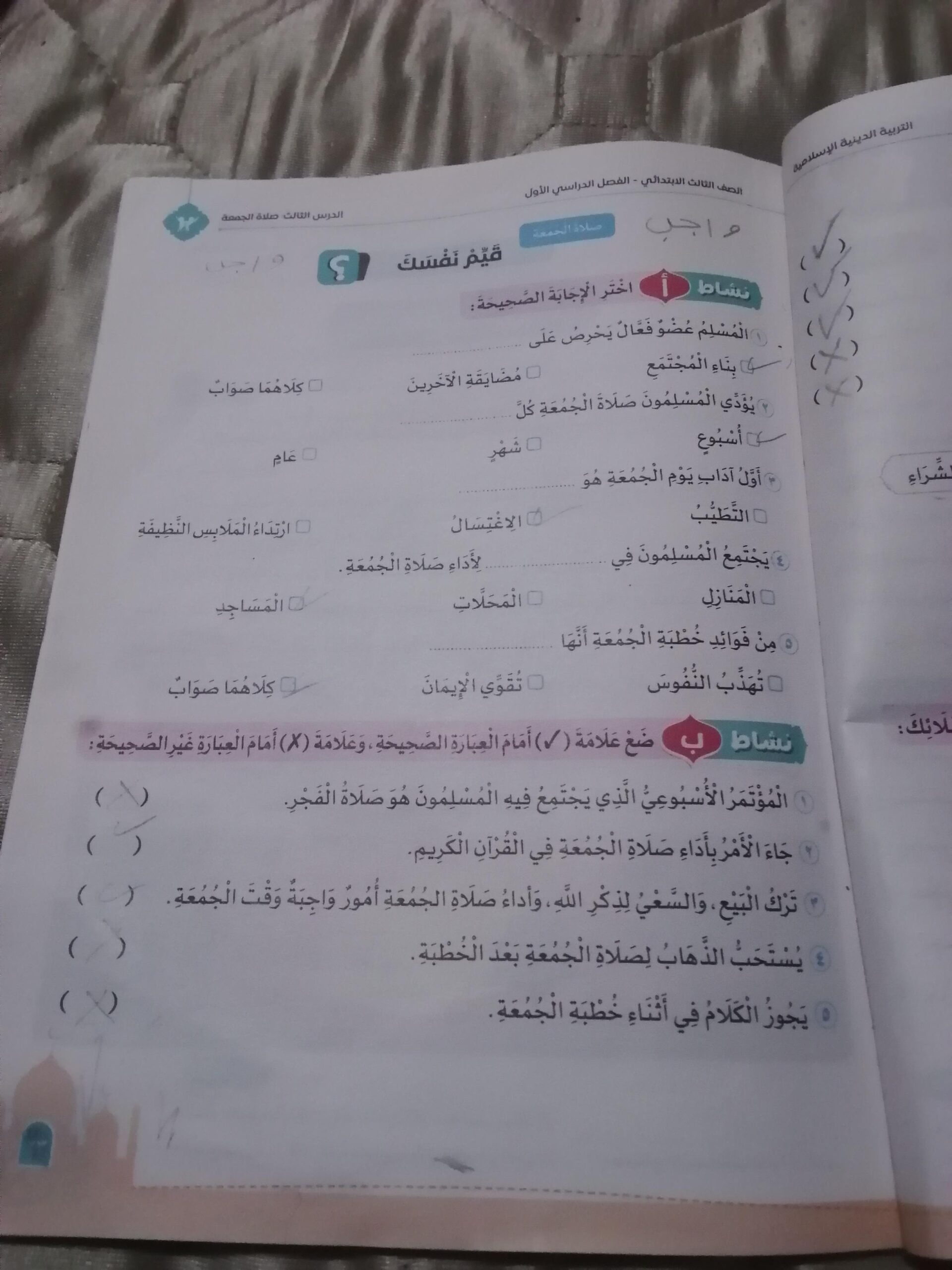 الدرس\ آية الكرسي وصلاة الإستخارة الواجب\ حل تدريبات الكتاب صفحة ( 22و28و29 )