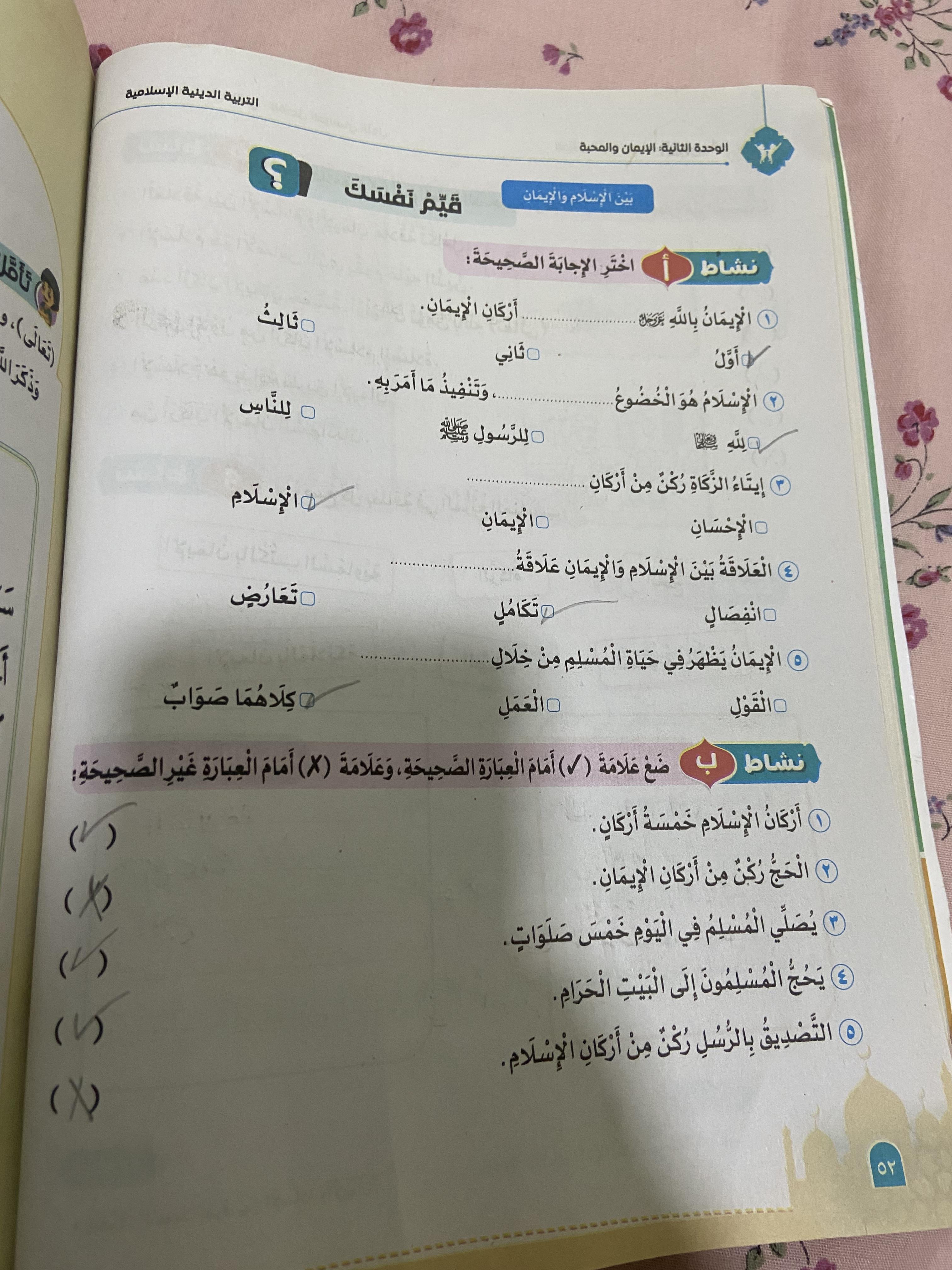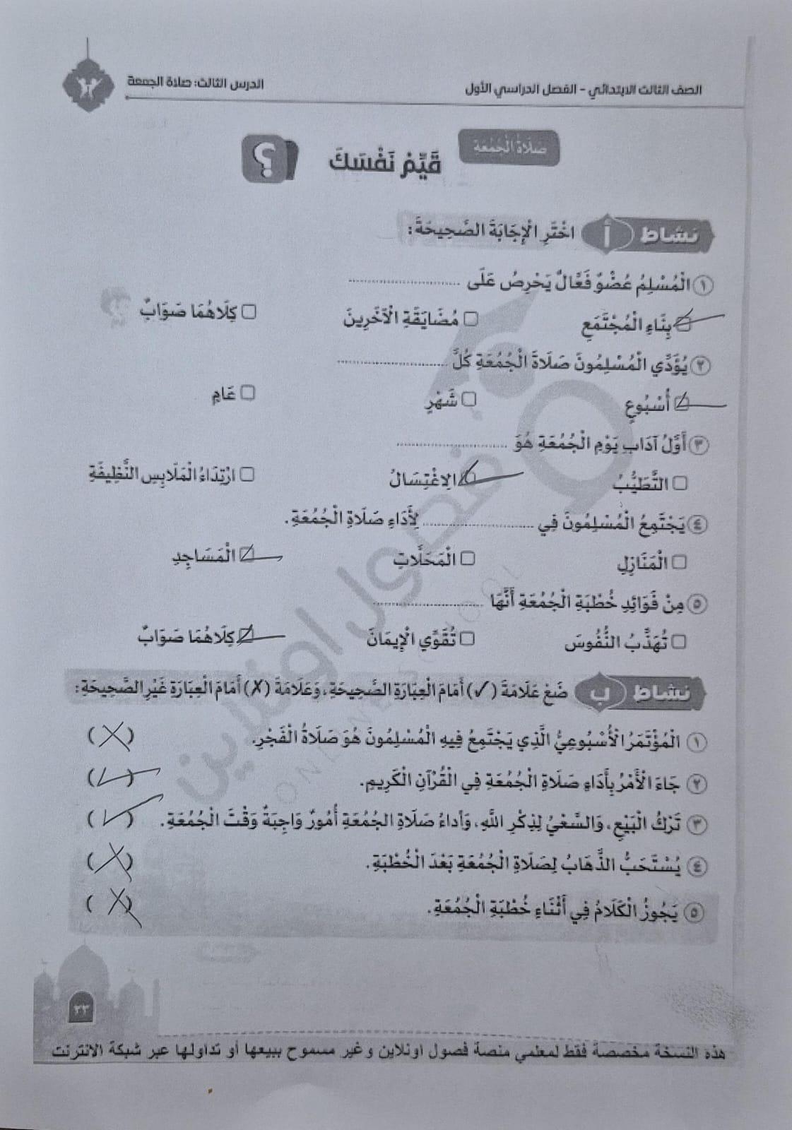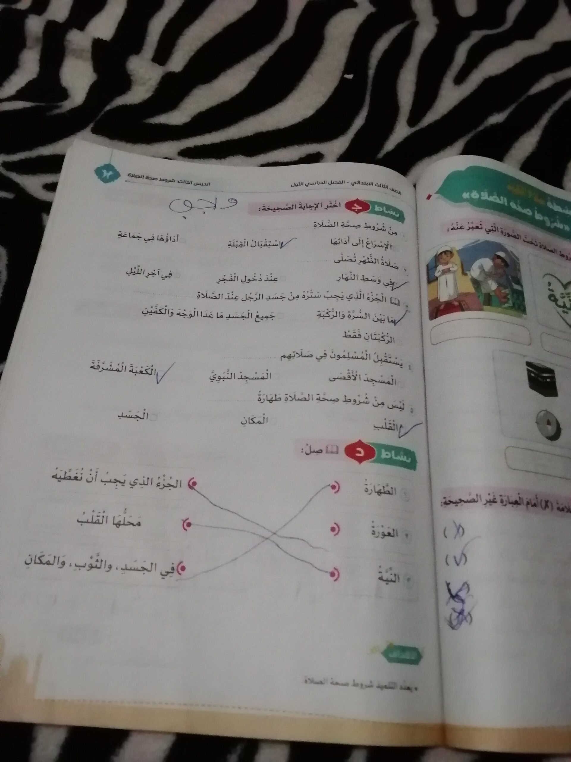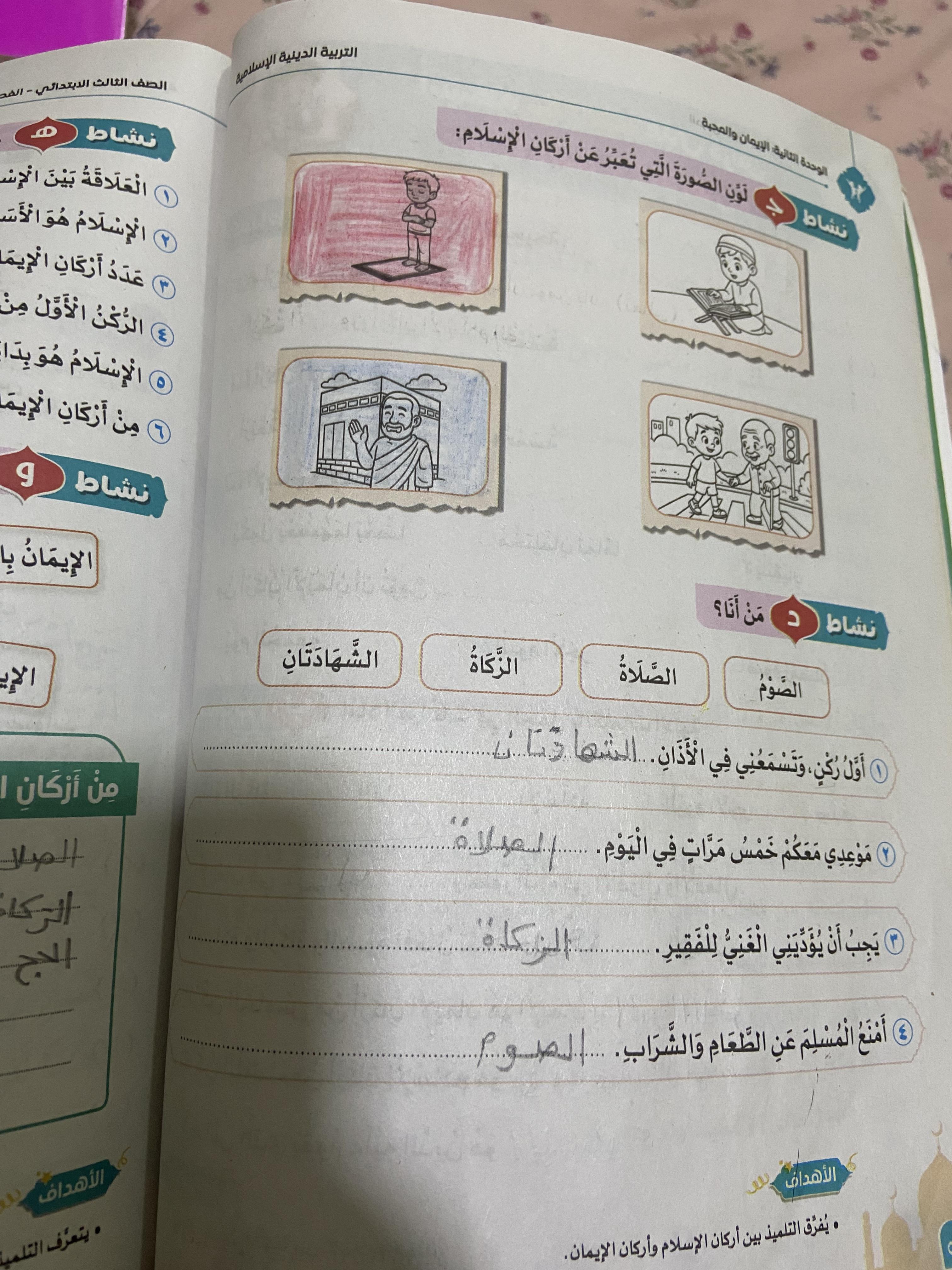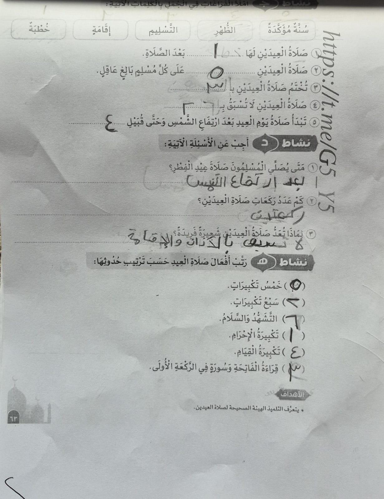 الدرس\ آية الكرسي وصلاة الإستخارة الواجب\ حل تدريبات الكتاب صفحة ( 22و28و29 )
