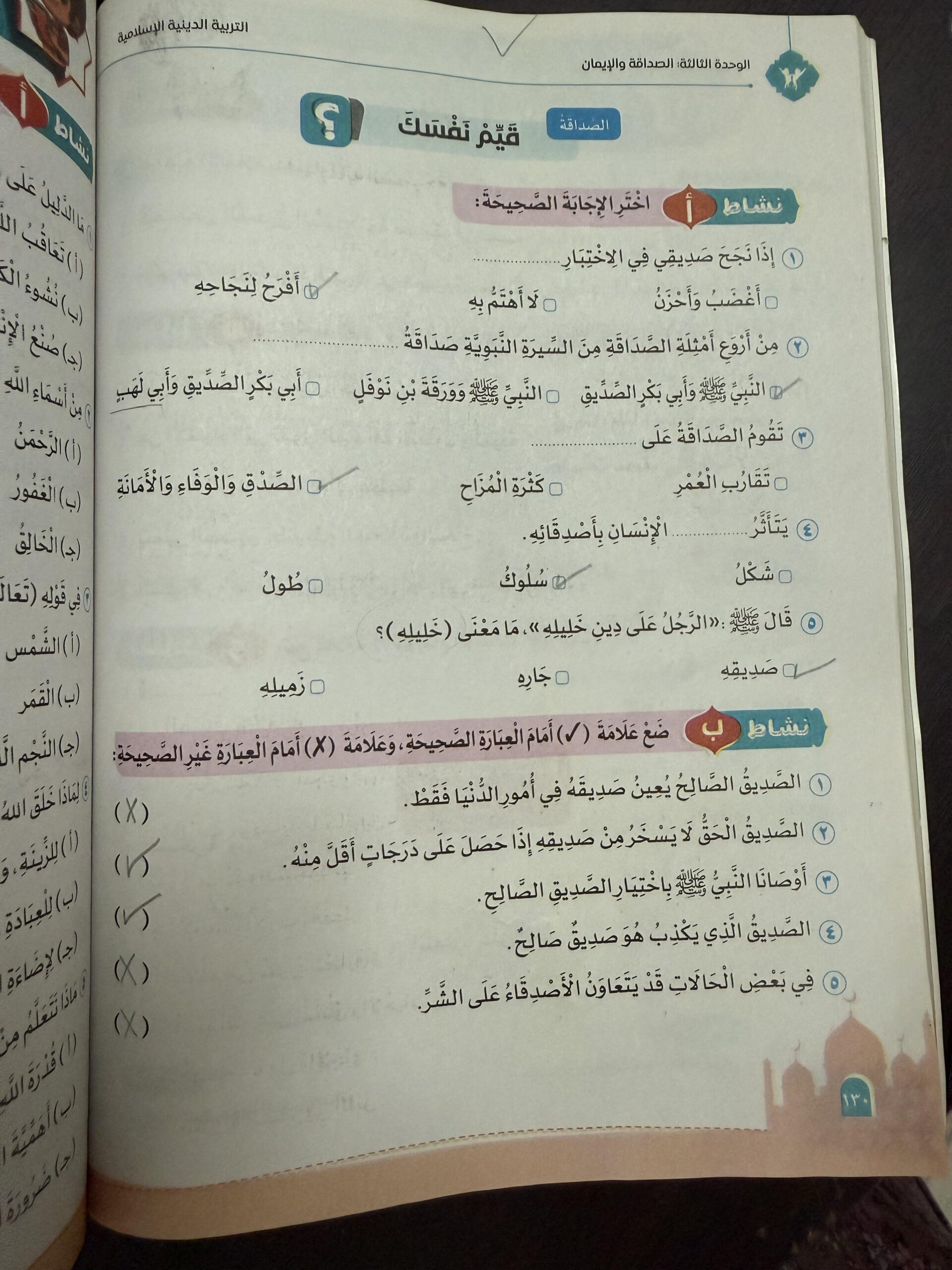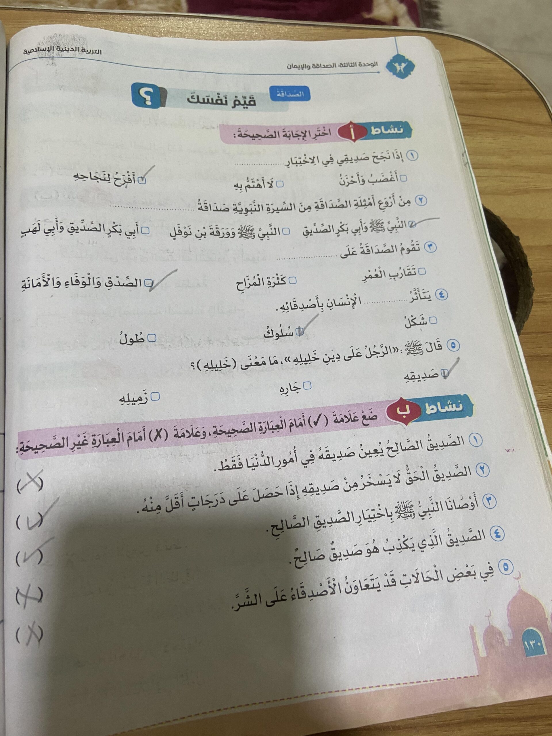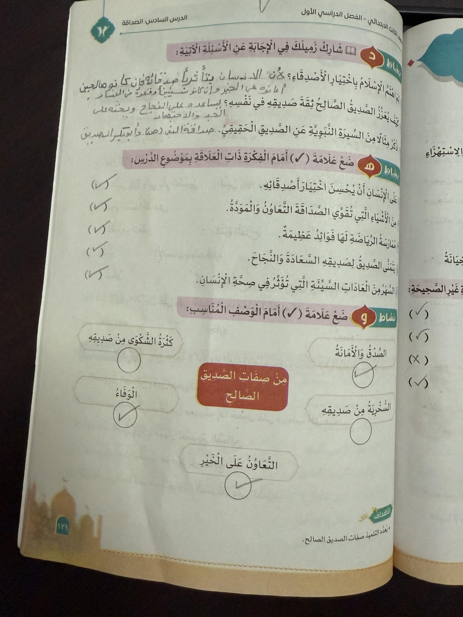الدرس/ الصداقة الواجب / حل تدريبات صفحة 129و130