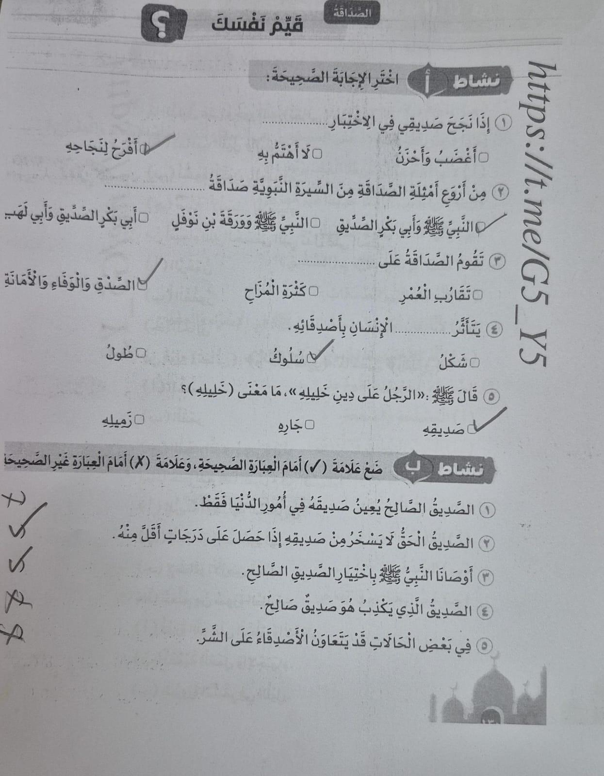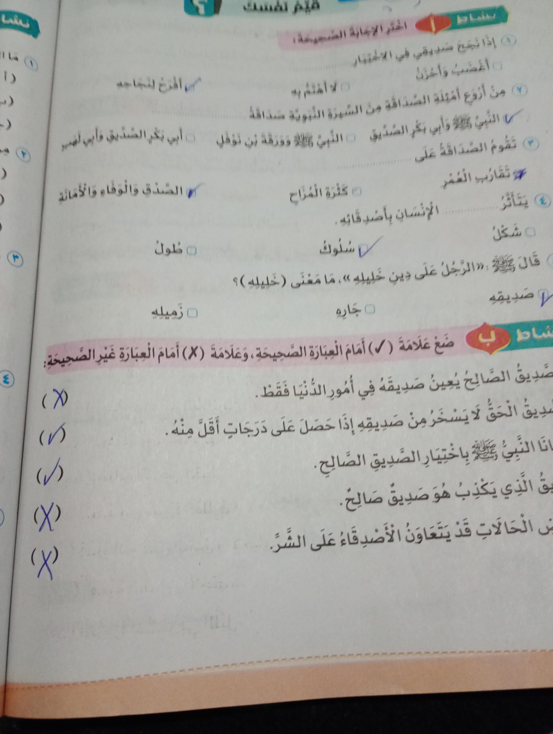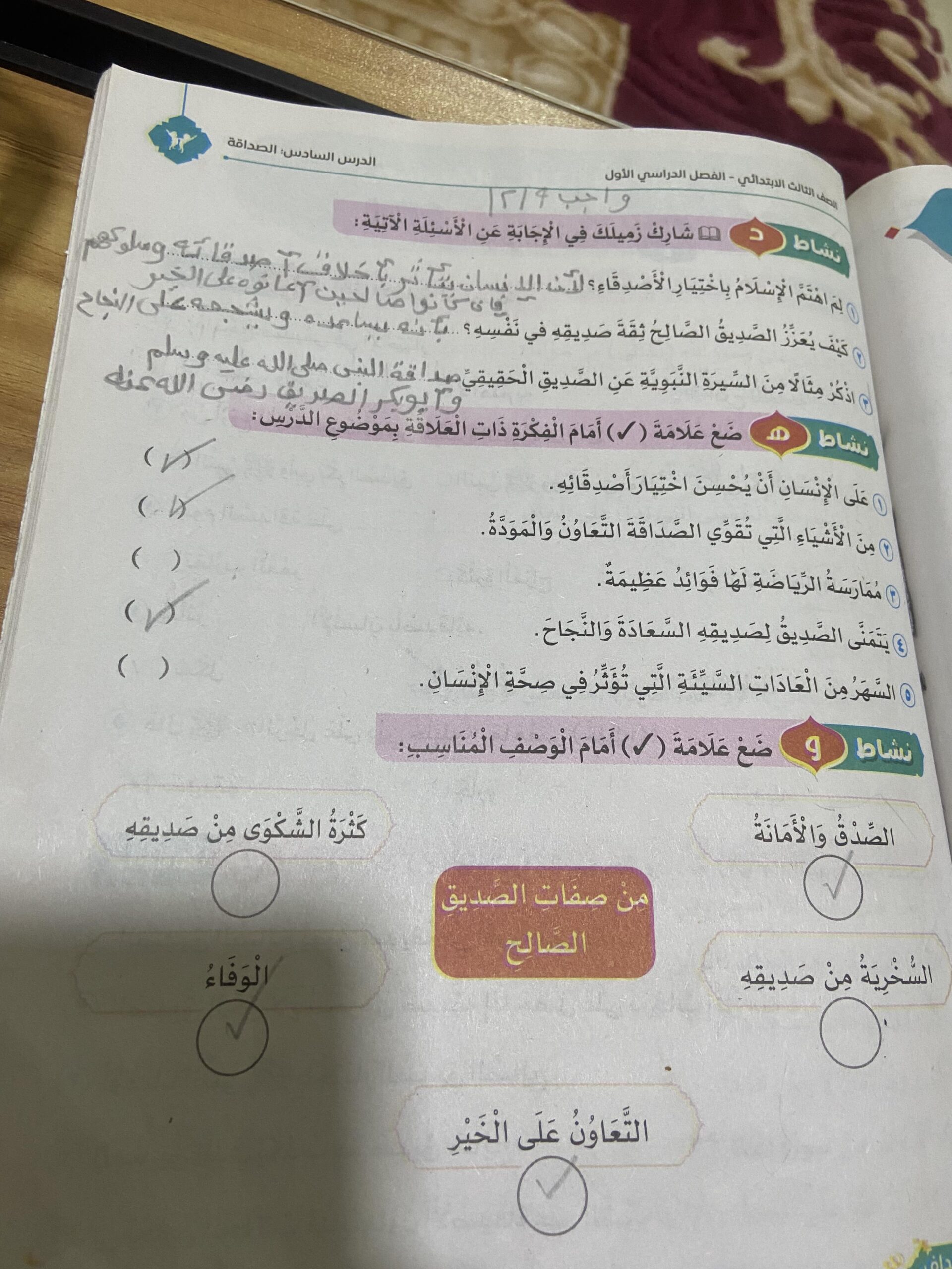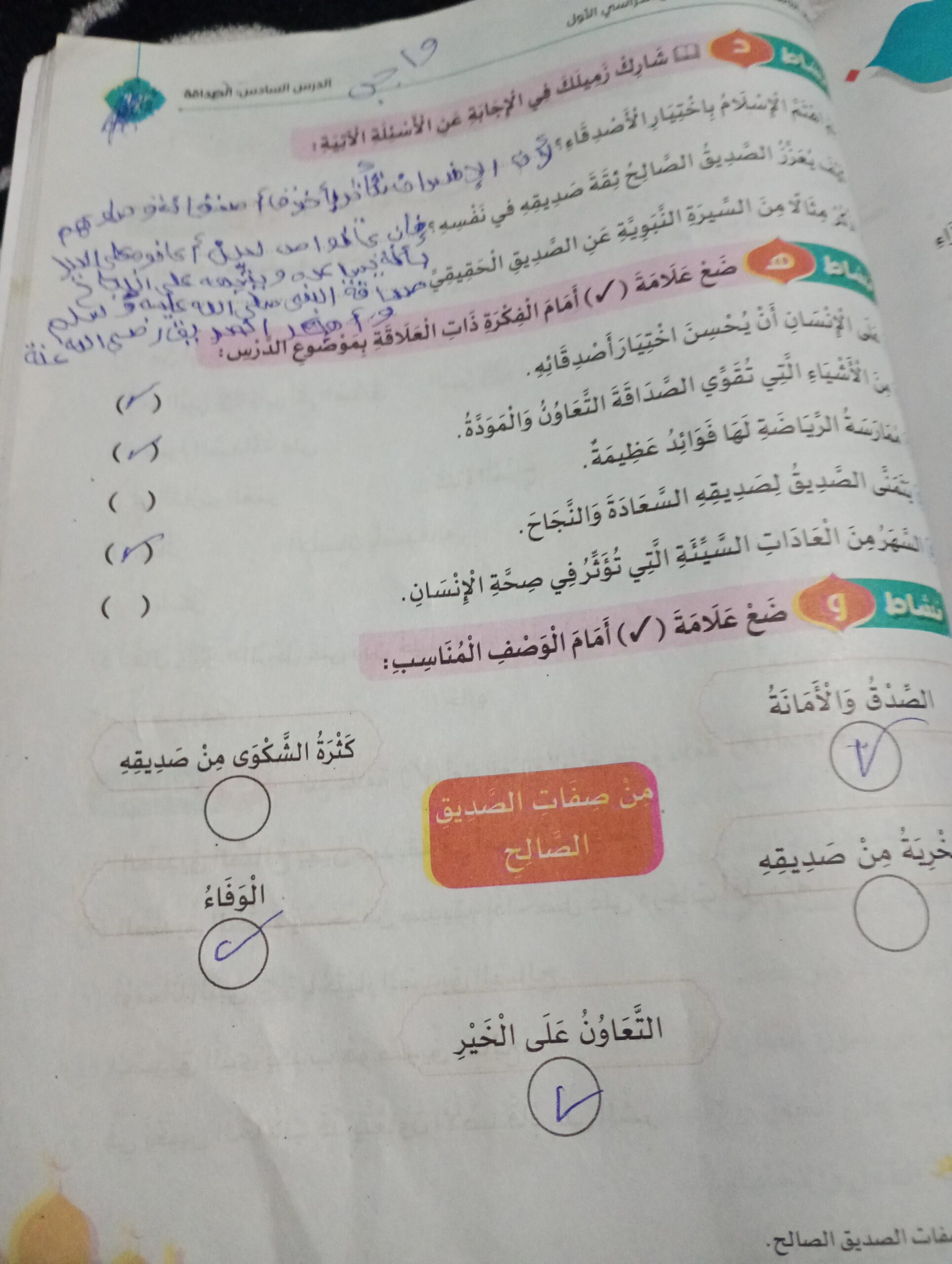 الدرس/ تم مراجعة درس الصداقة وحل تدريبات
