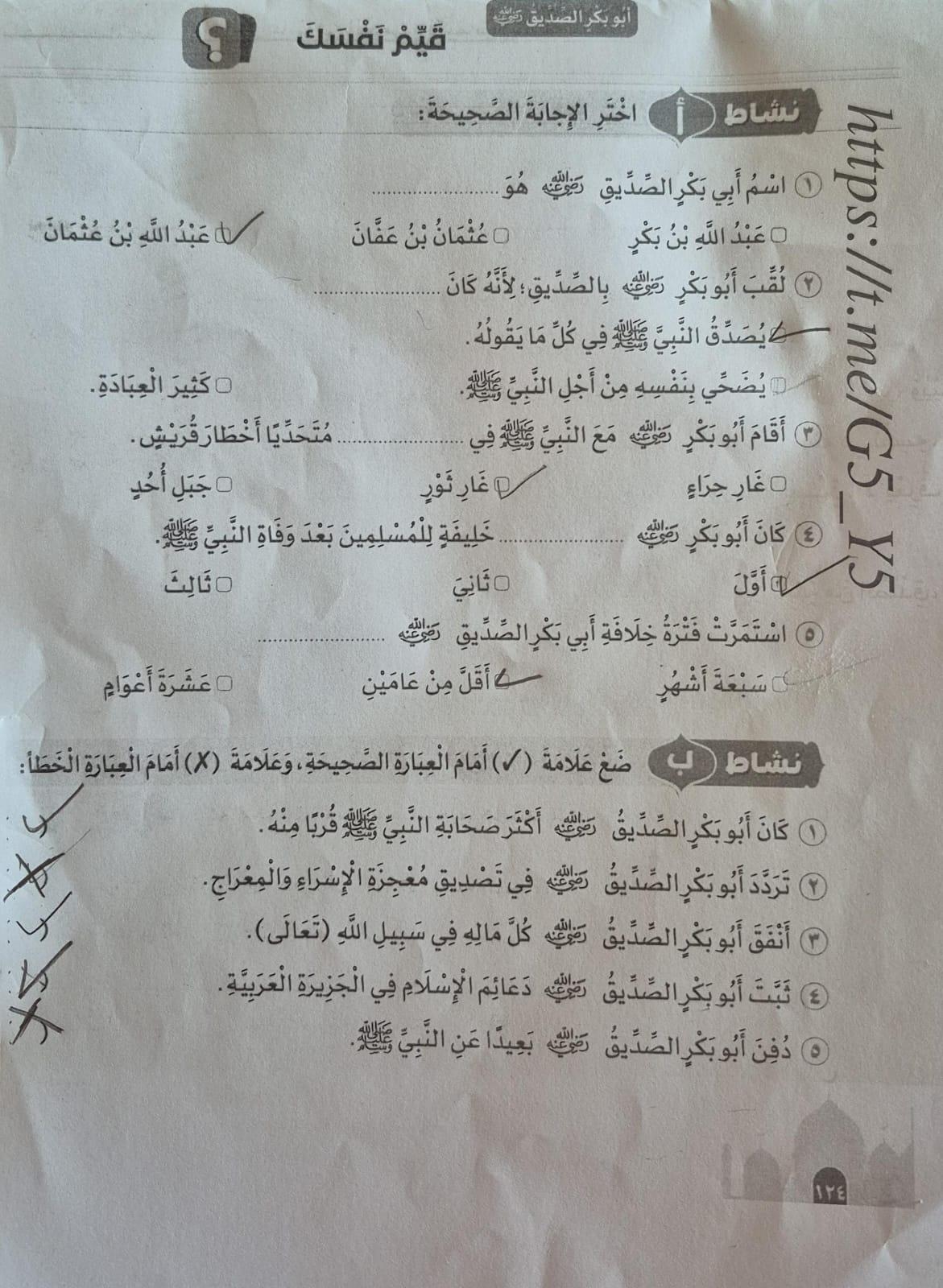 الدرس/ أبو بكر الصديق الواجب/ صفحة 124