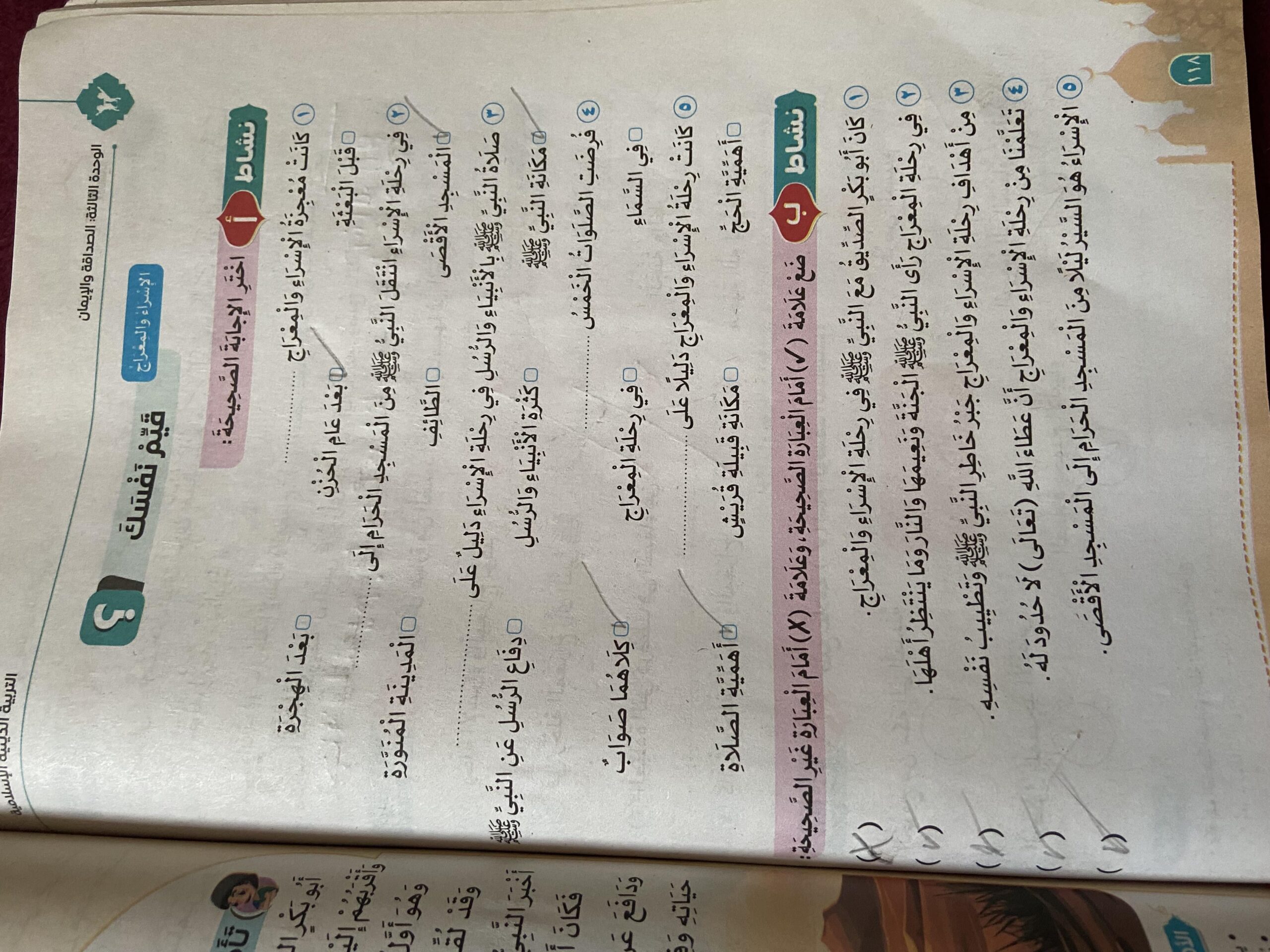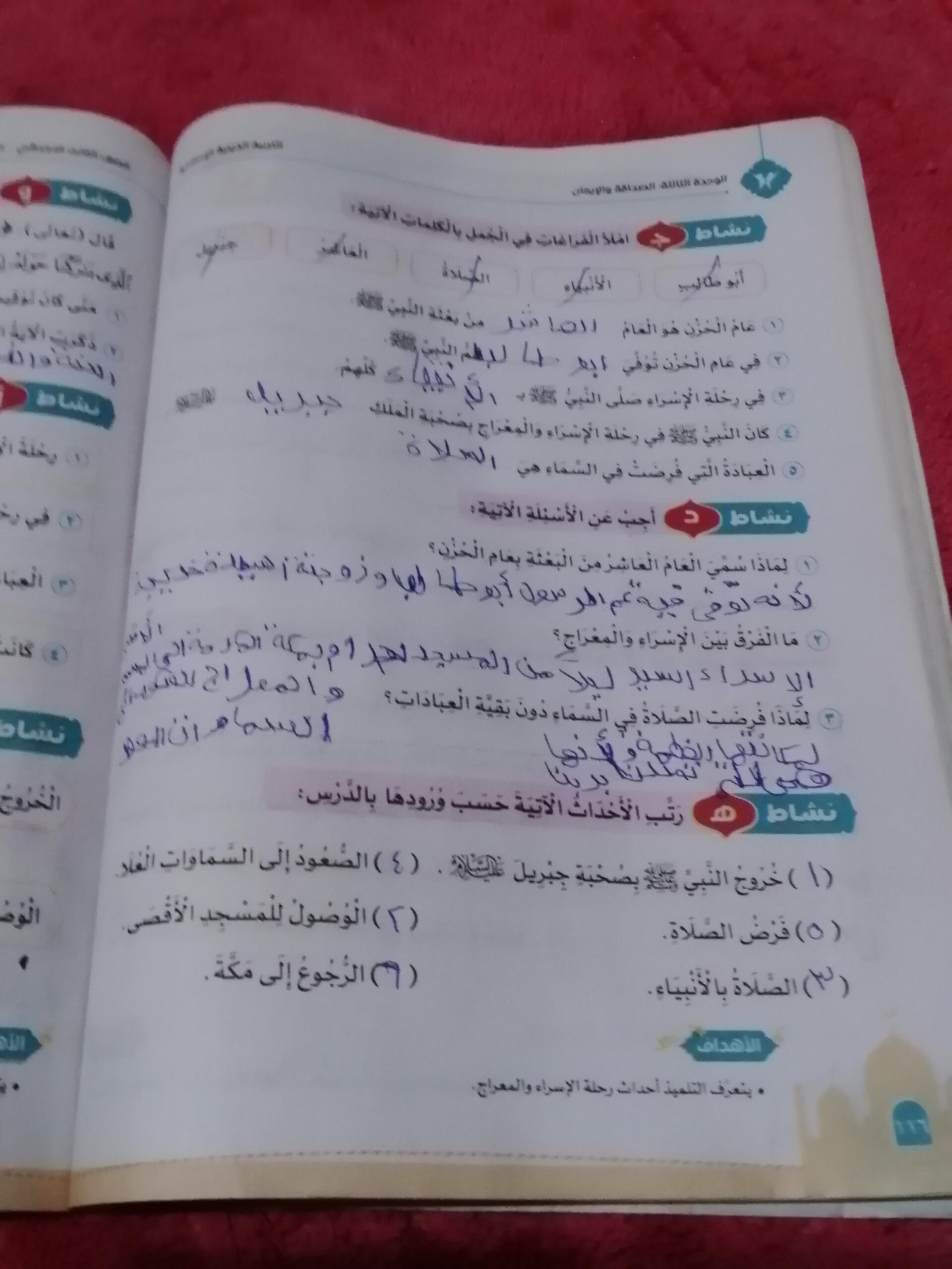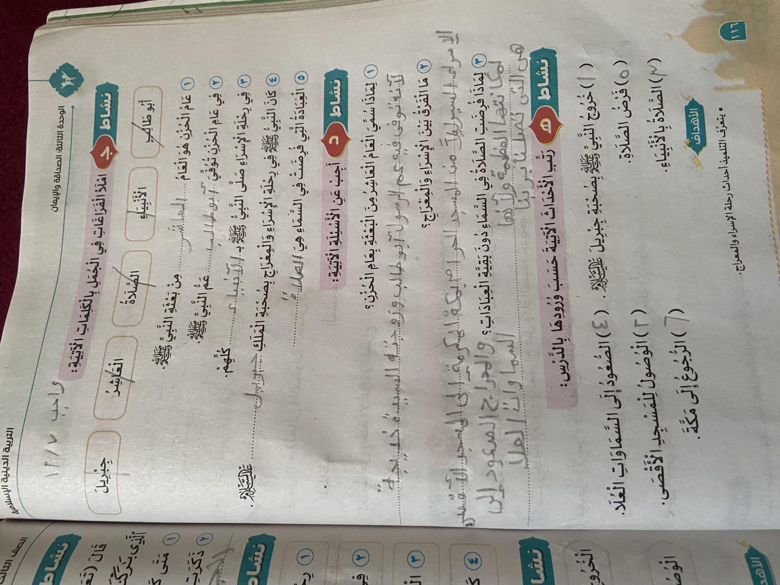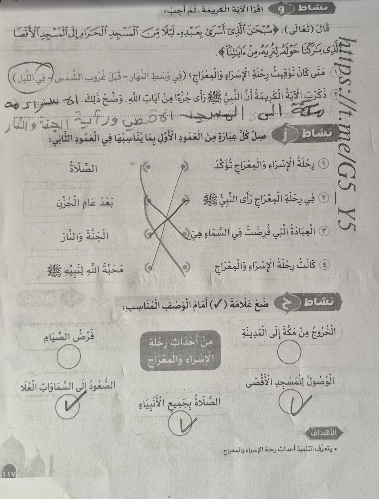 الدرس/ رحلة الاسراء والمعراج الواجب/ صفحة 116/117