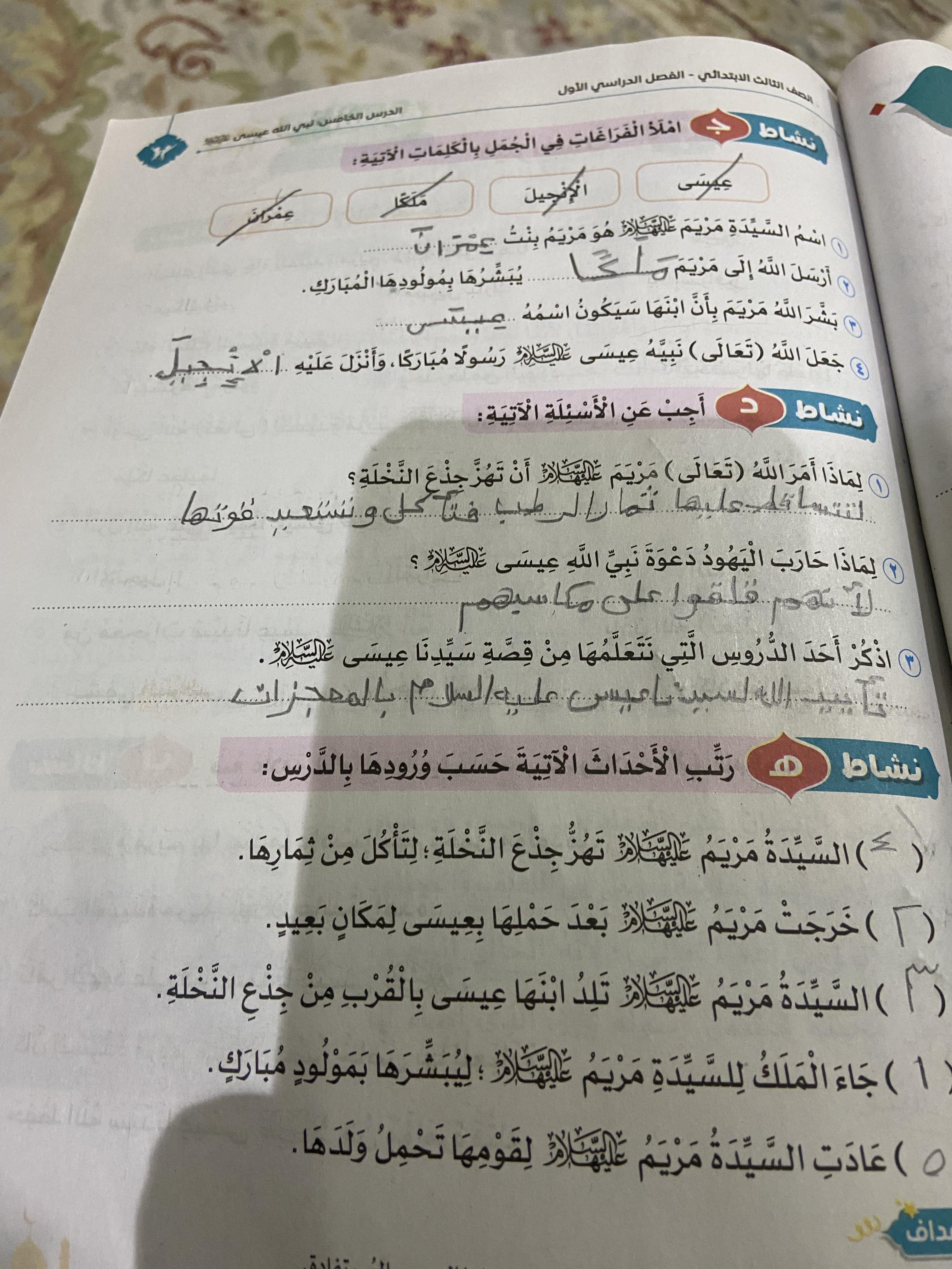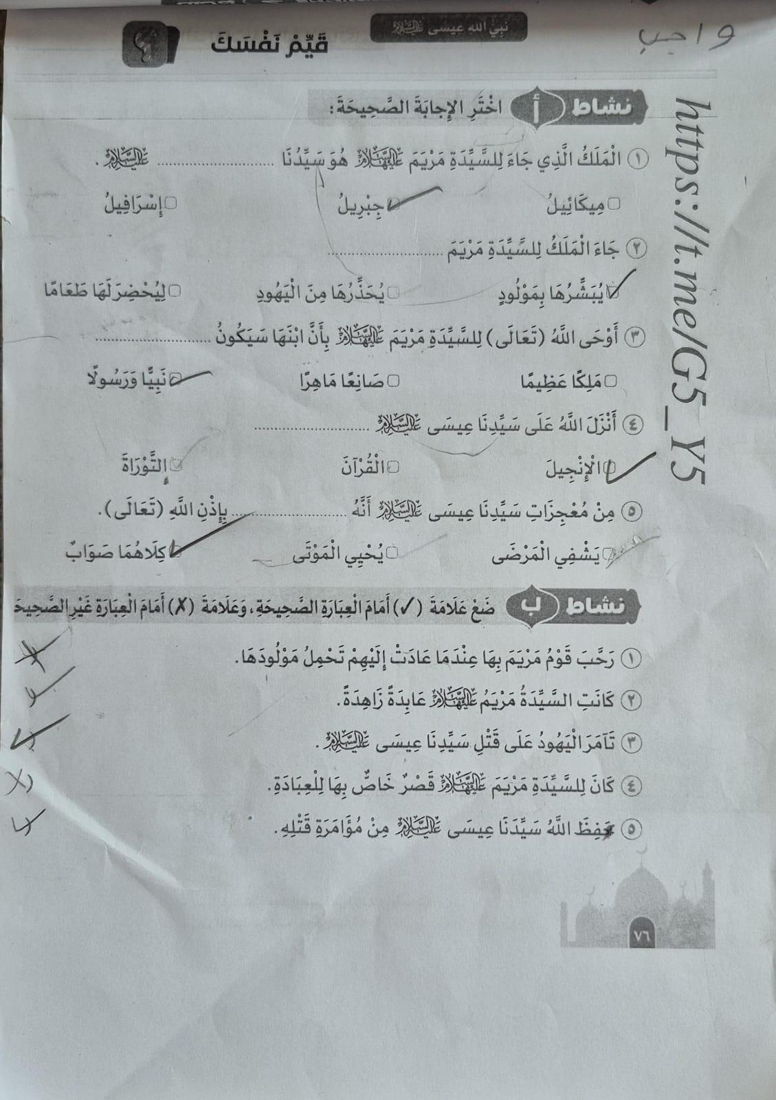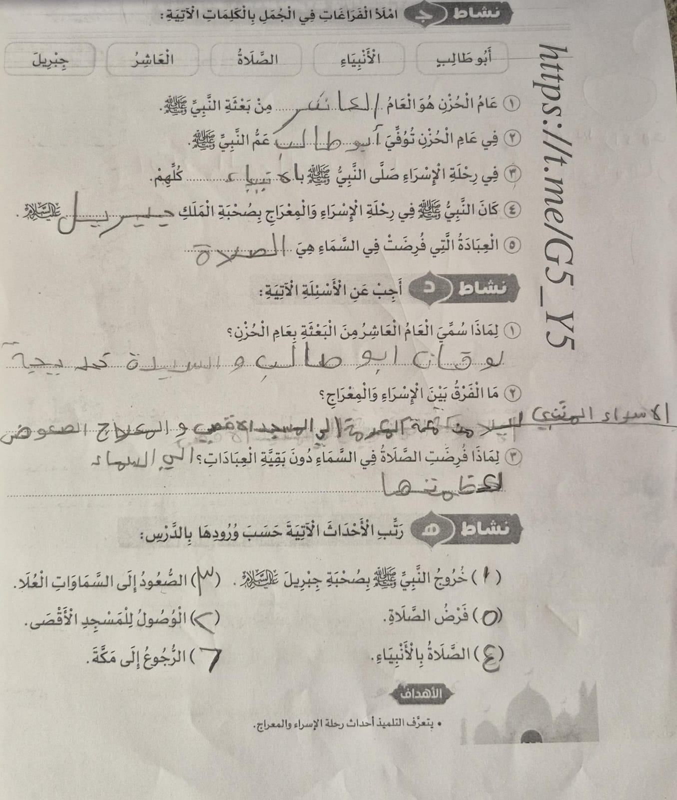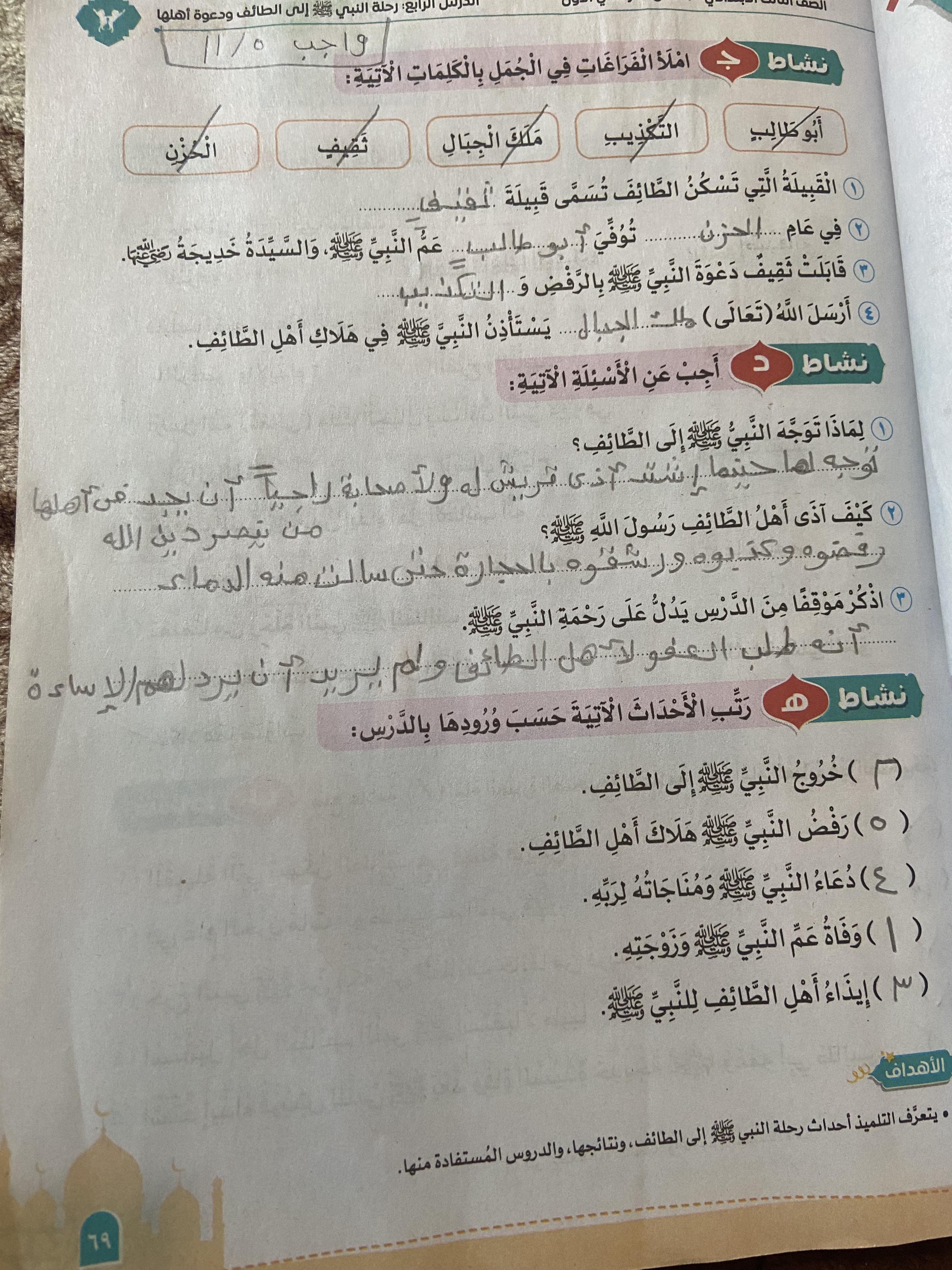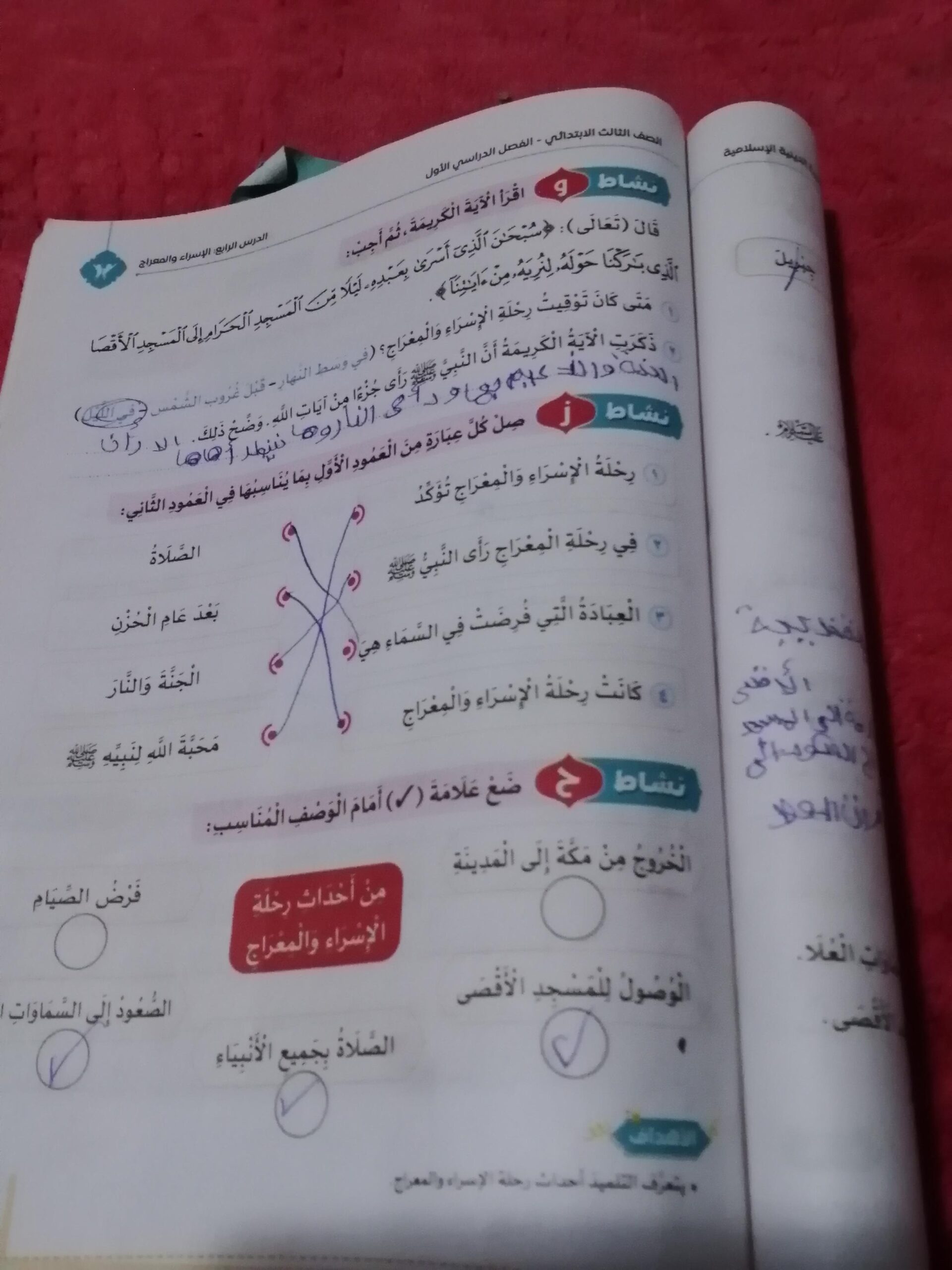 الدرس/ رحلة الاسراء والمعراج الواجب/ صفحة 116/117