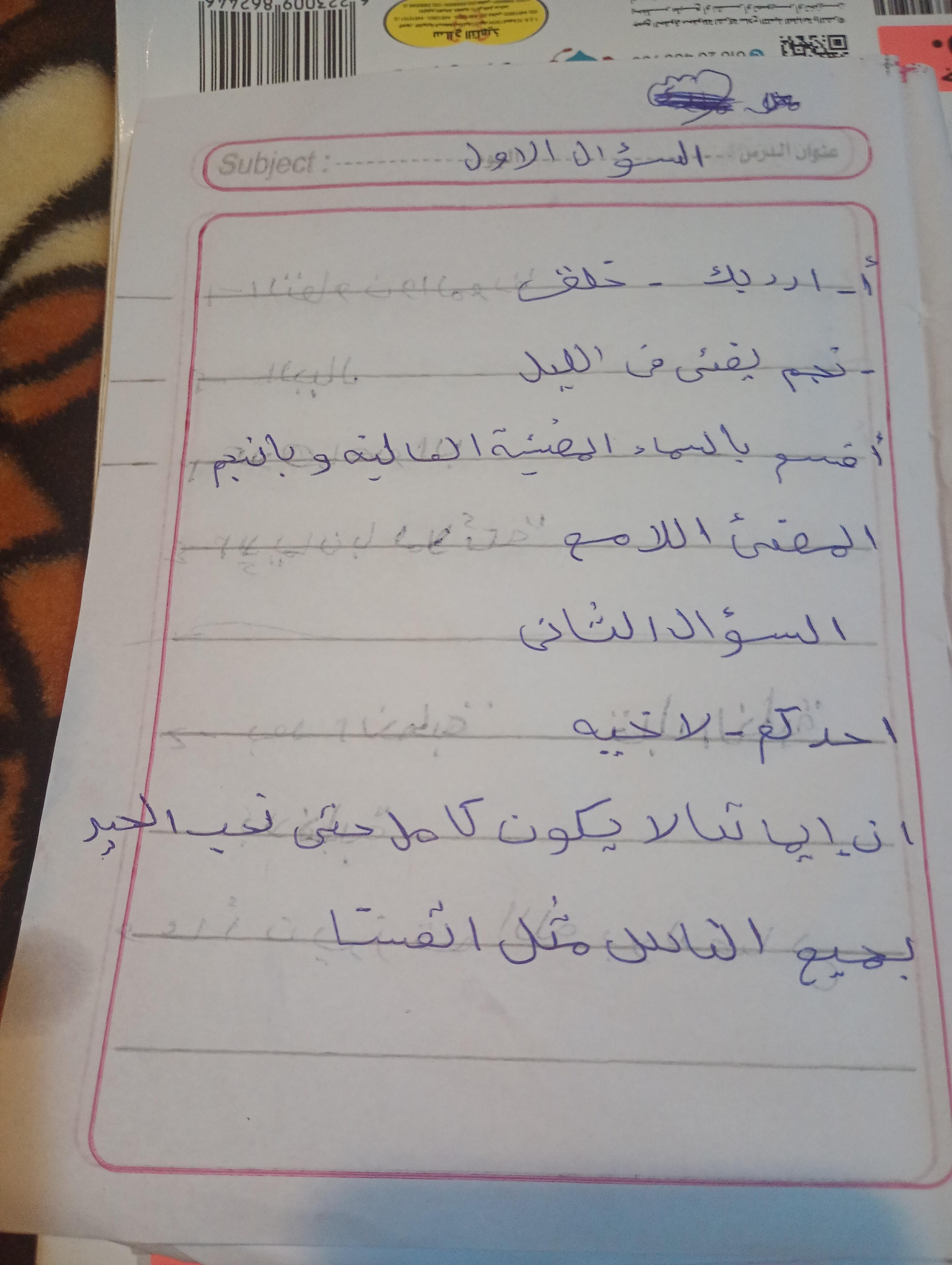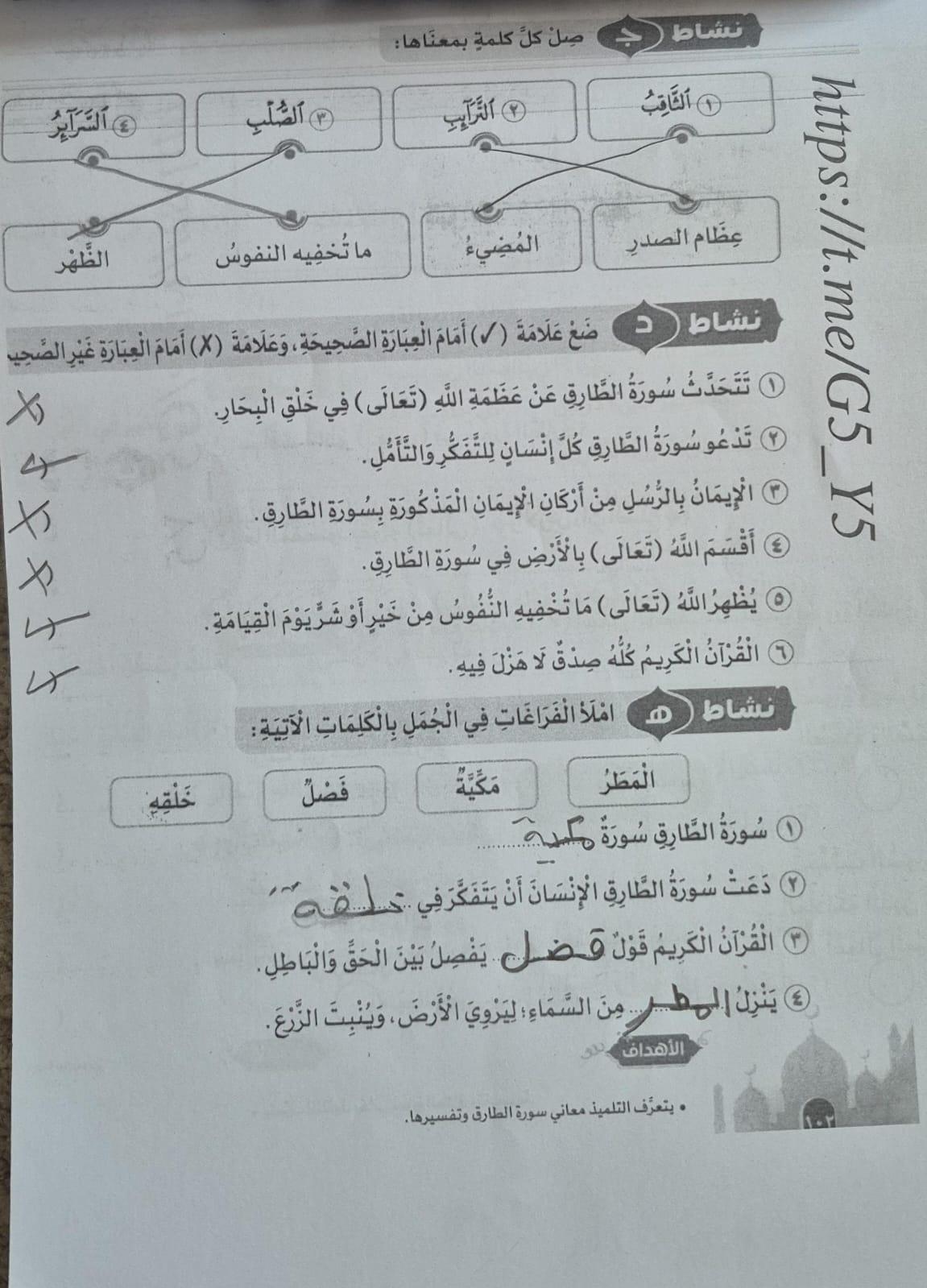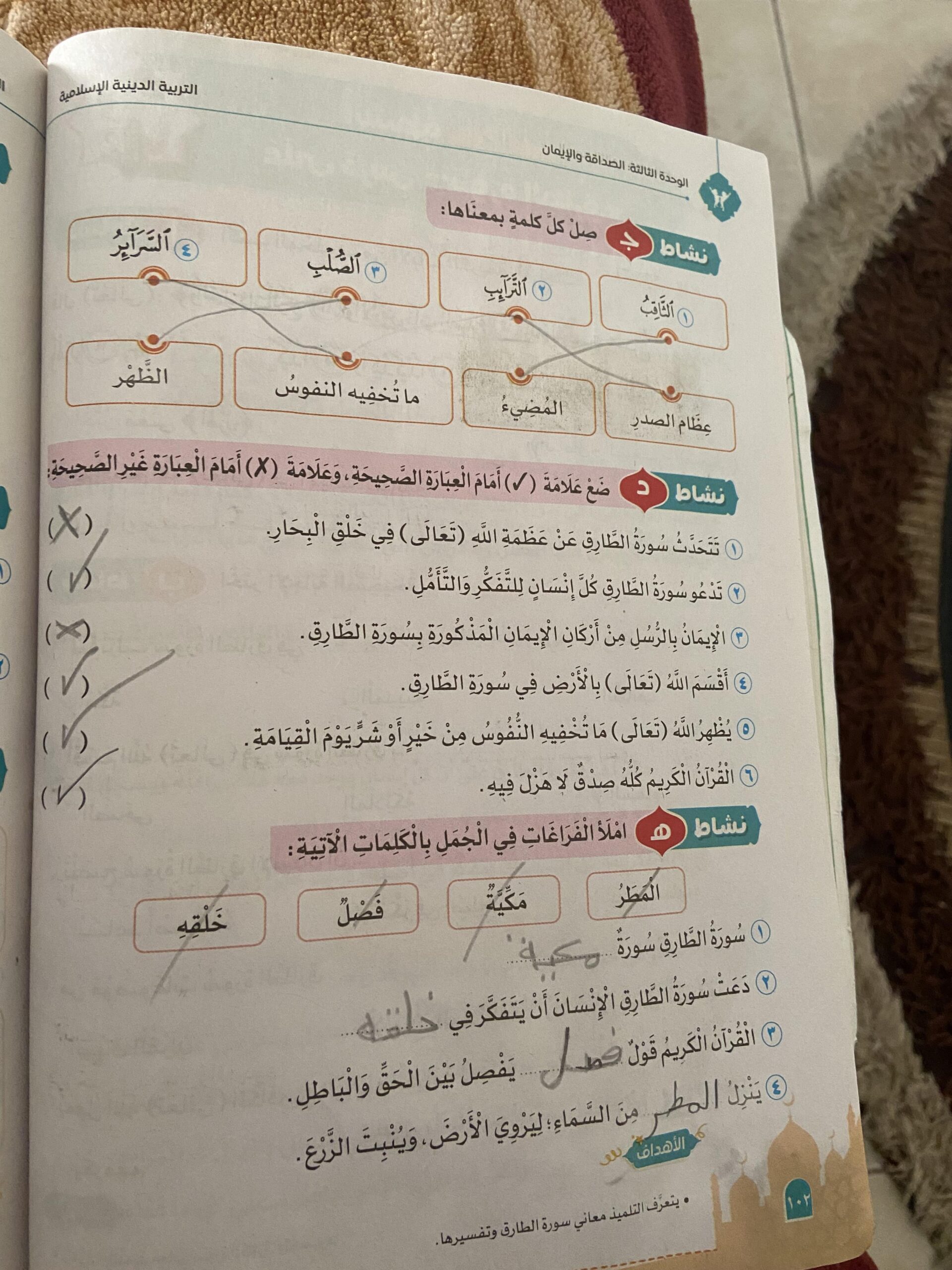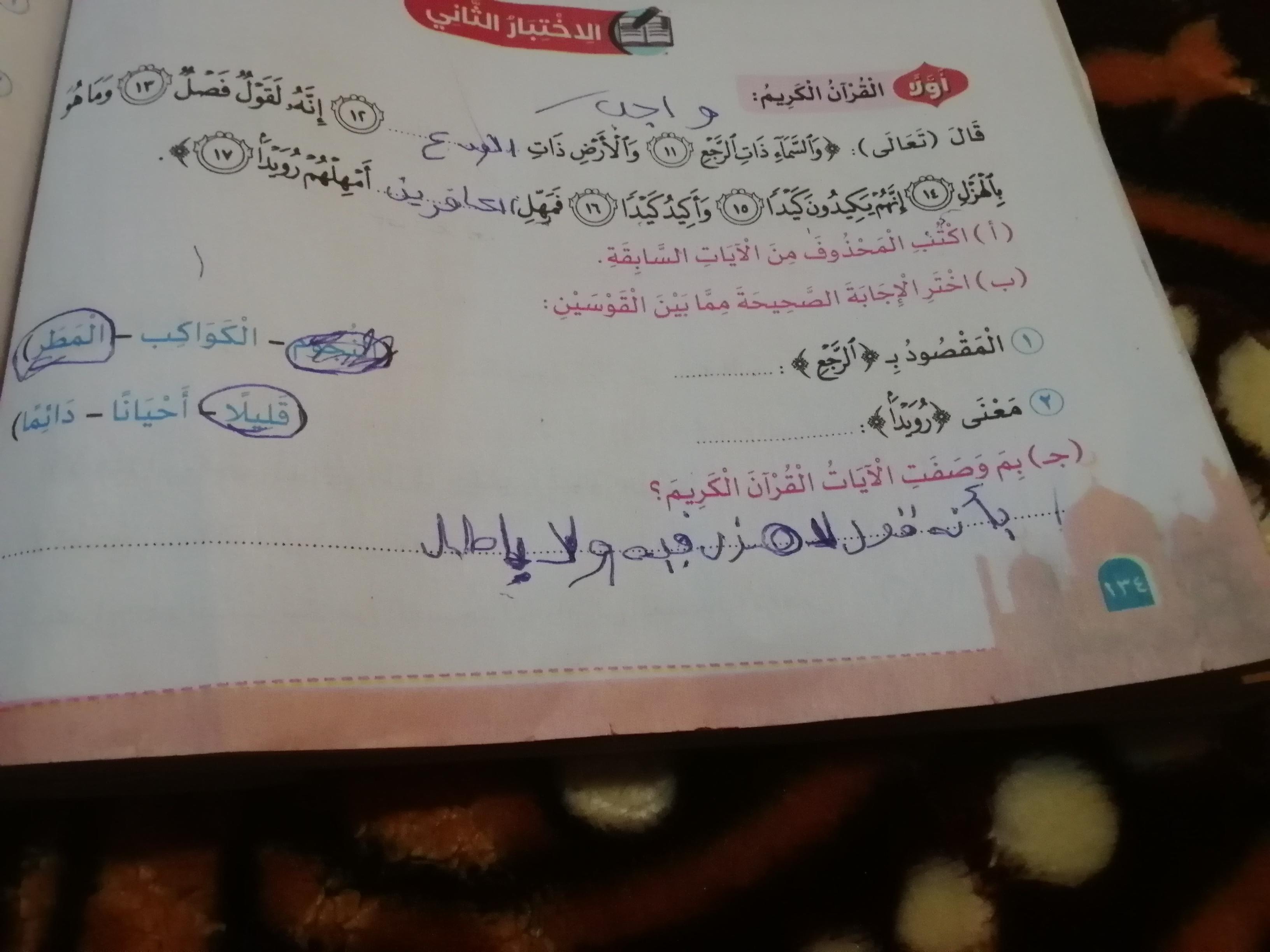 الواجب/ مذاكرة الدرس جيدا وحفظ سورة الطارق