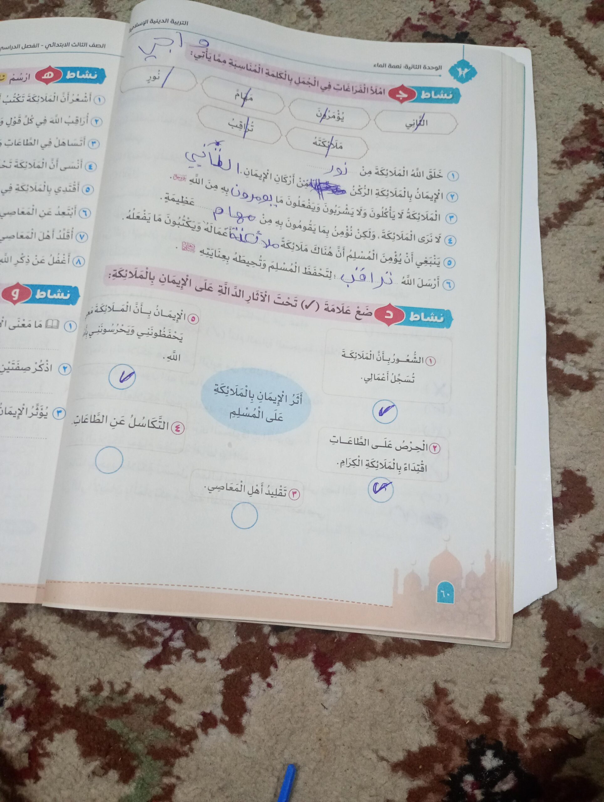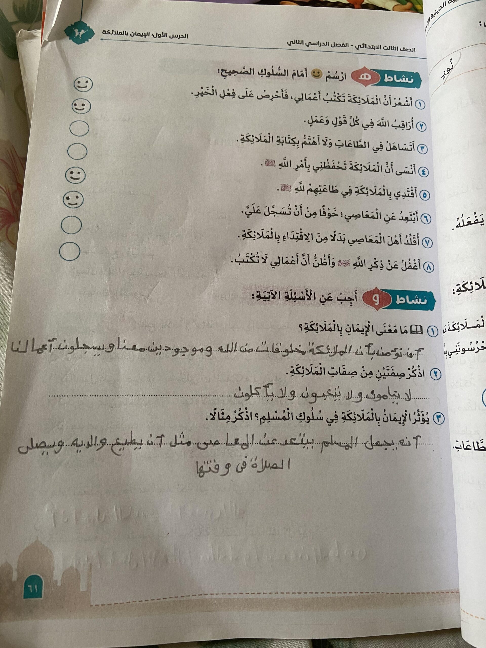 الدرس / الإيمان بالملائكة الواجب /صفحة ٦٠ و٦١