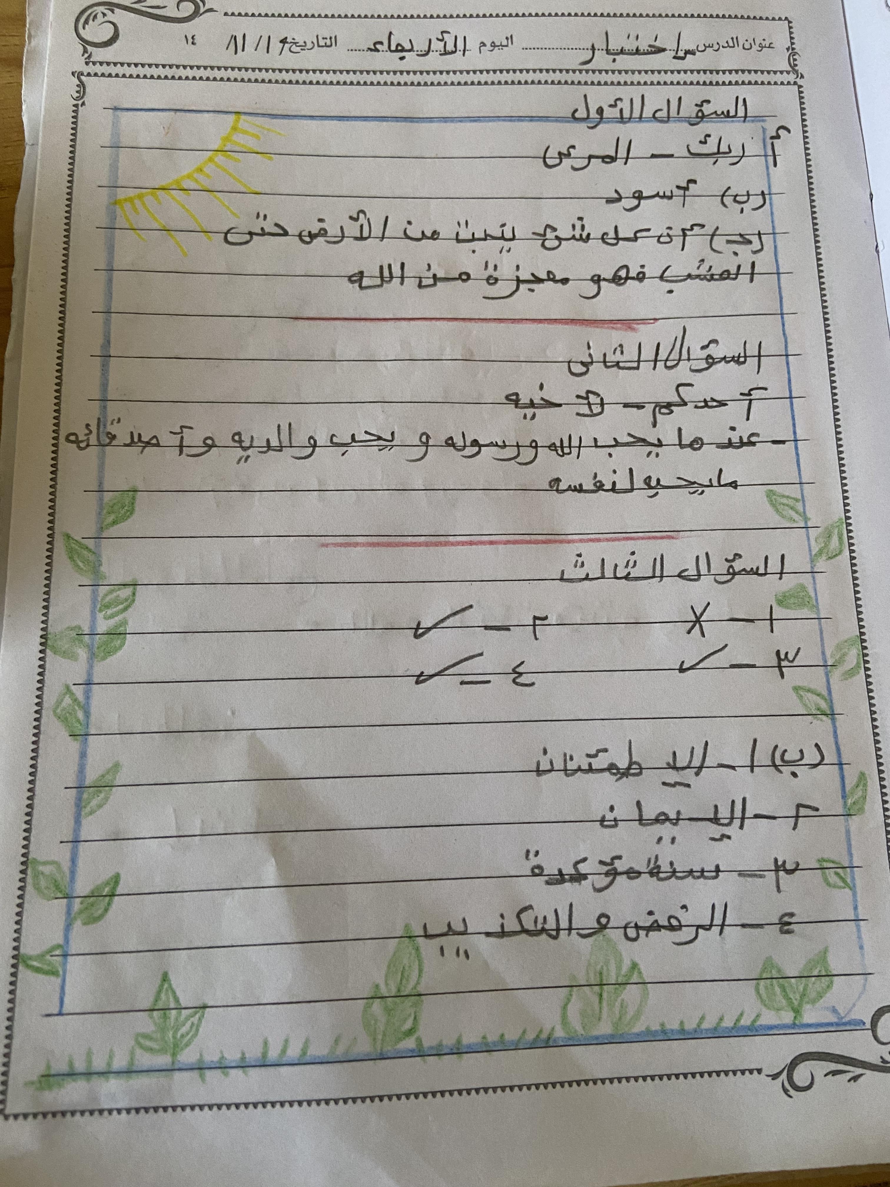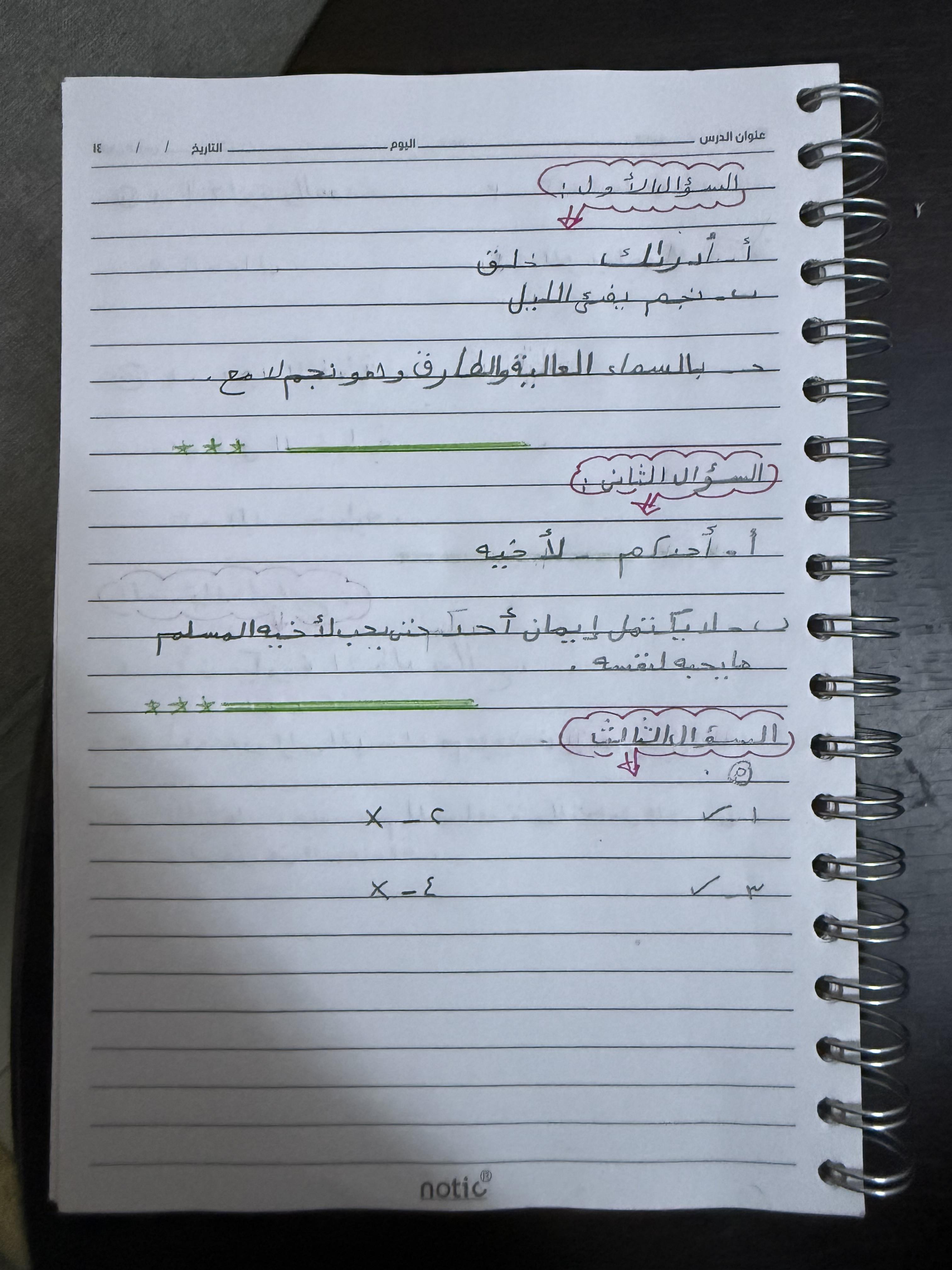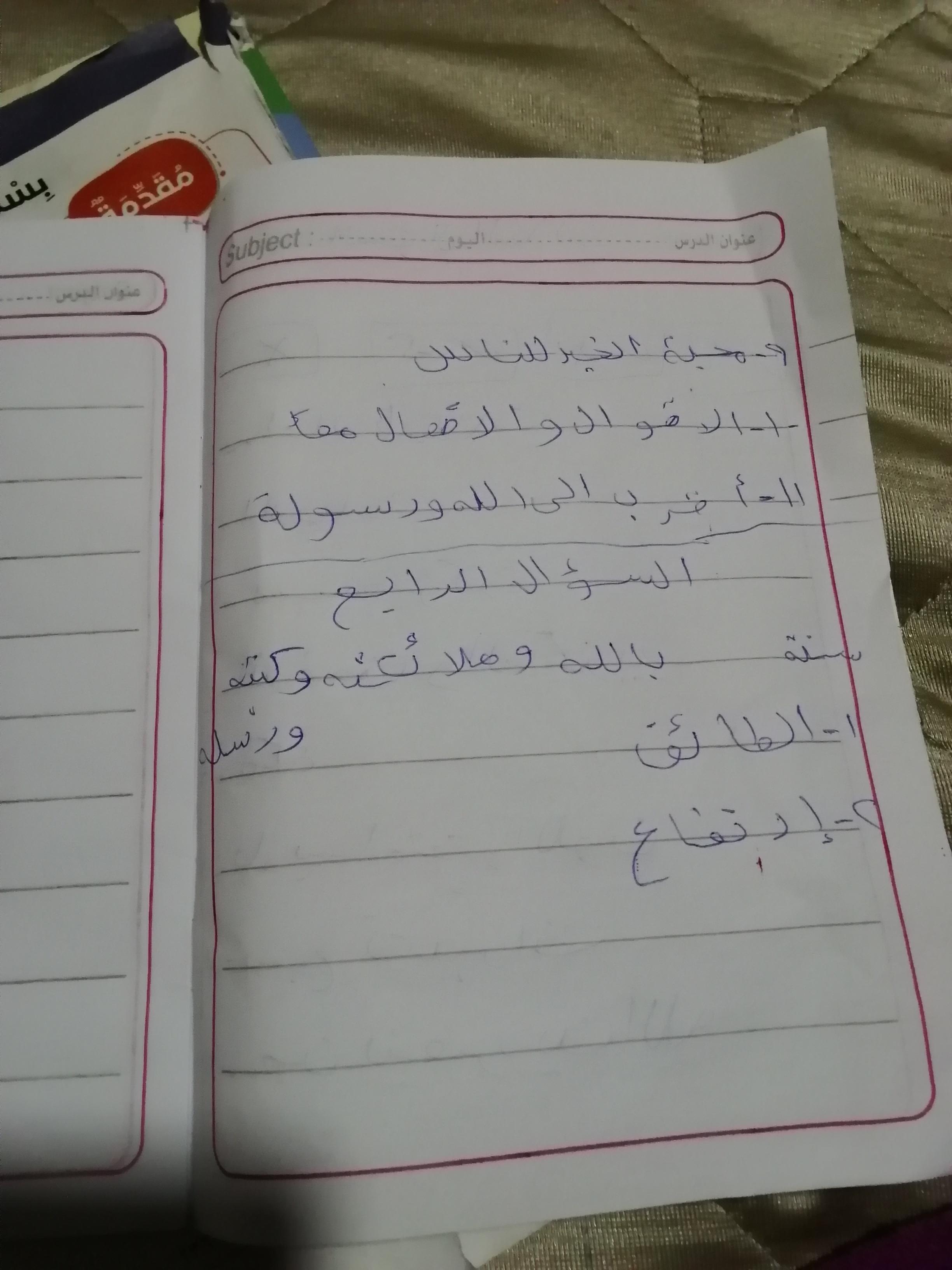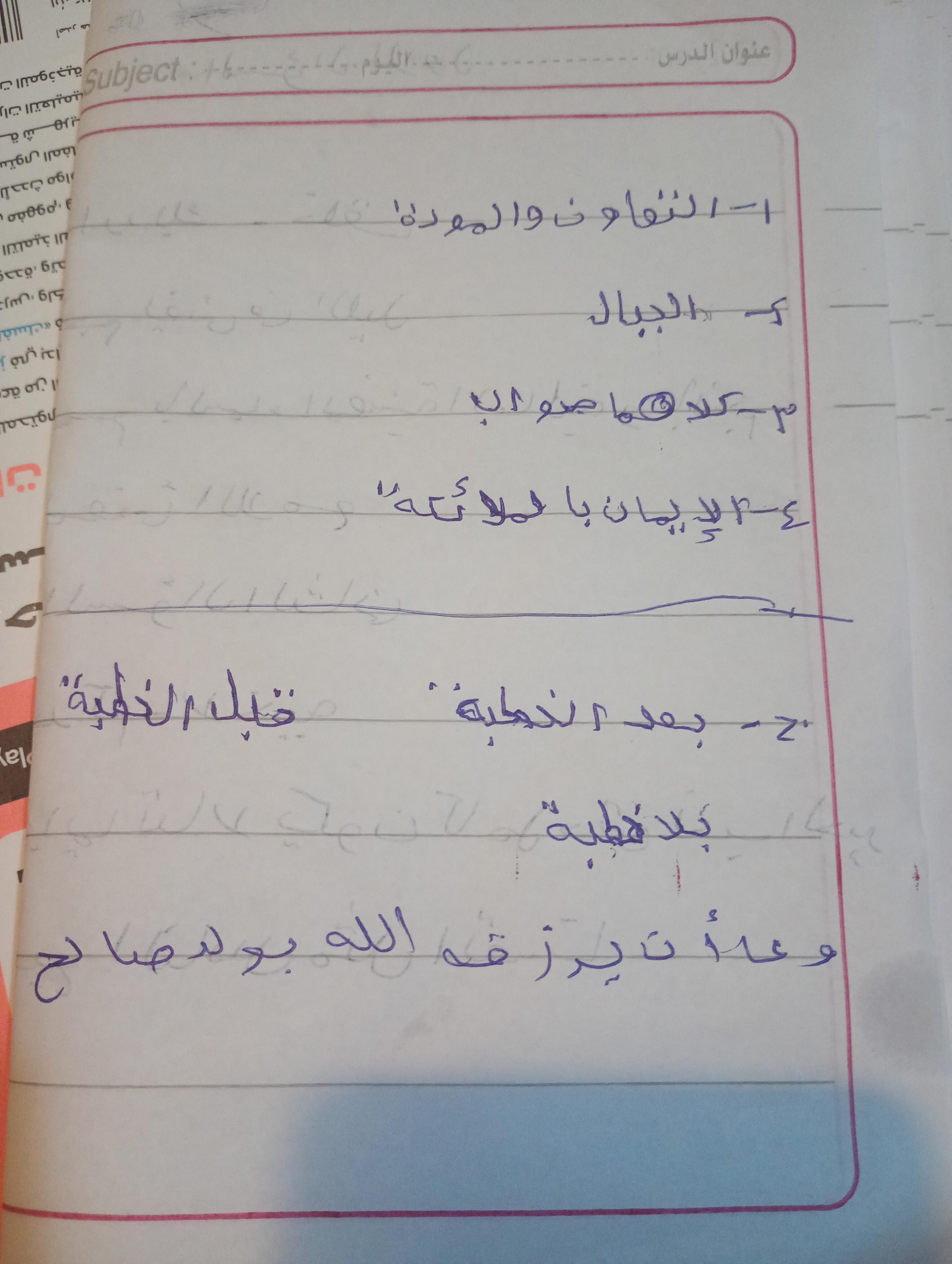 الدرس/ تم مراجعة درس الصداقة وحل تدريبات الواجب/ مذاكرة الدرس جيدا وحفظ سورة الطارق