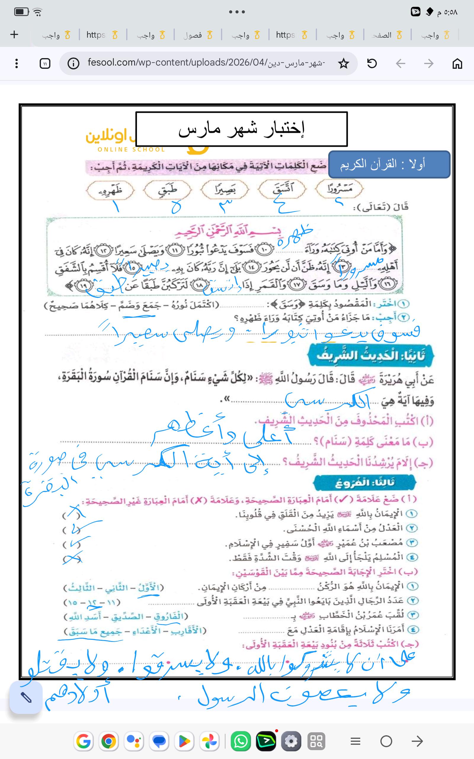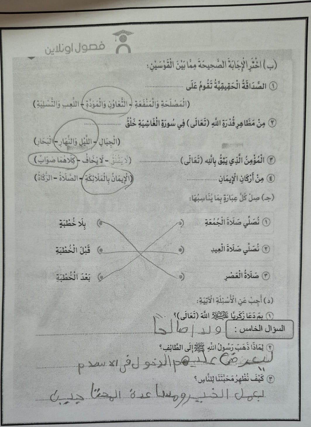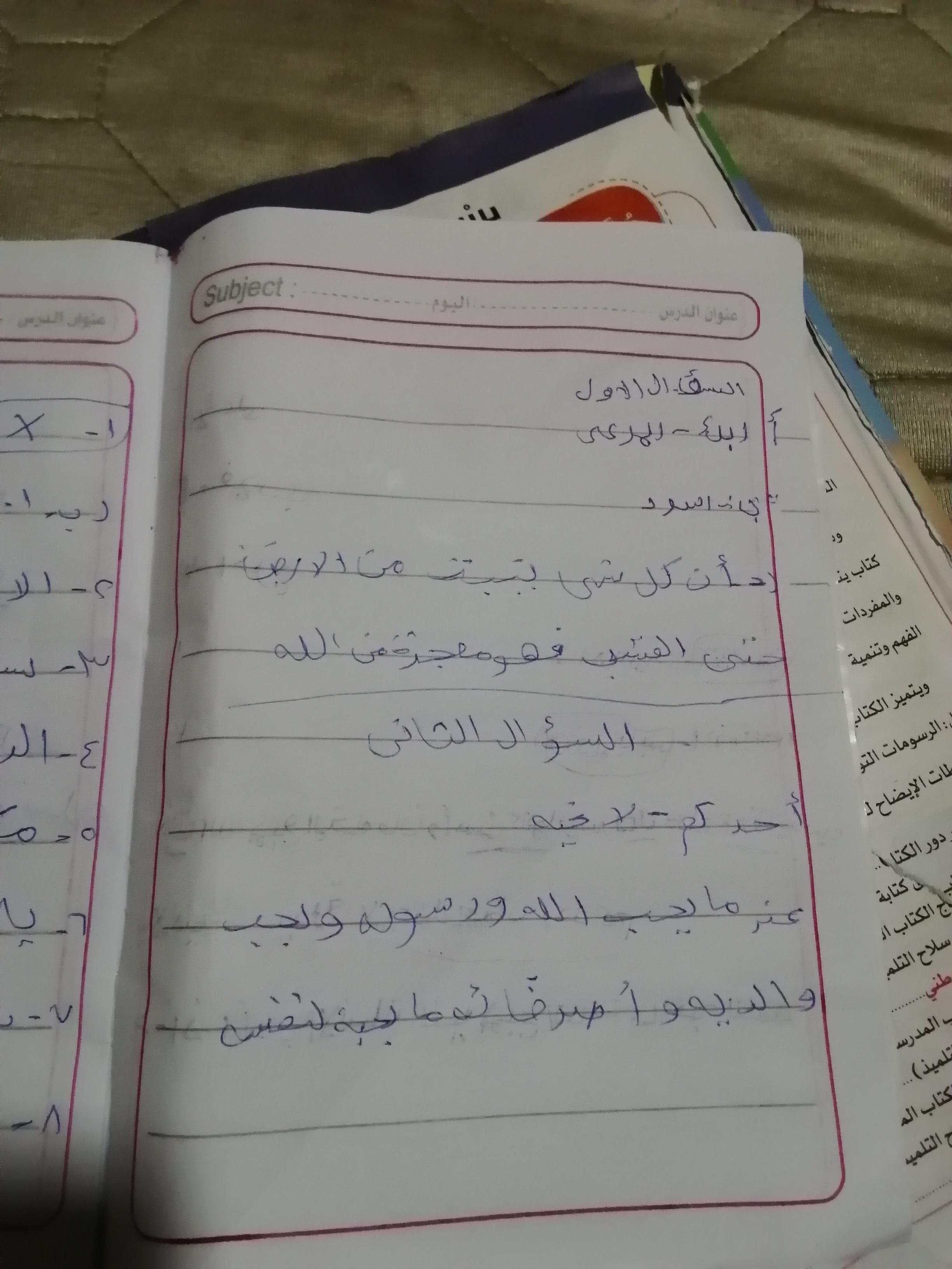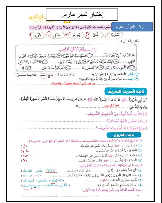 الدرس/ تم مراجعة درس الصداقة وحل تدريبات الواجب/ مذاكرة الدرس جيدا وحفظ سورة الطارق