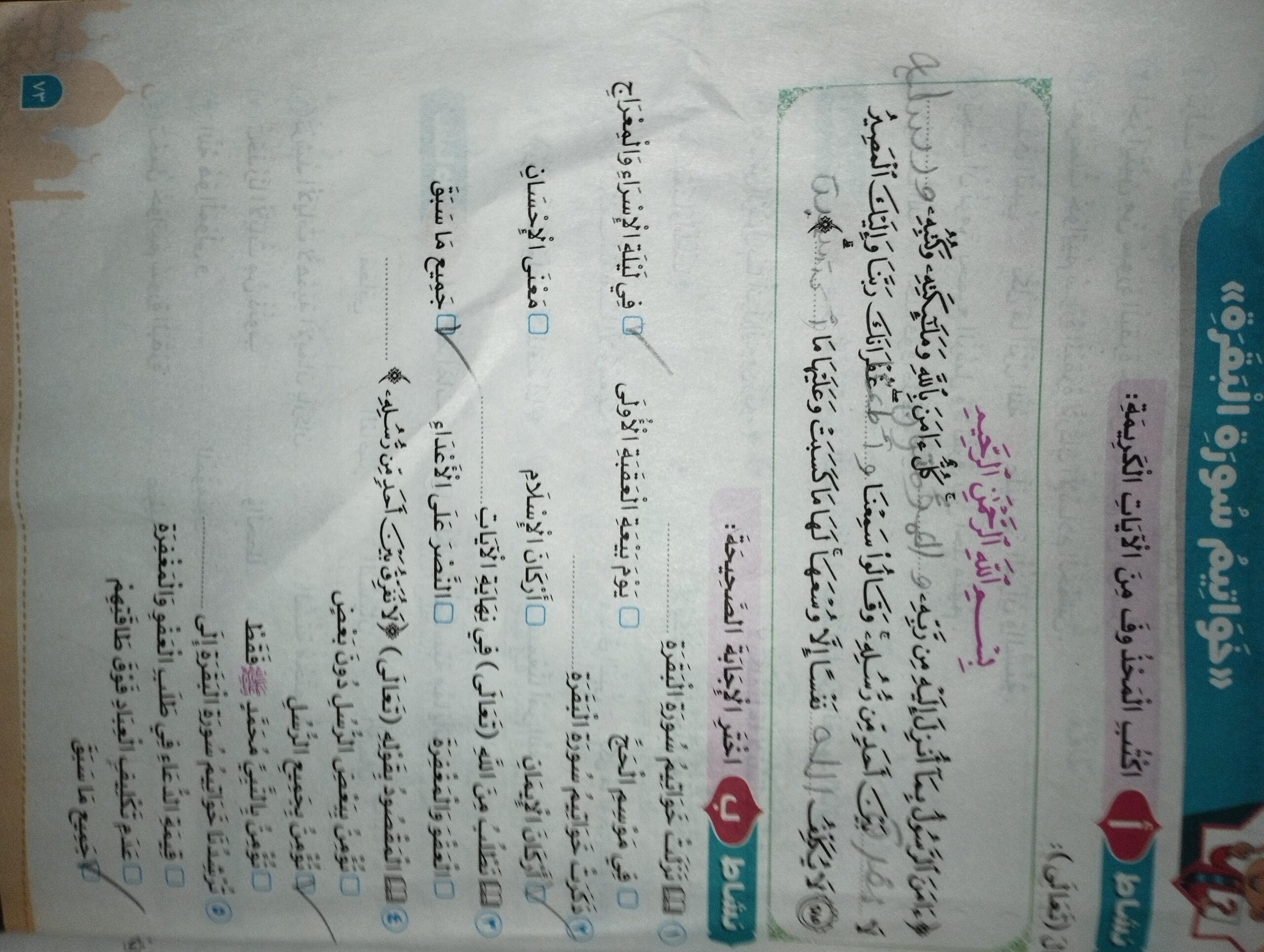 الواجب تدريبات الدرسين+ حفظ السورة والمعاني