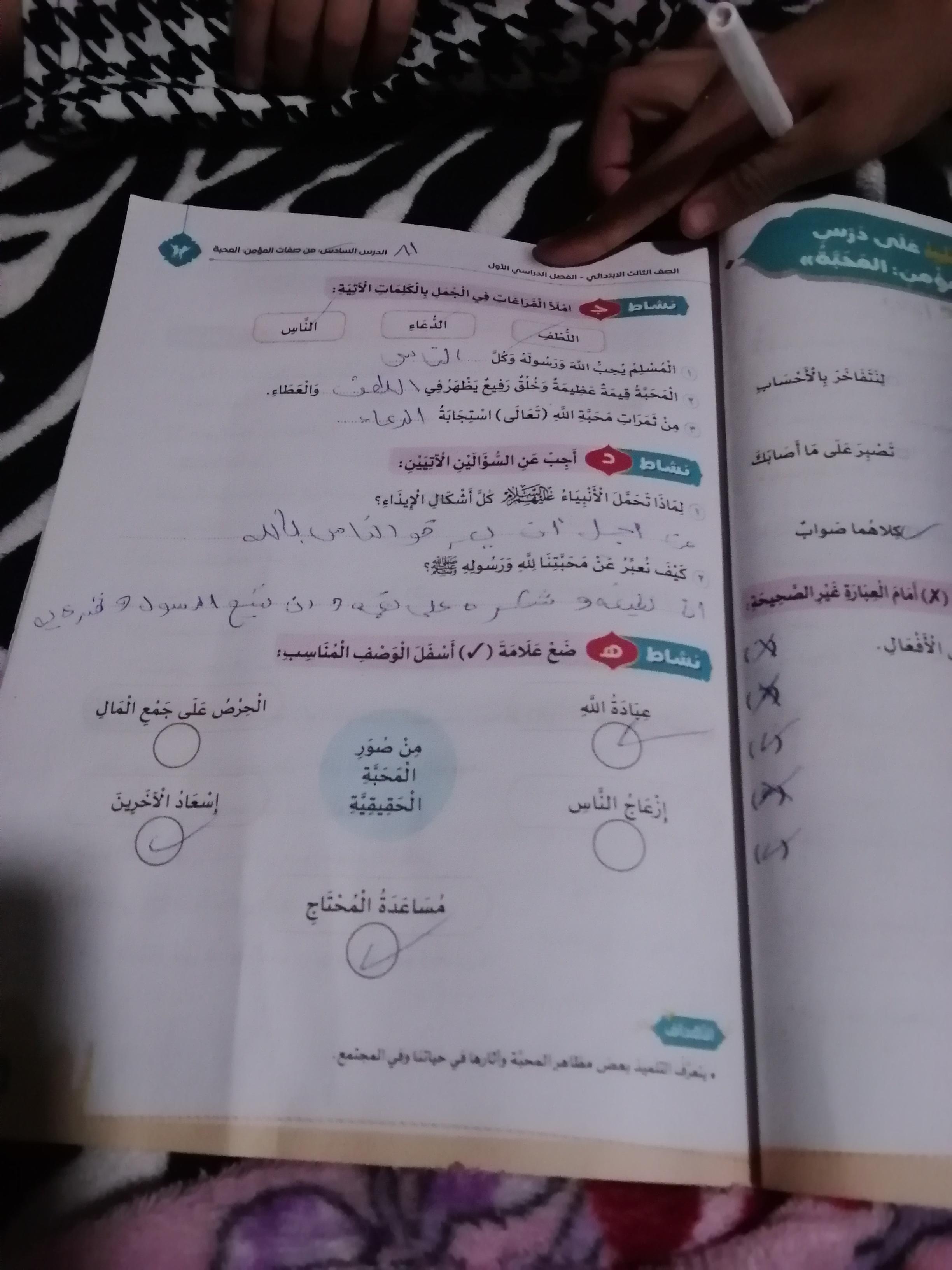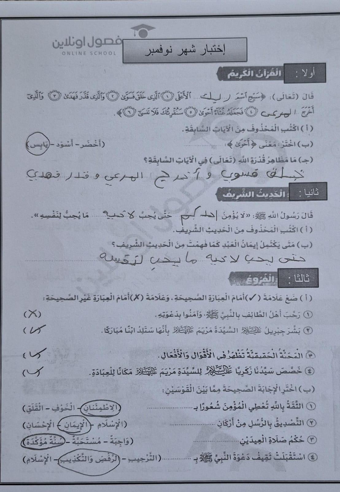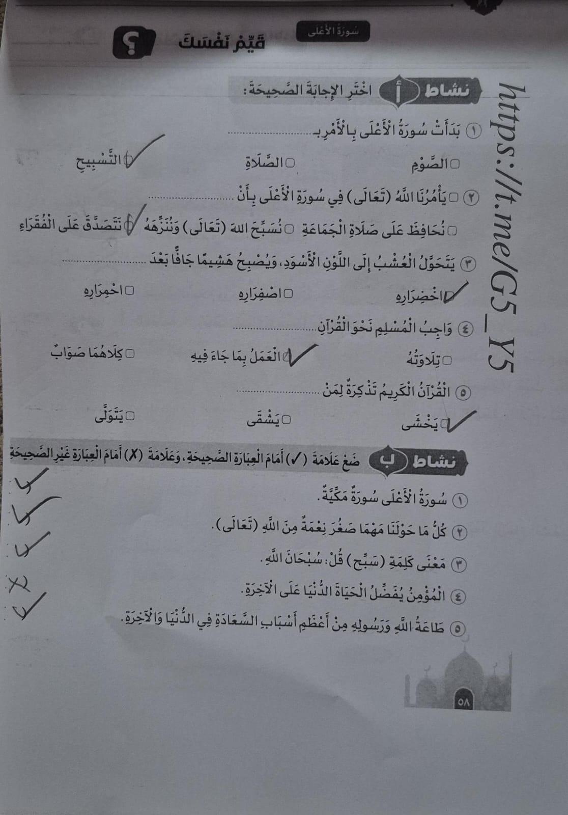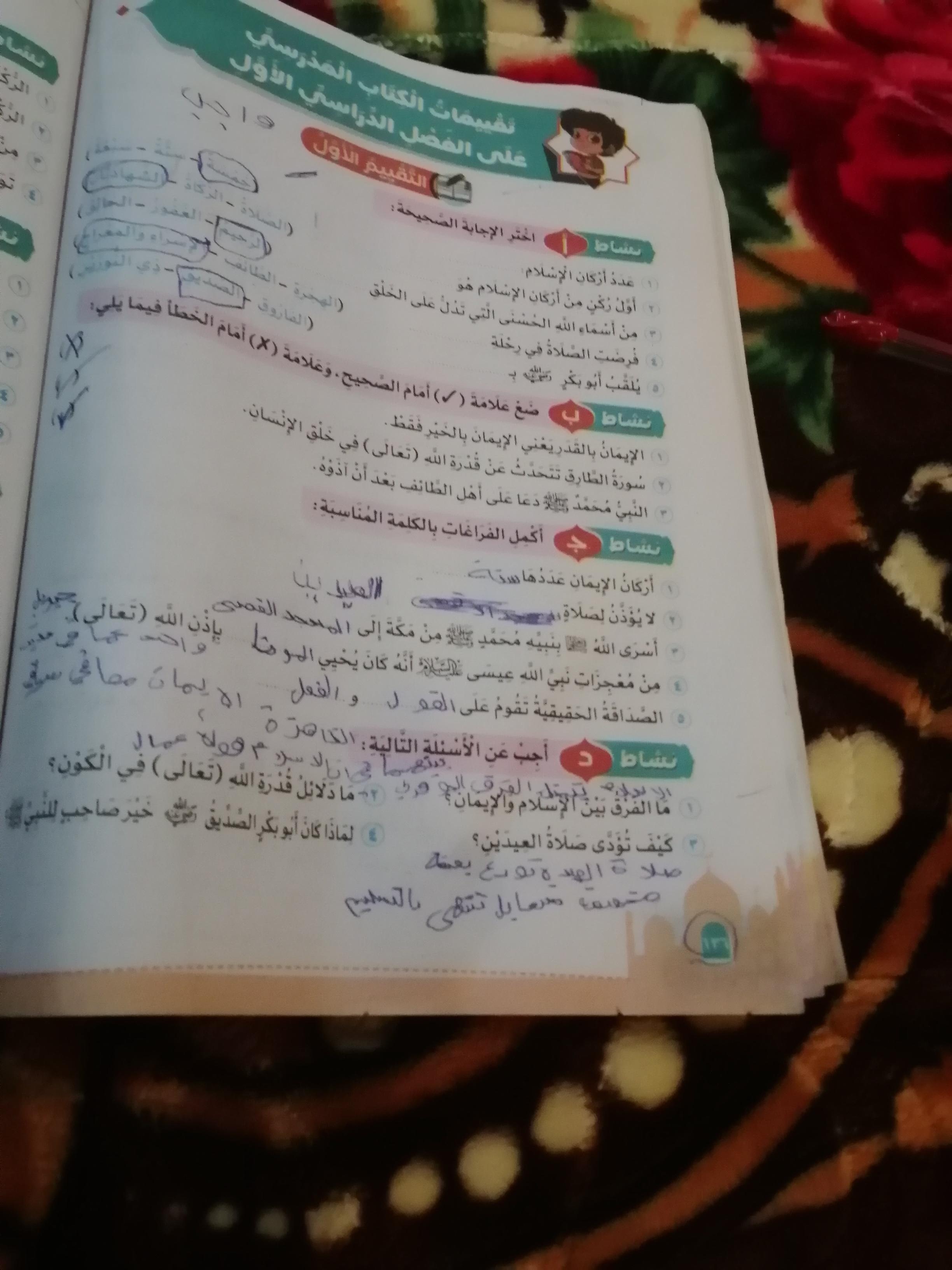 الواجب / أجب ( سورة الأعلي تتحدث عن تسبيح الله تعالي ونعمة في خلق ……………. و…………. ) + حل من صفحة 138 إلي 141