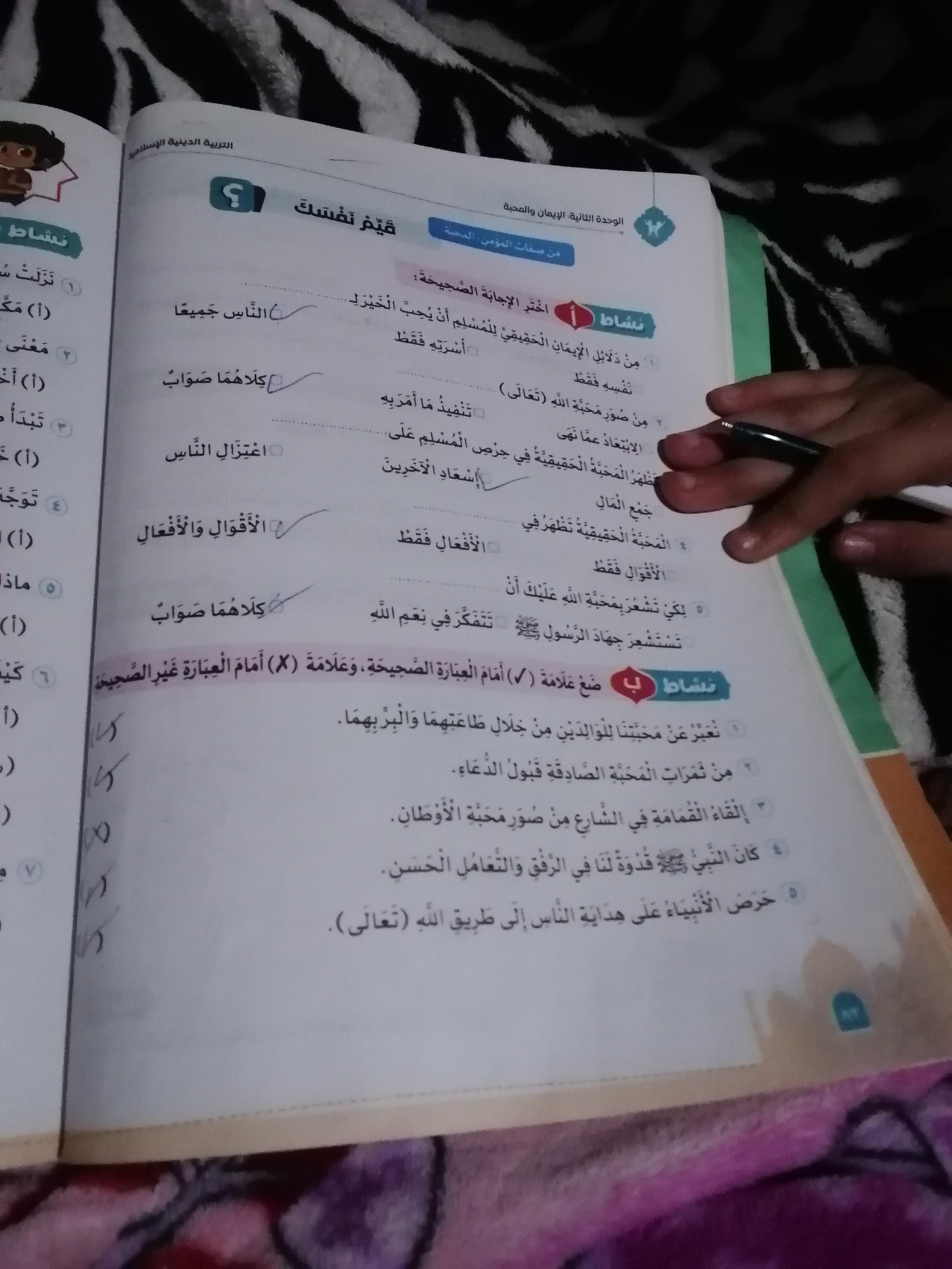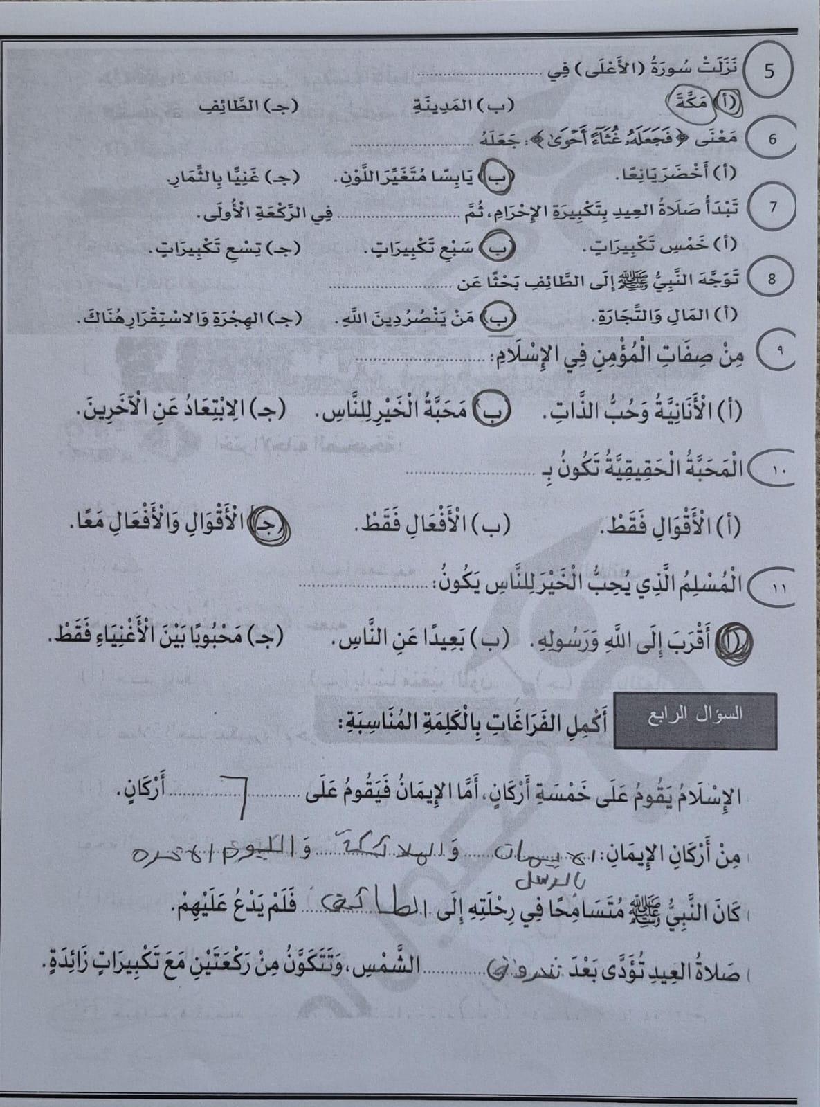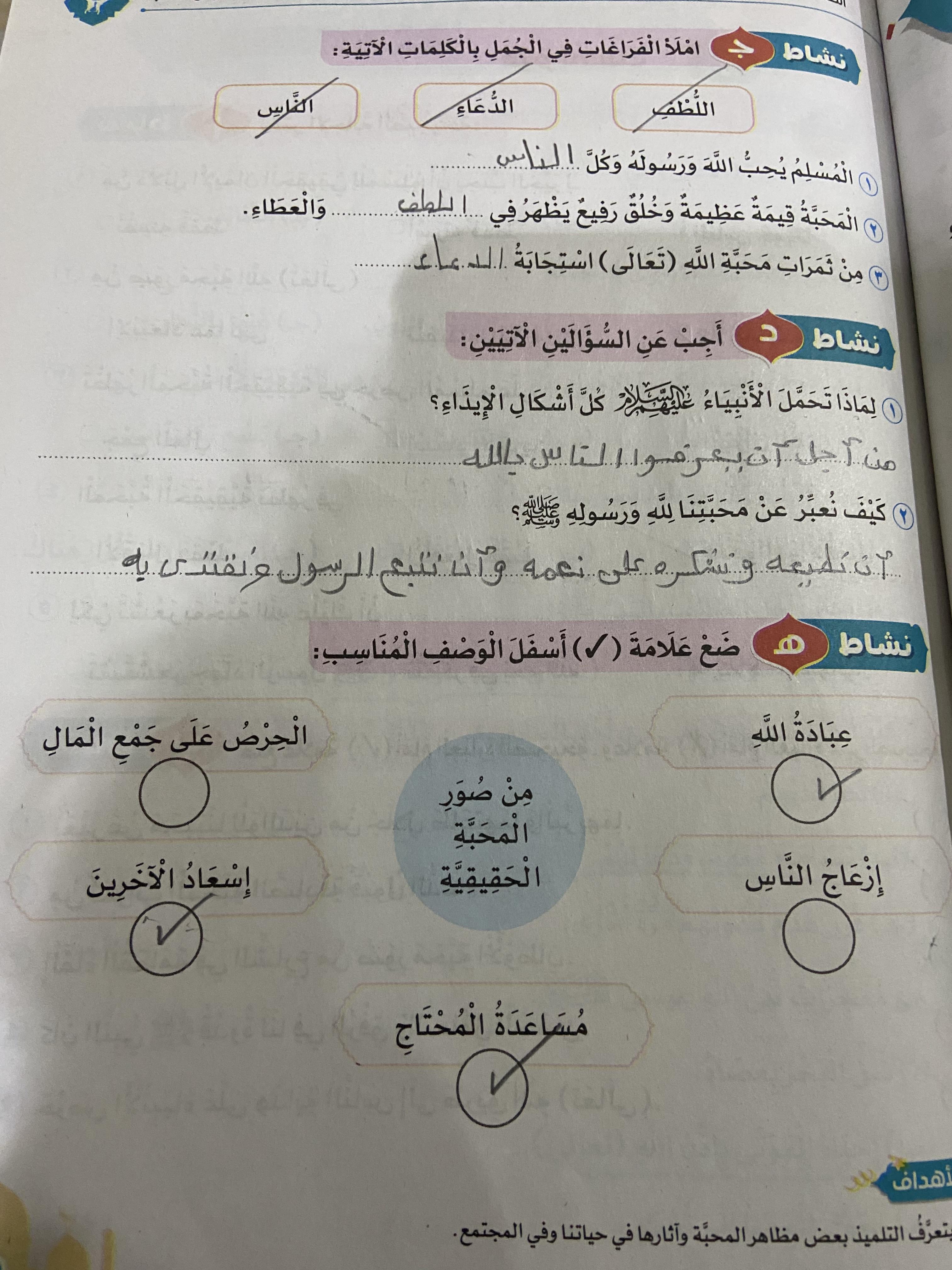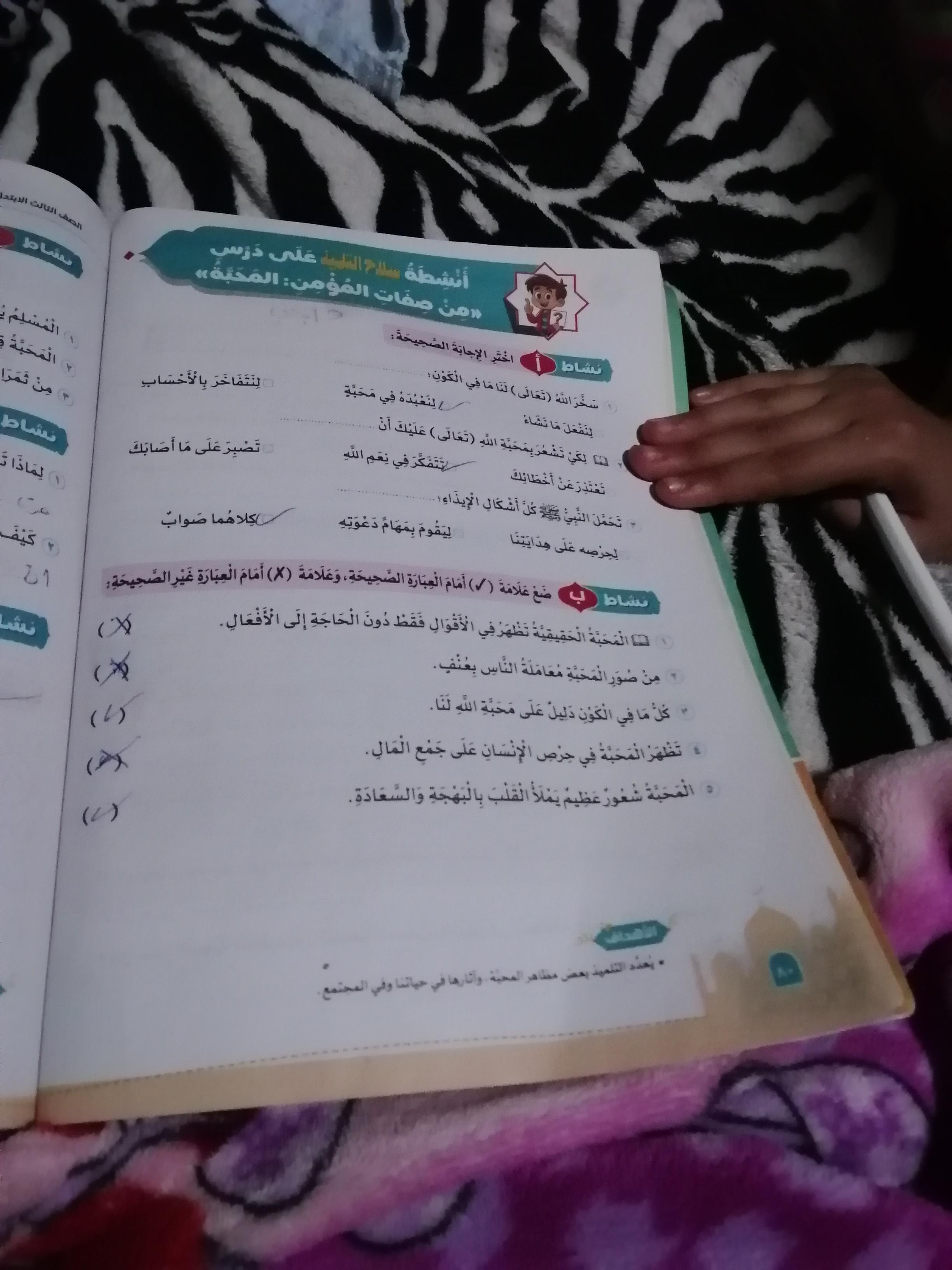 الواجب / أجب ( سورة الأعلي تتحدث عن تسبيح الله تعالي ونعمة في خلق ……………. و…………. ) + حل من صفحة 138 إلي 141