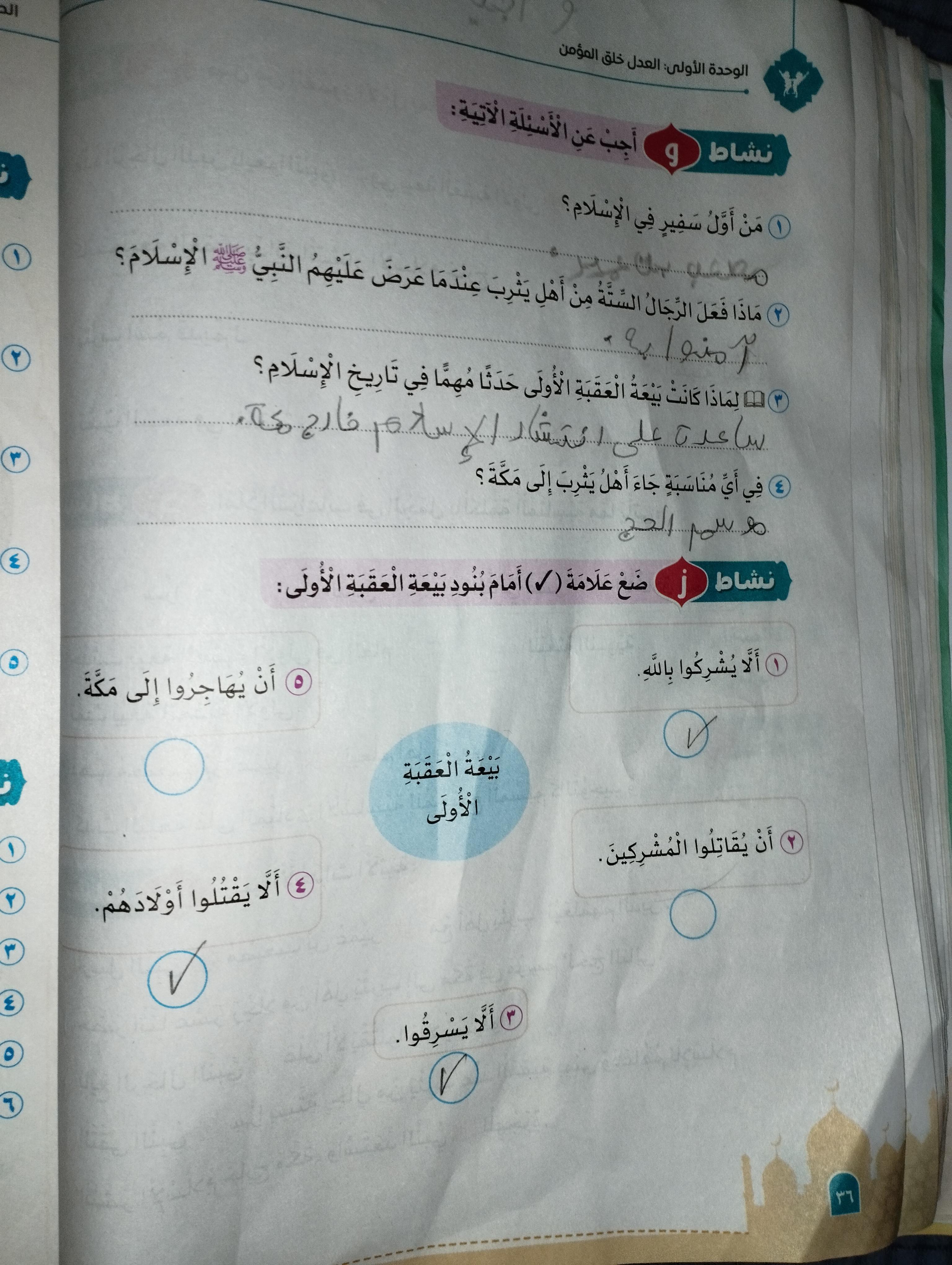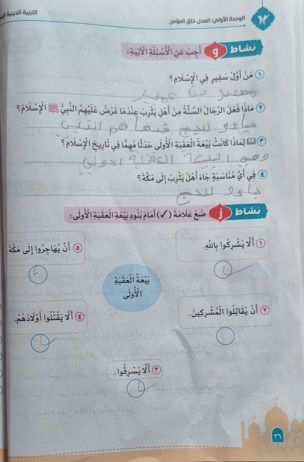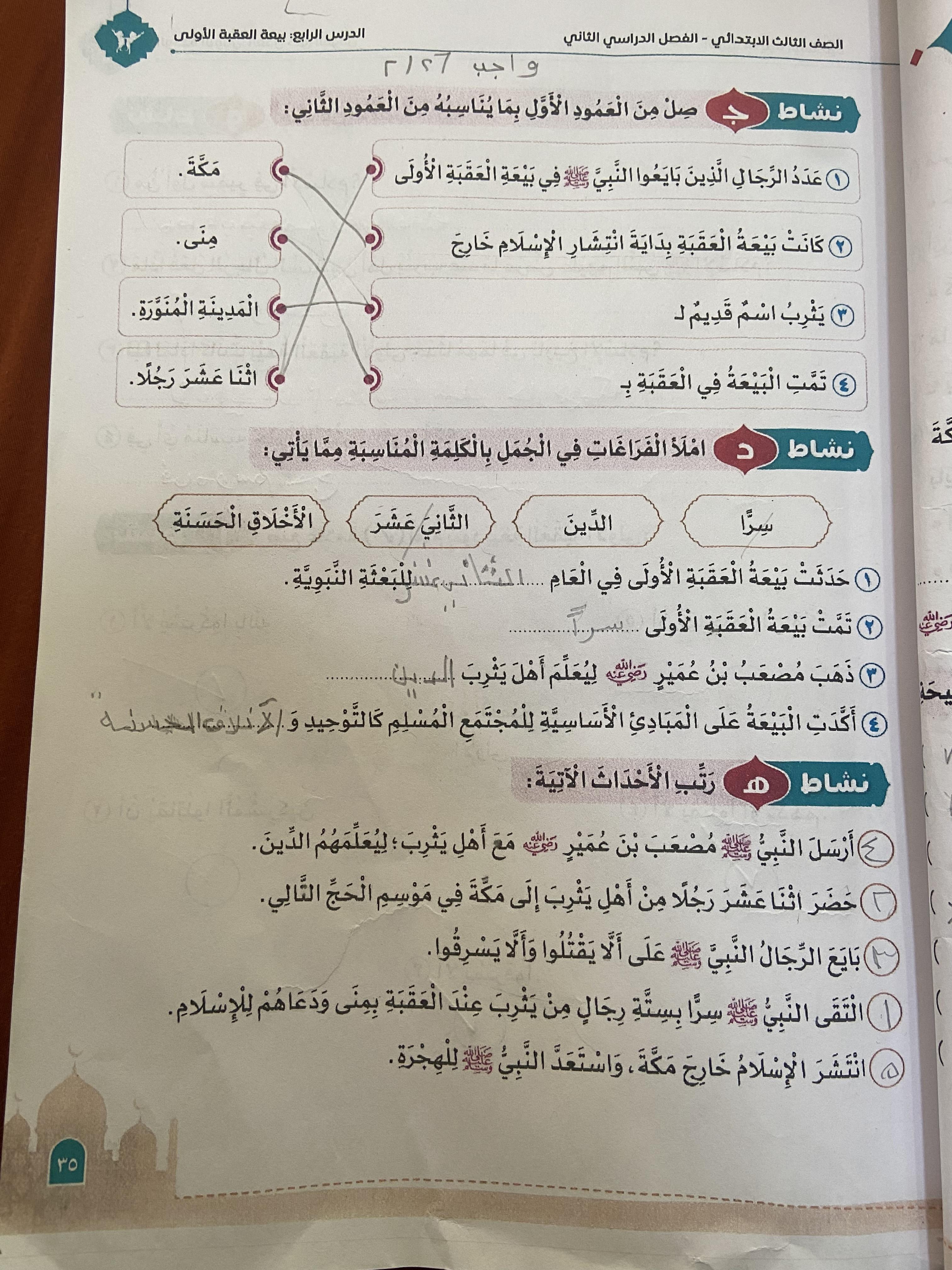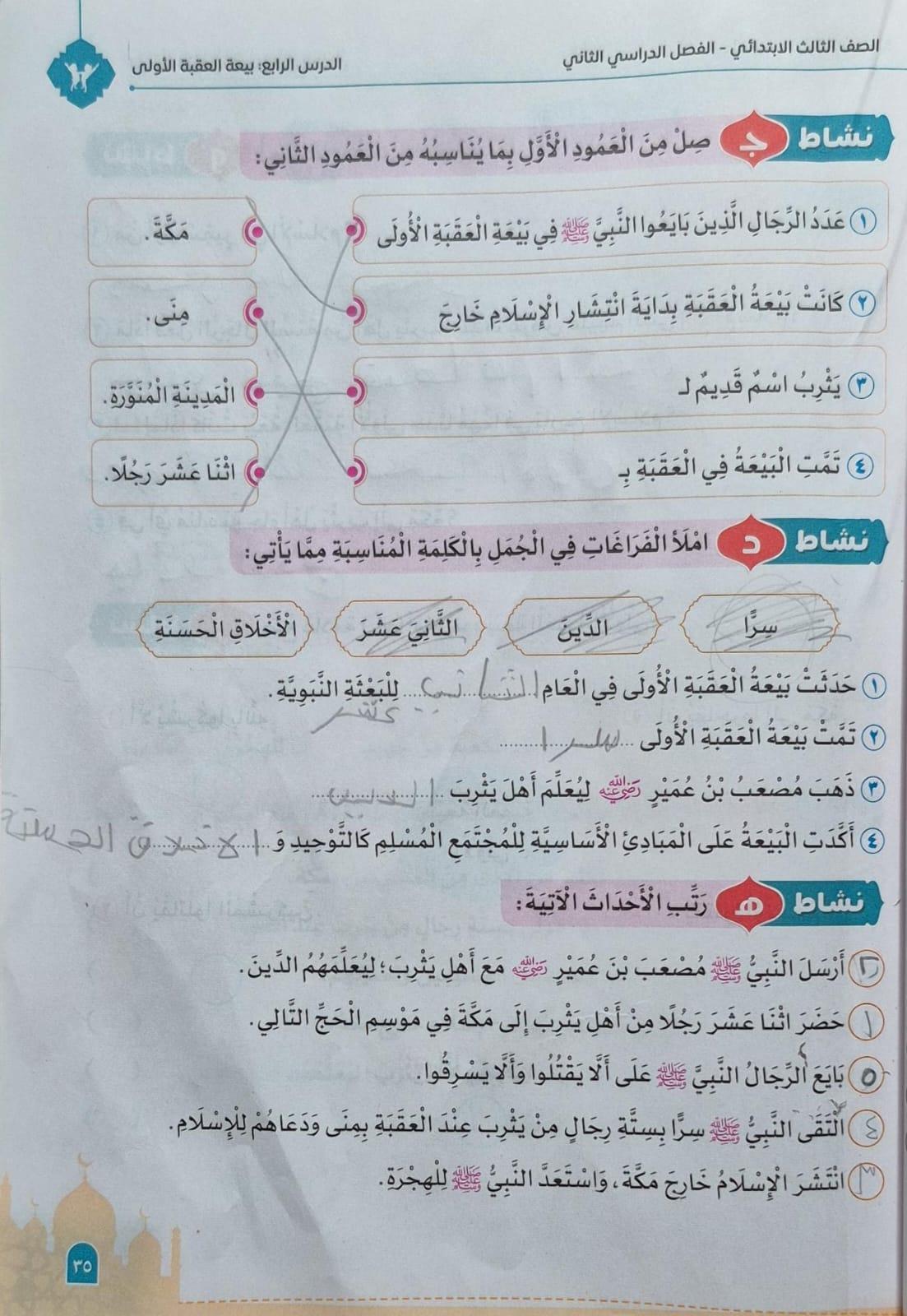 الدرس\ بيعة العقبة الواجب\ حل التدريبات صفحة 35 و36