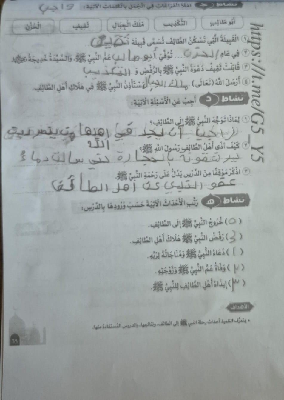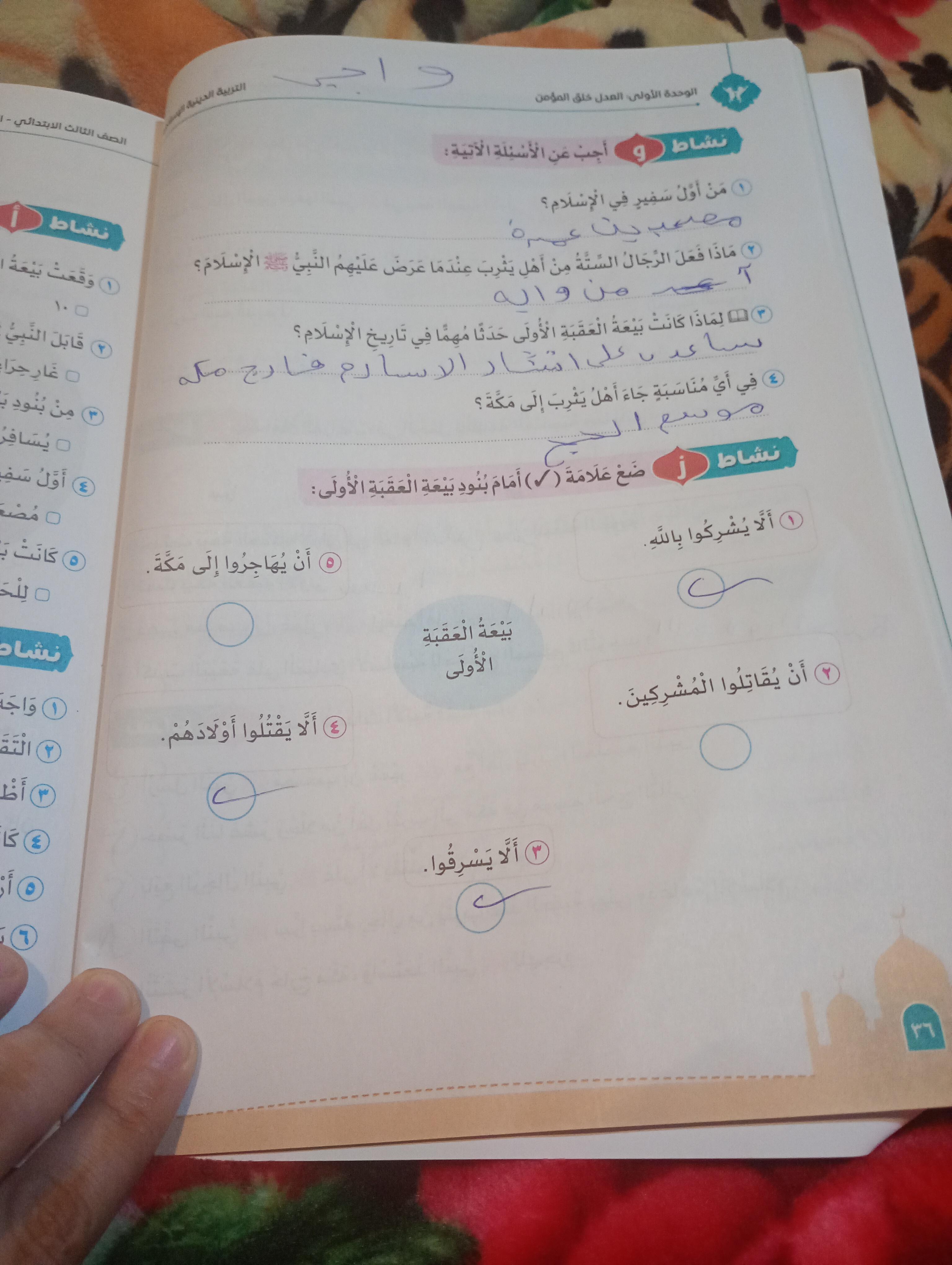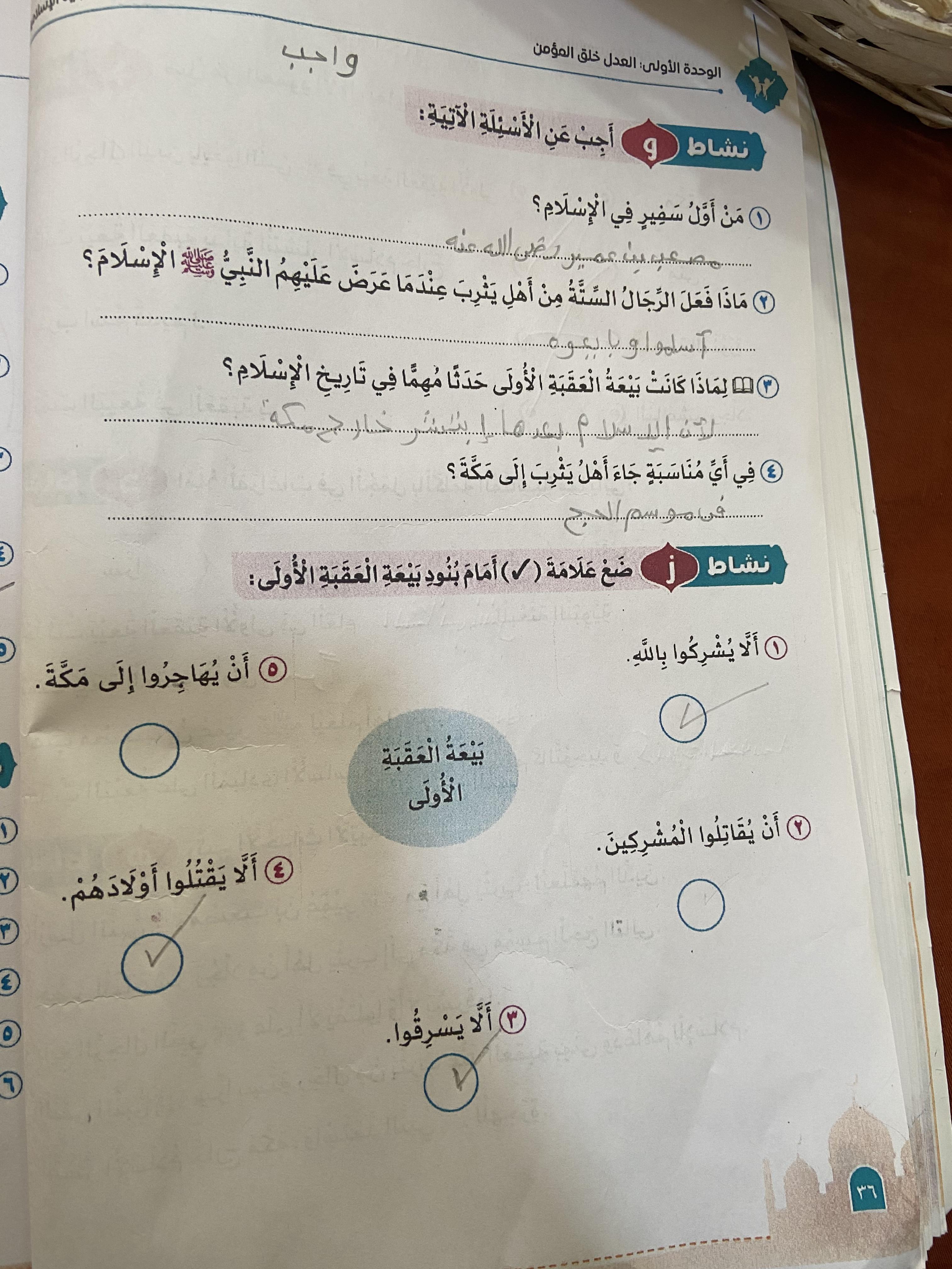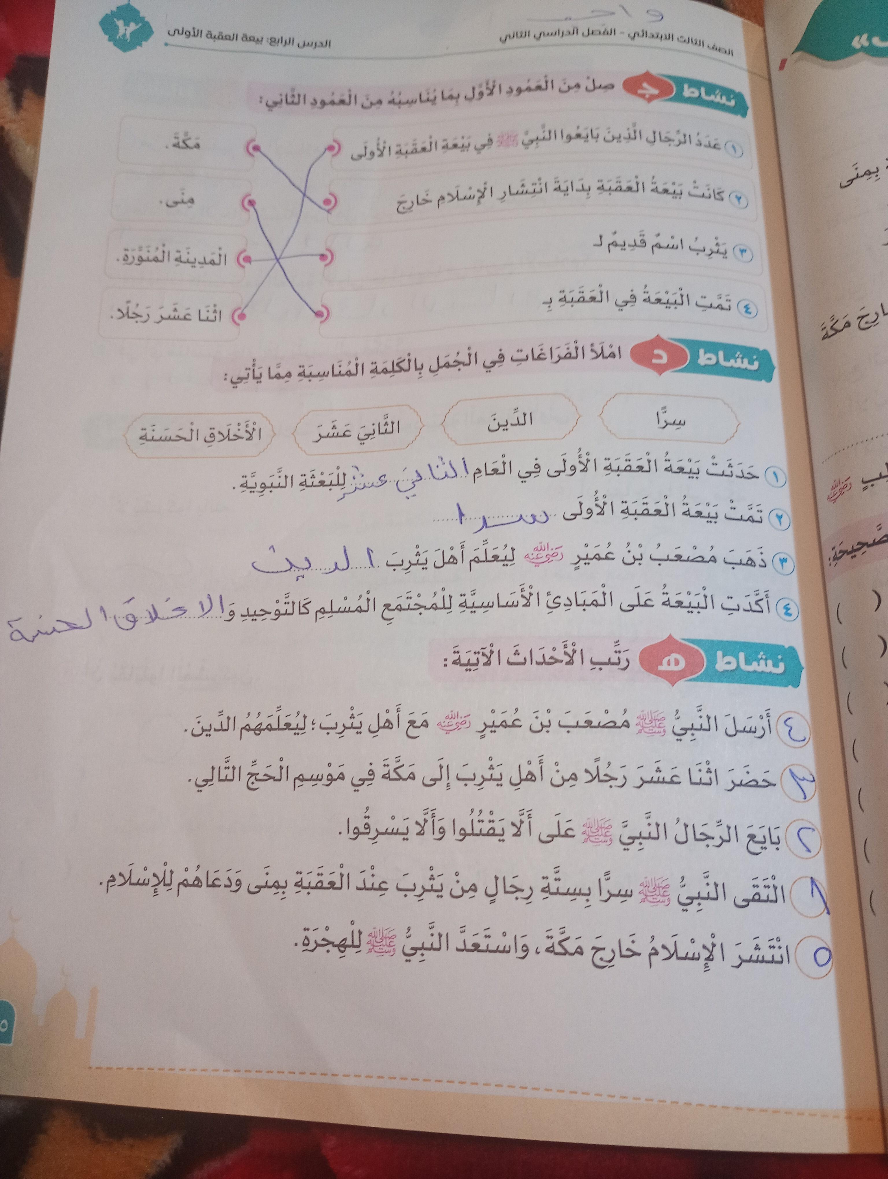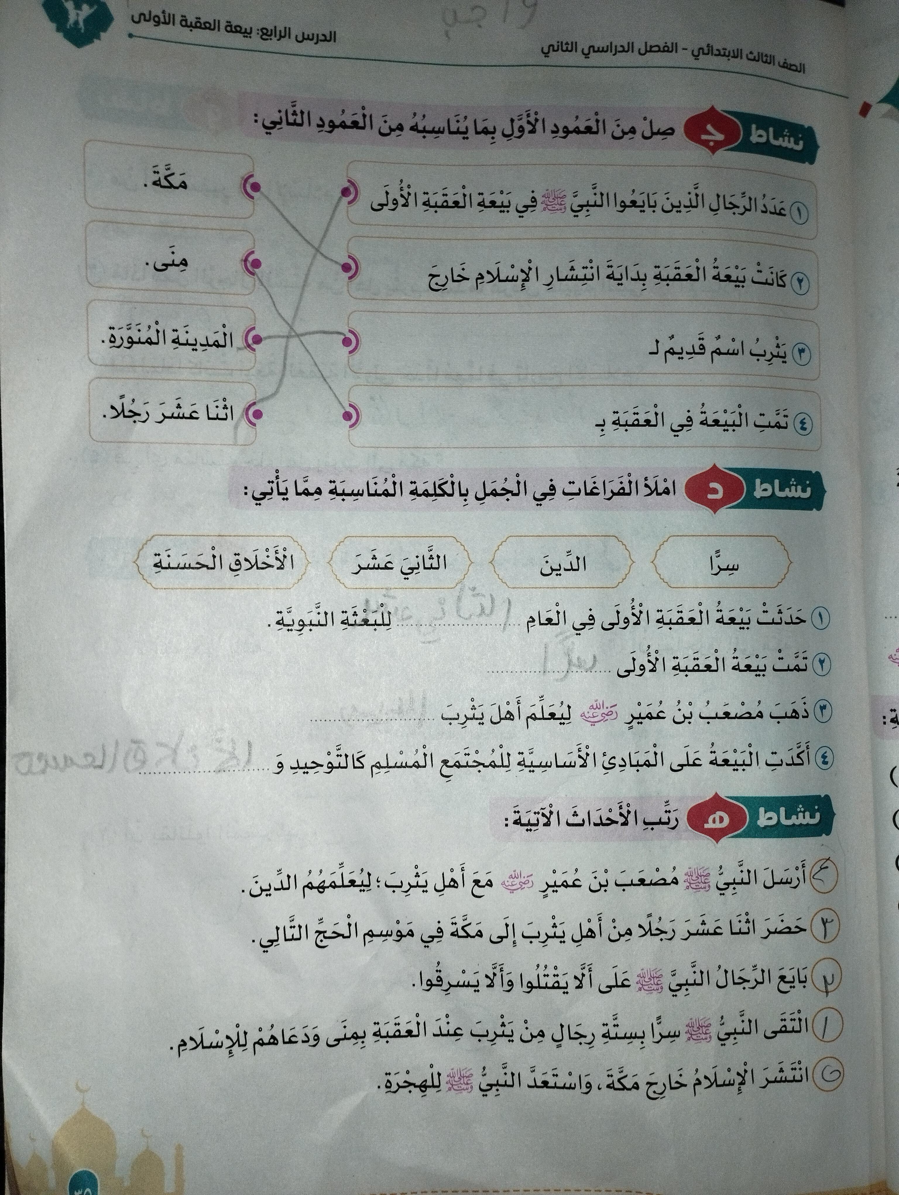 الدرس\ بيعة العقبة الواجب\ حل التدريبات صفحة 35 و36