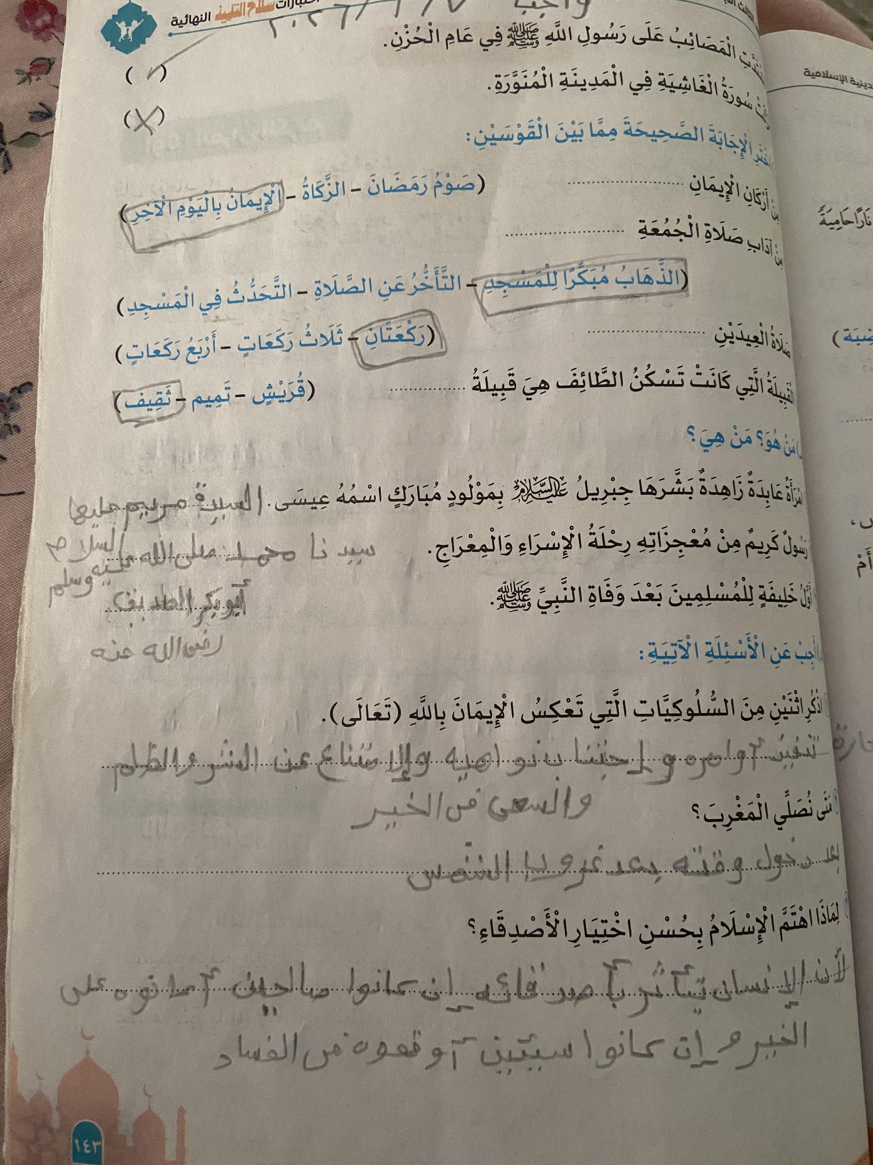 الواجب /حل باقي الإختبار صفحة 143مع الإختبارات الإلكترونية