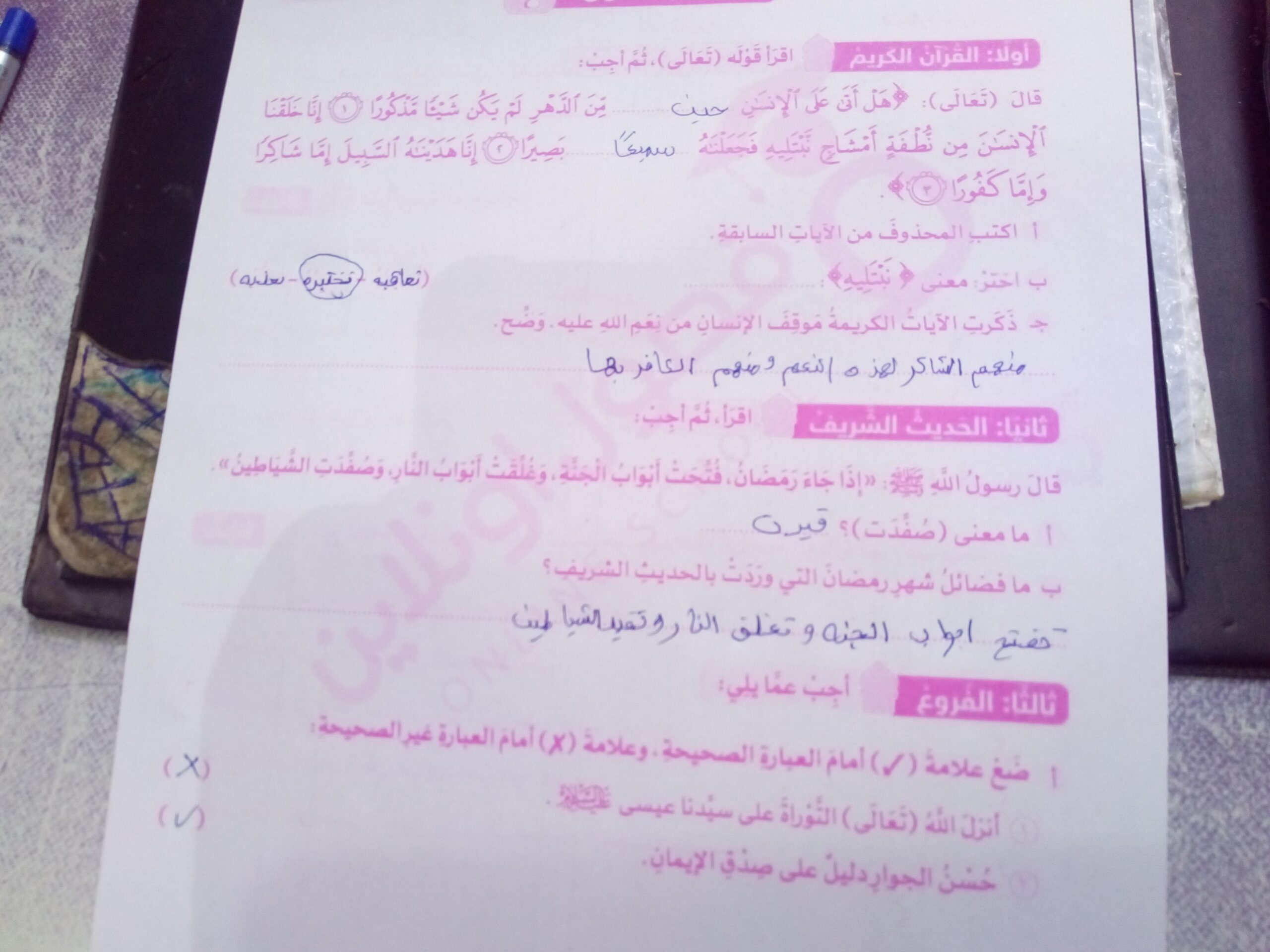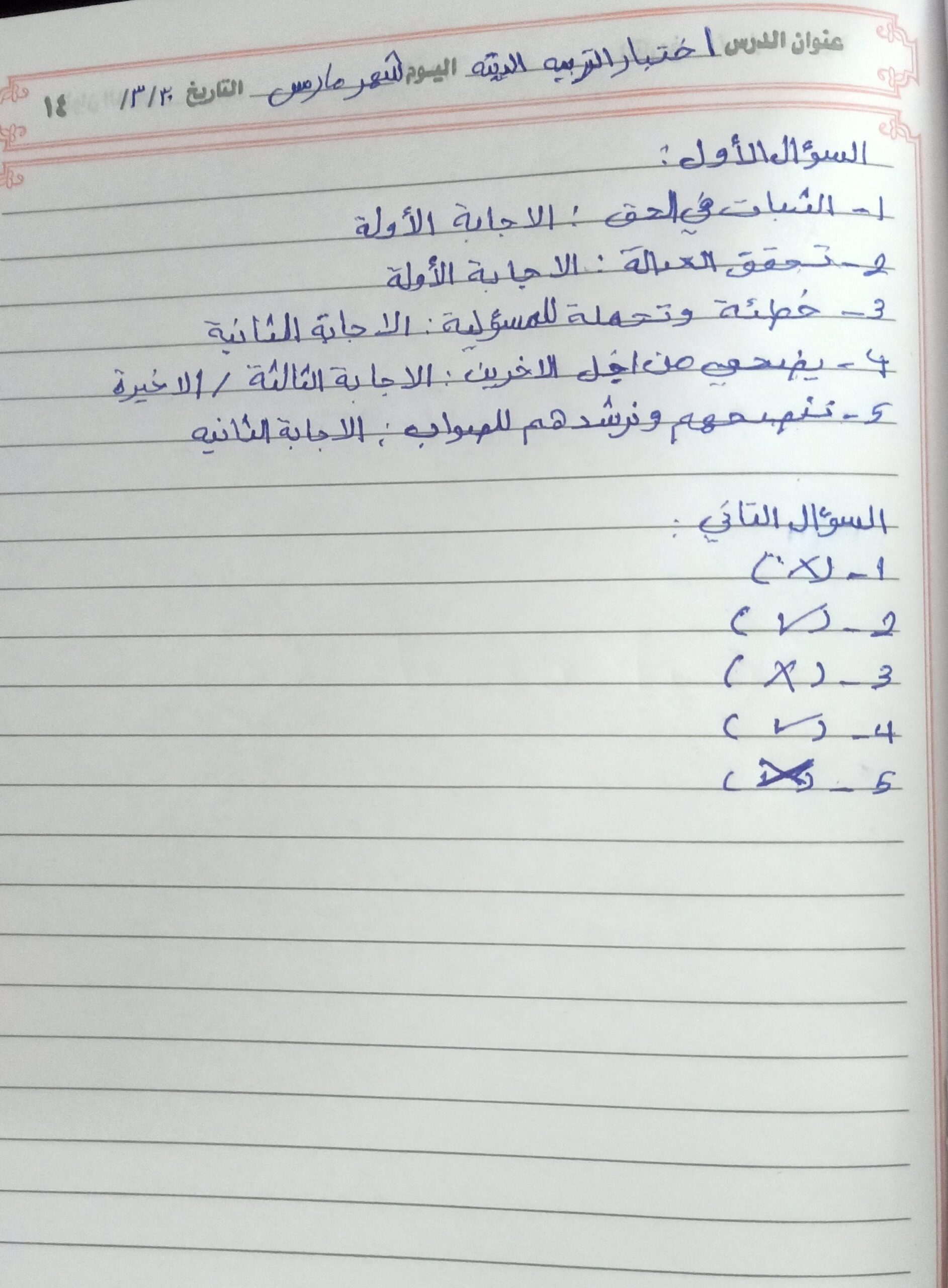 واجب التربية الدينية 🦋🌻✨
