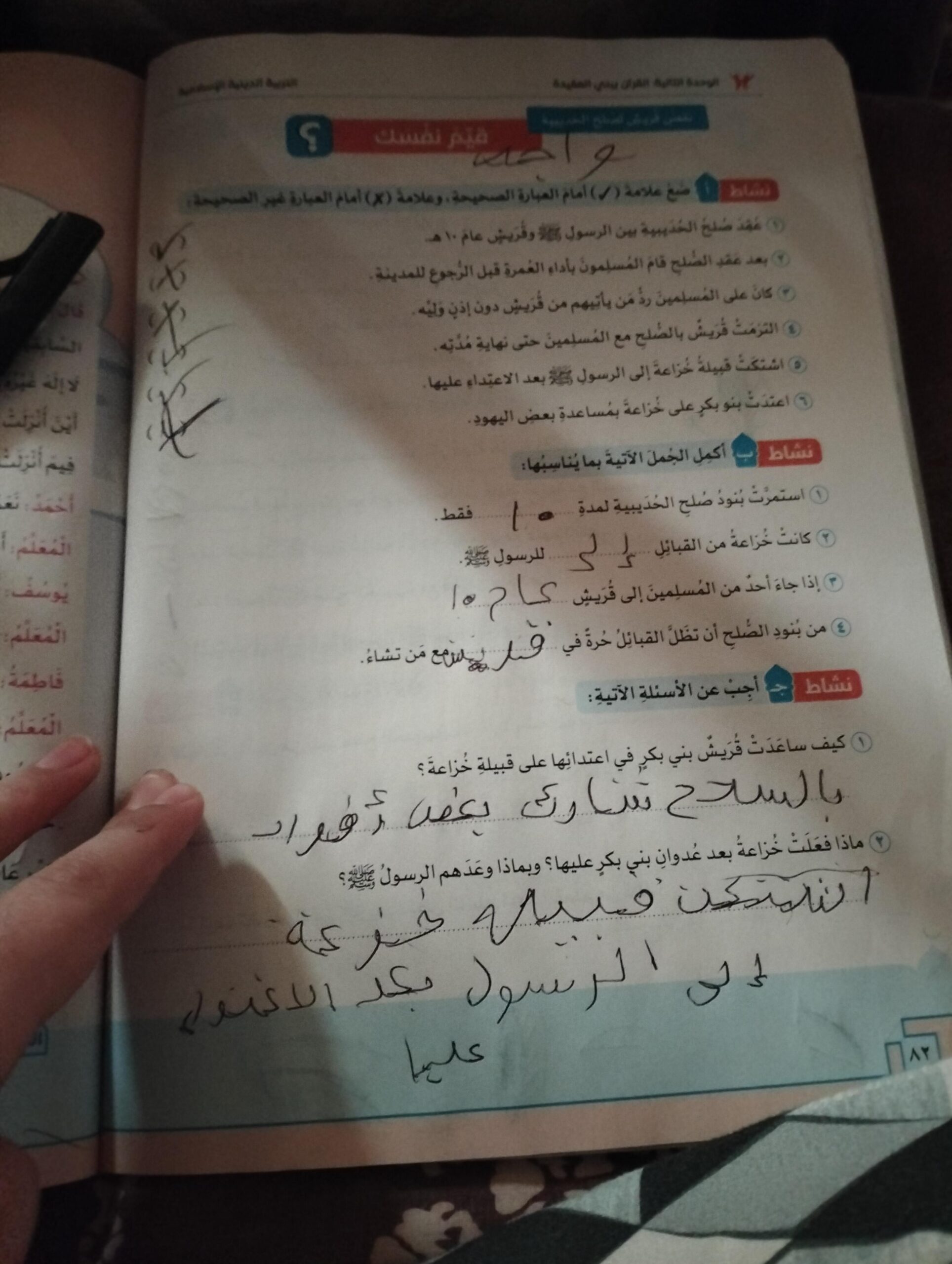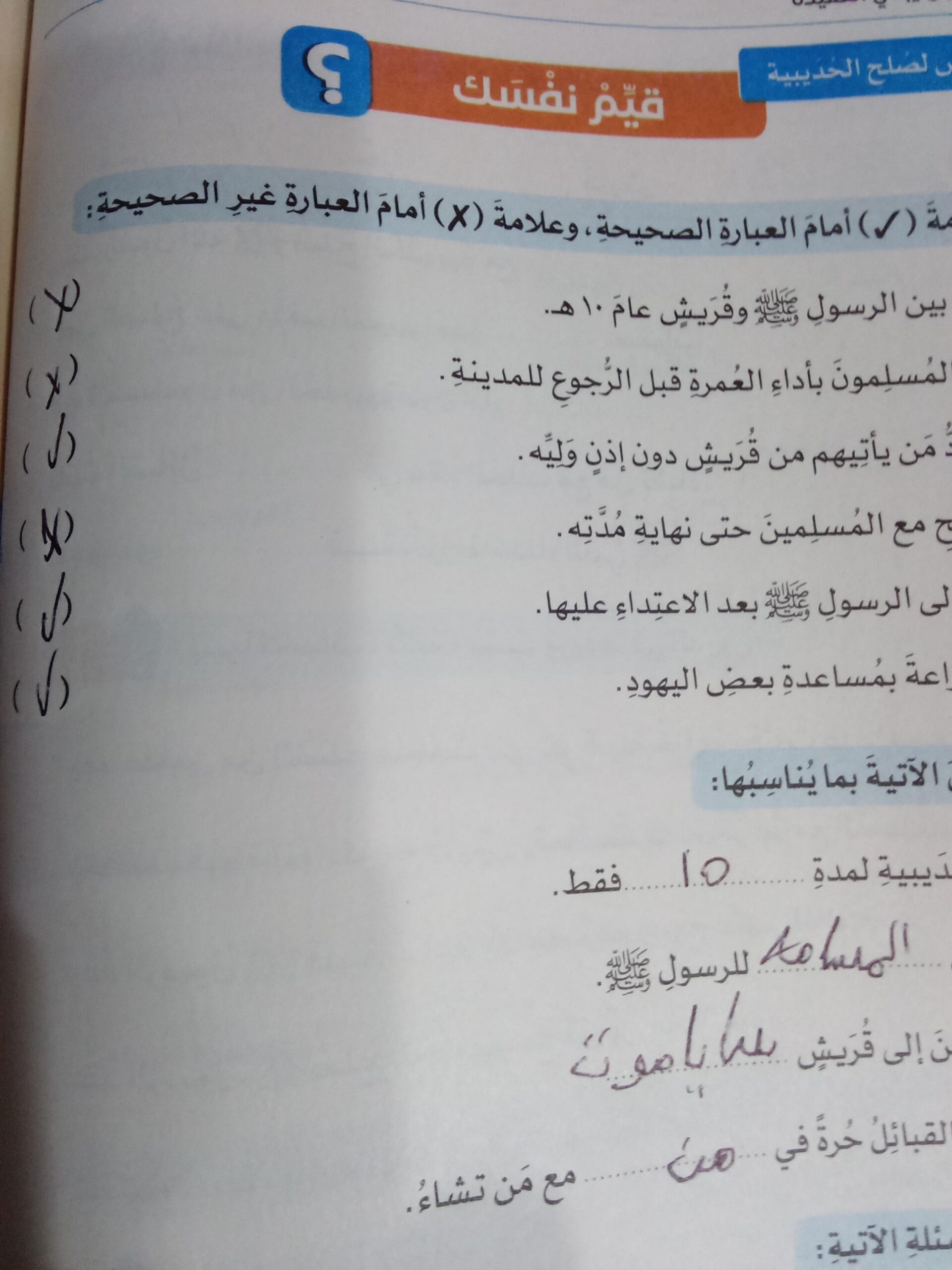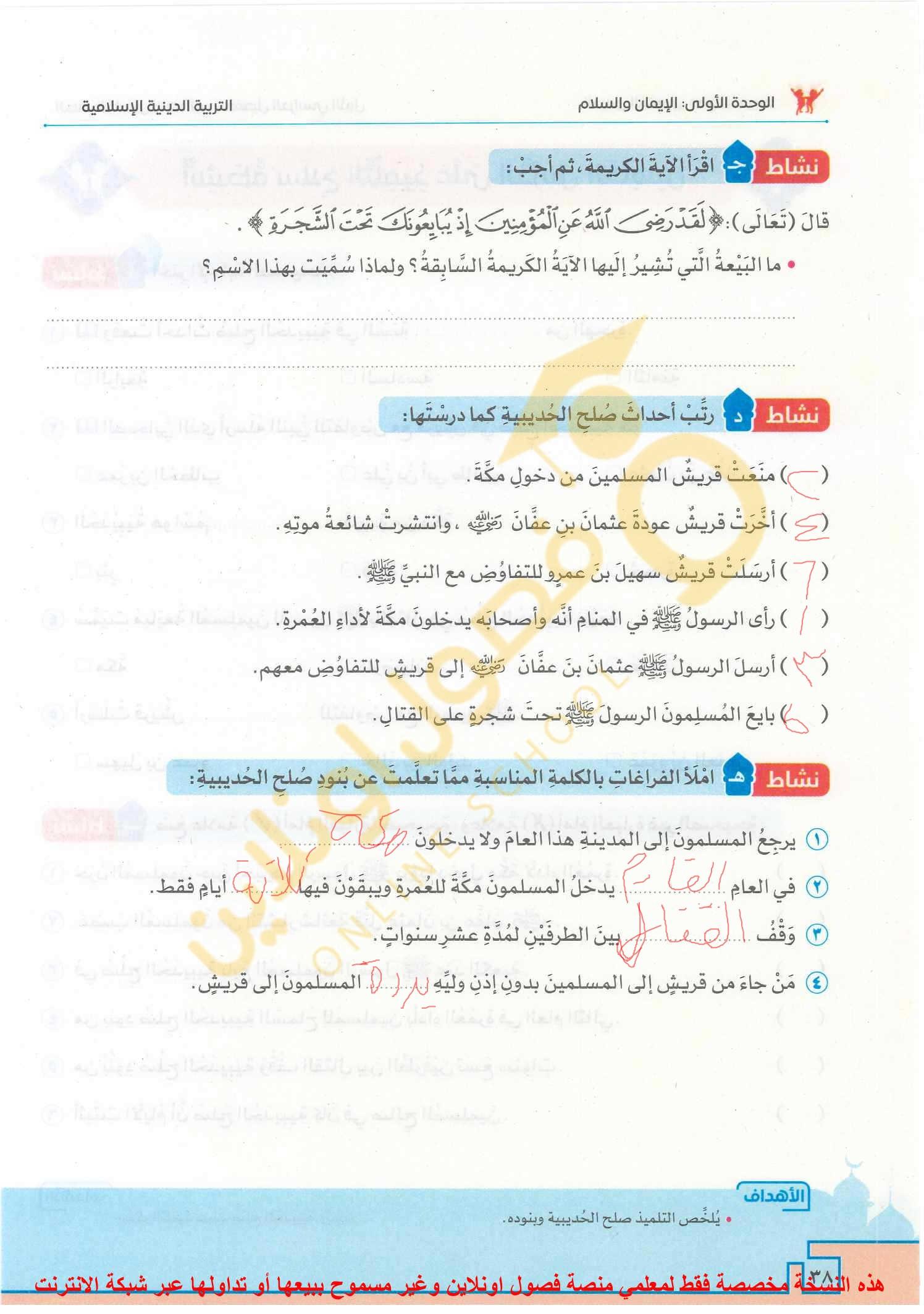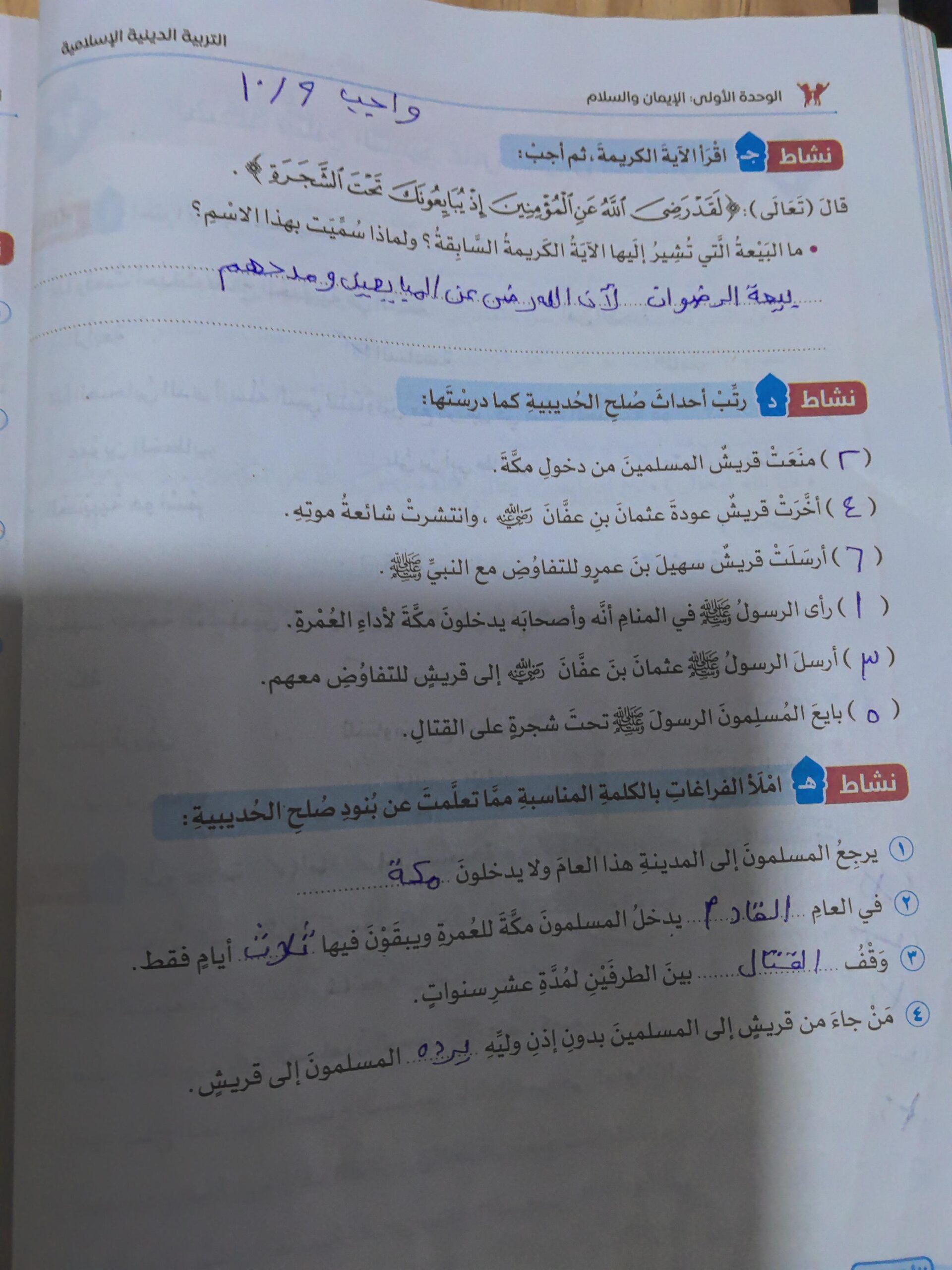 تم اليوم صلح الحديبية وابو ذر الغفاري واجب ص 38