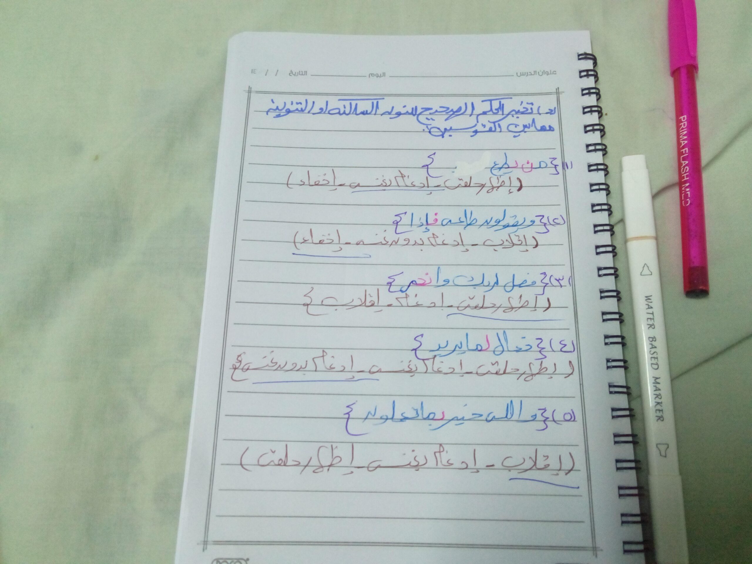 تم اليوم أحكام النون الساكنة والتنوين وصيام شهر رمضان