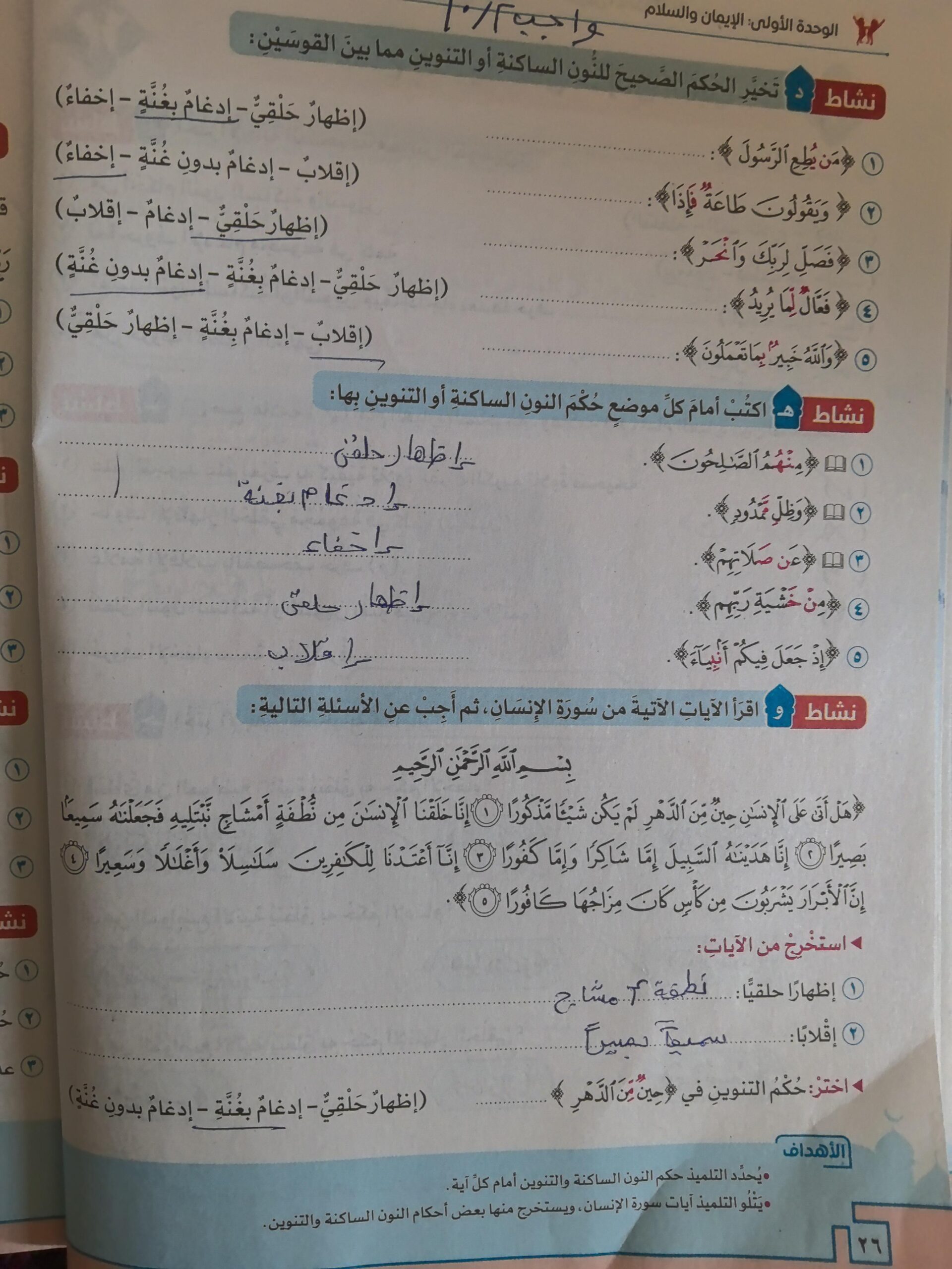 واجب ص 26 نشاط د
