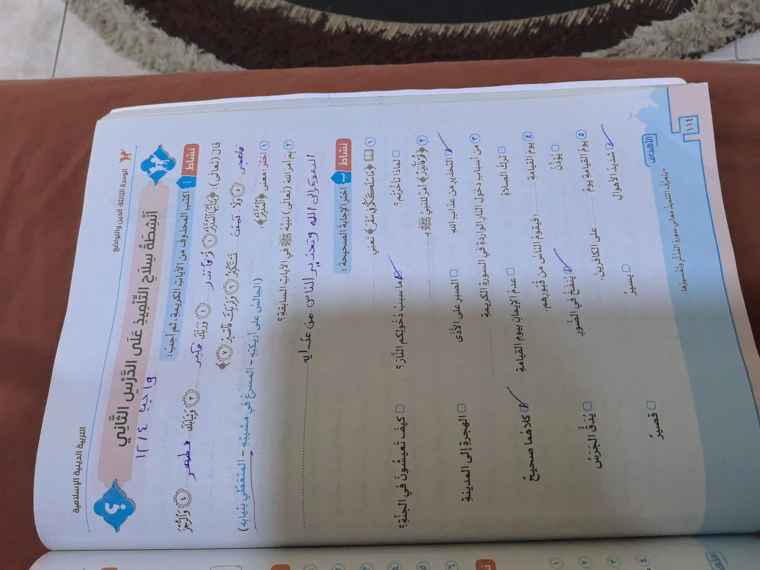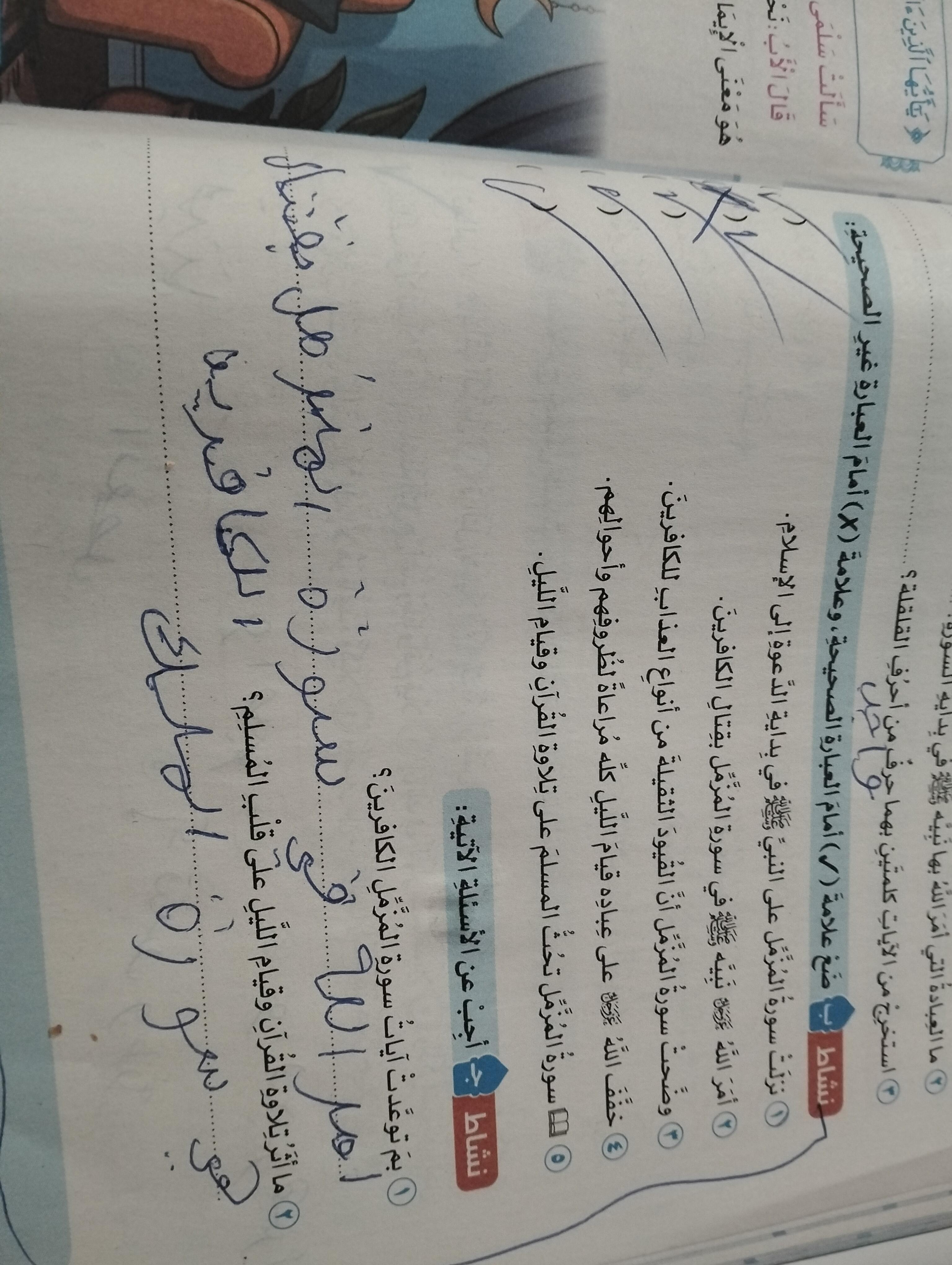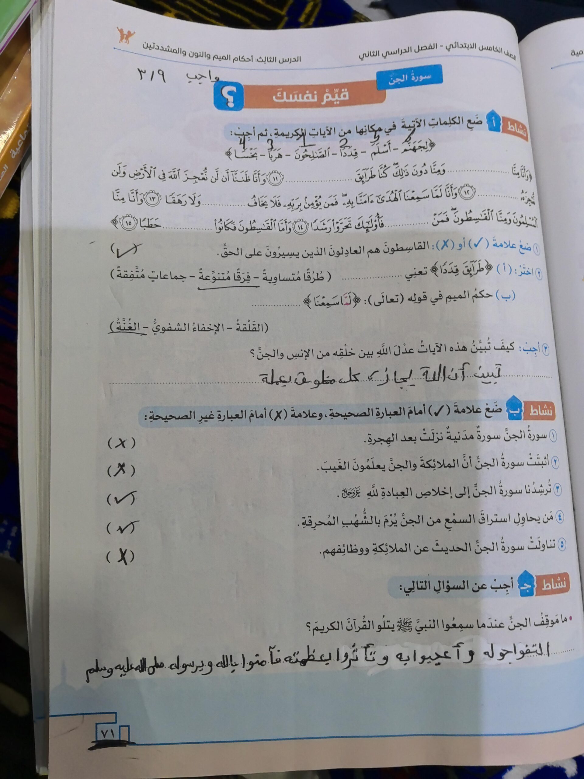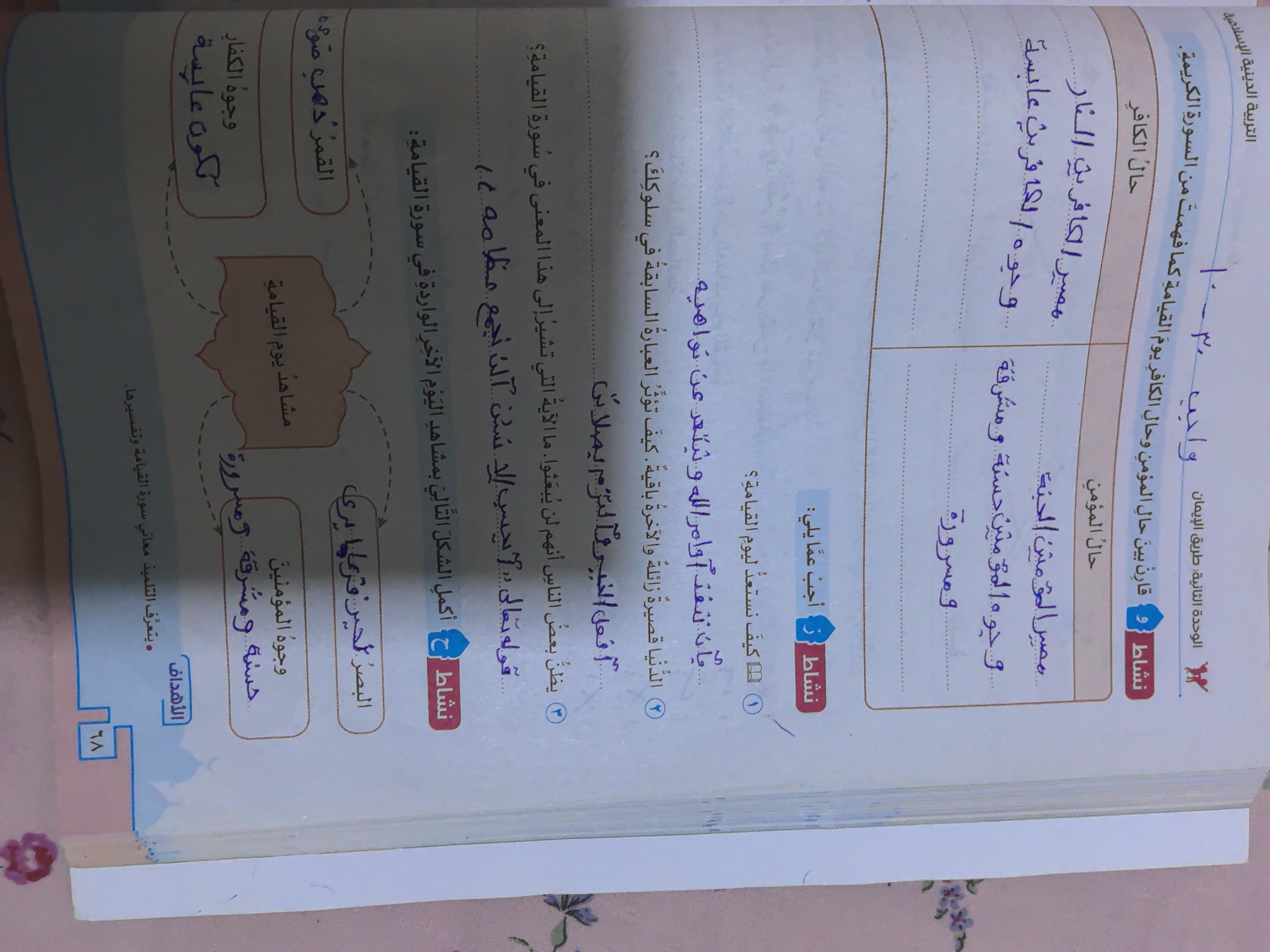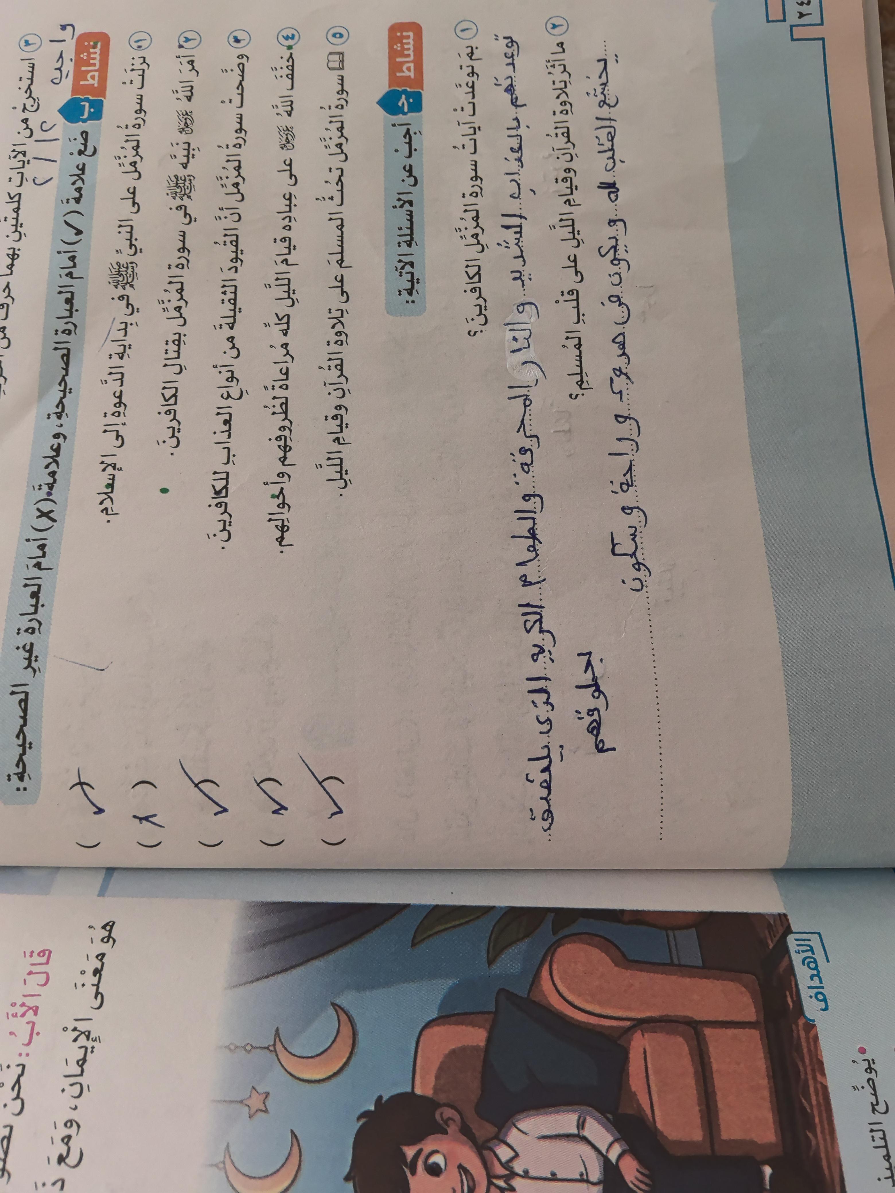 تم اليوم الإيمان بالله / سورة المزمل واجب ص 19 نشاط ح