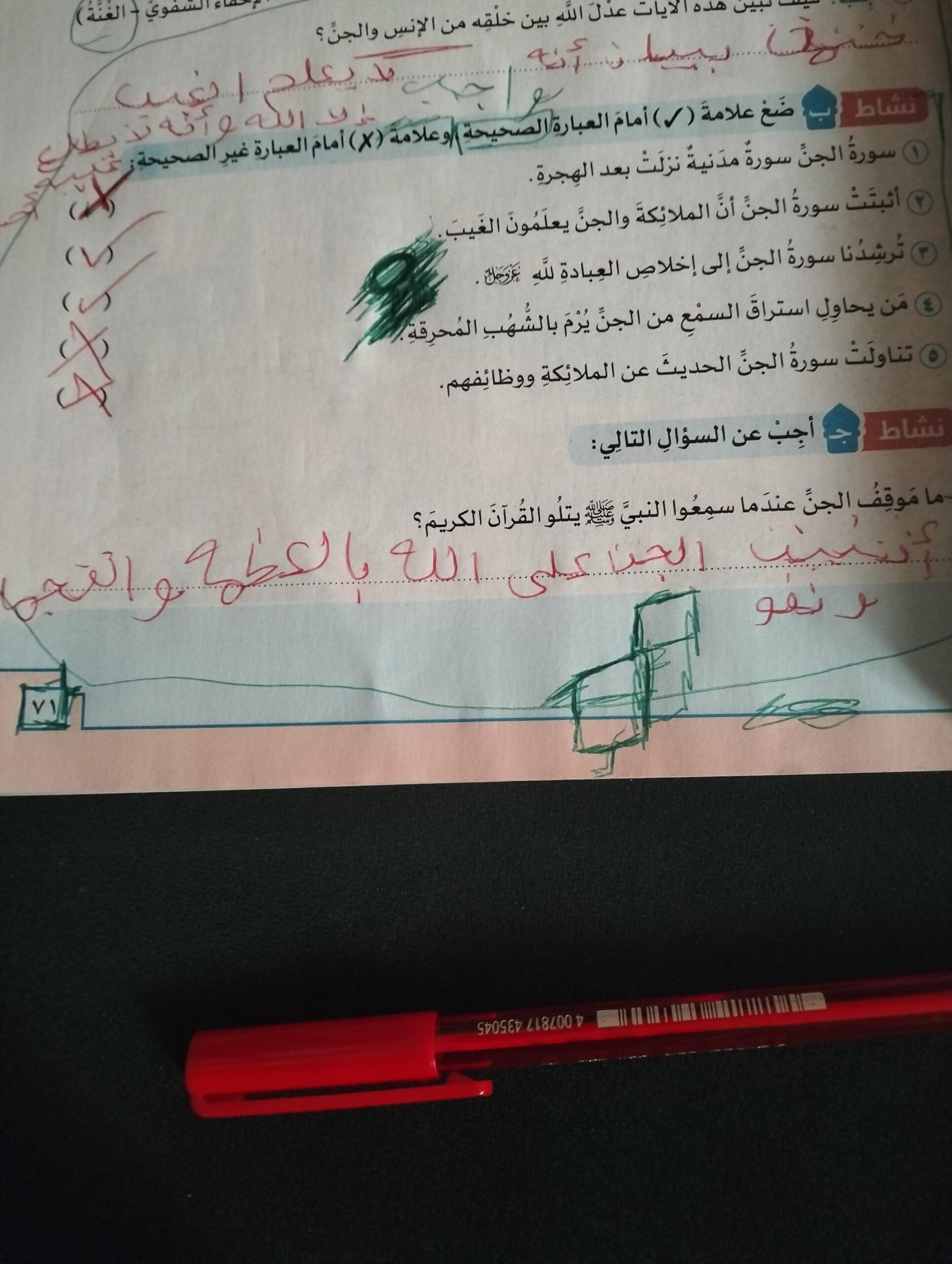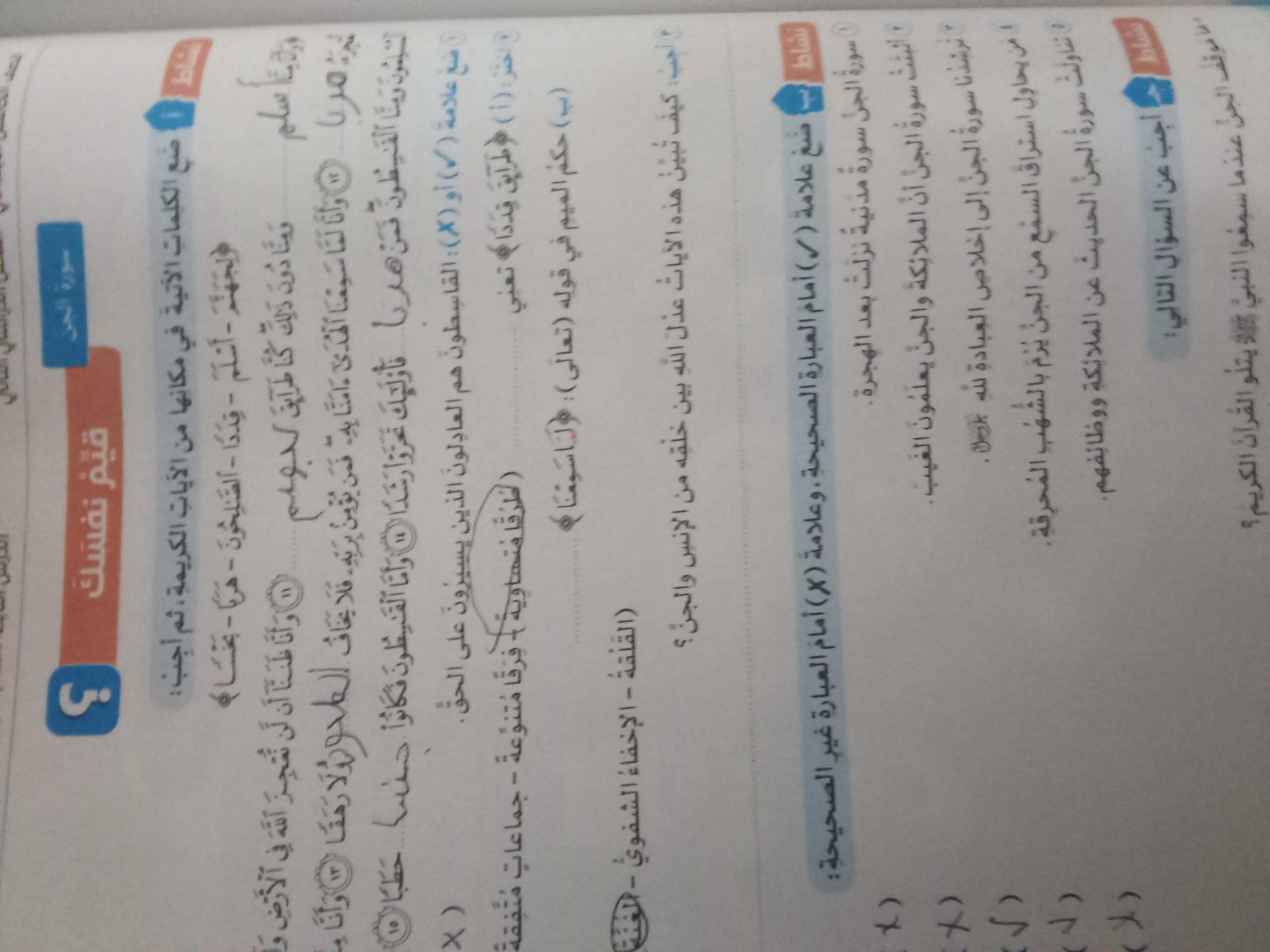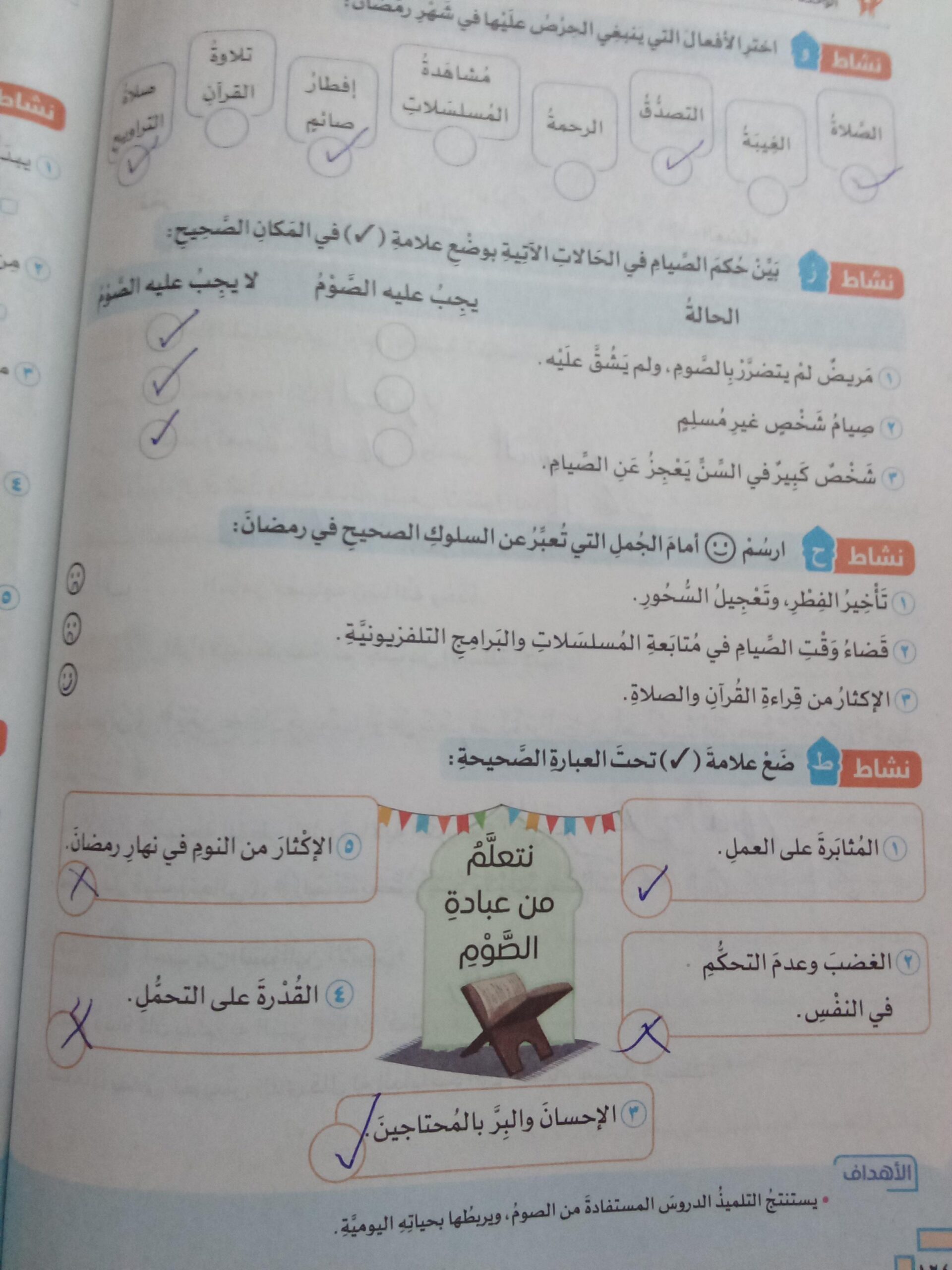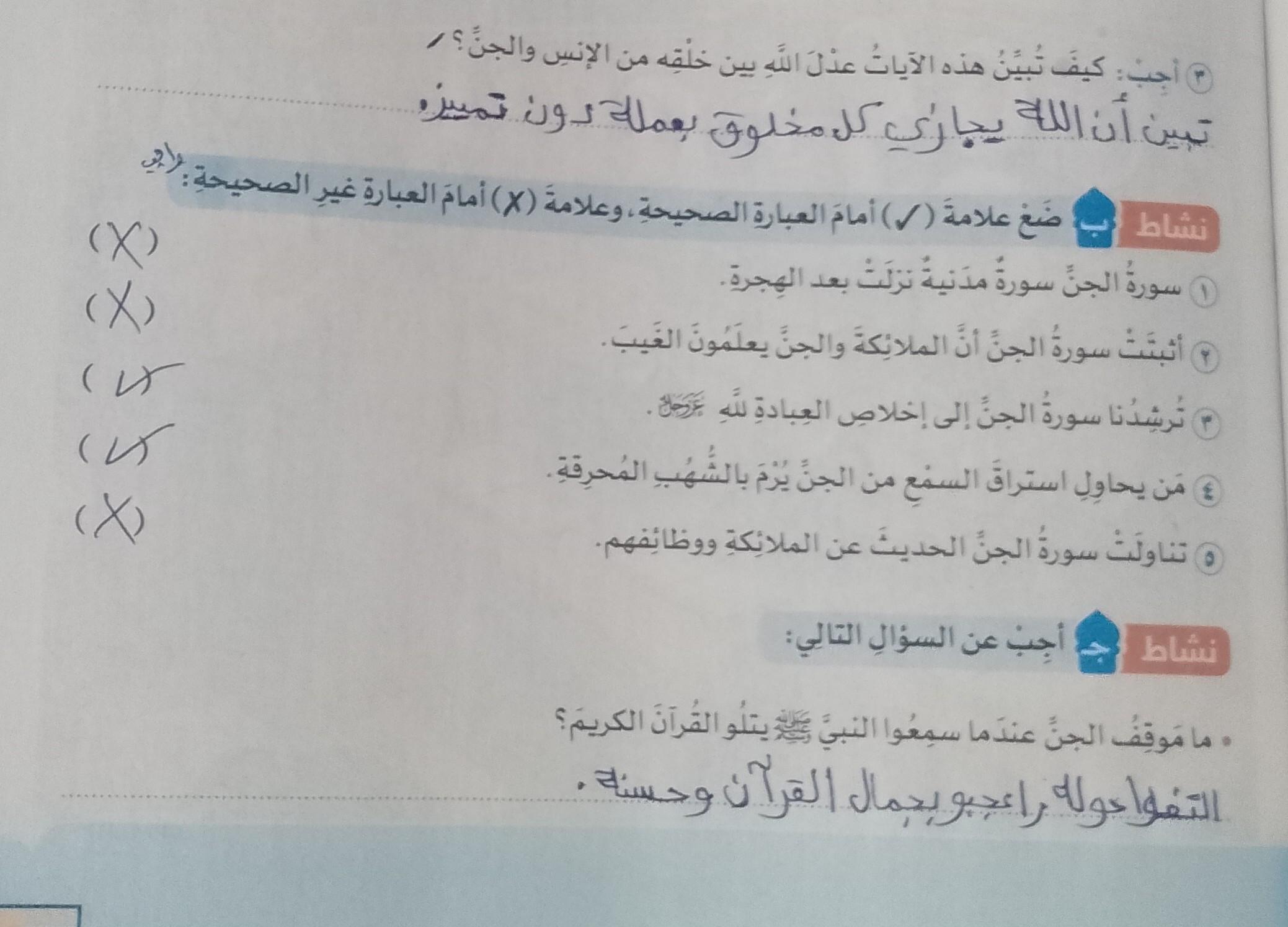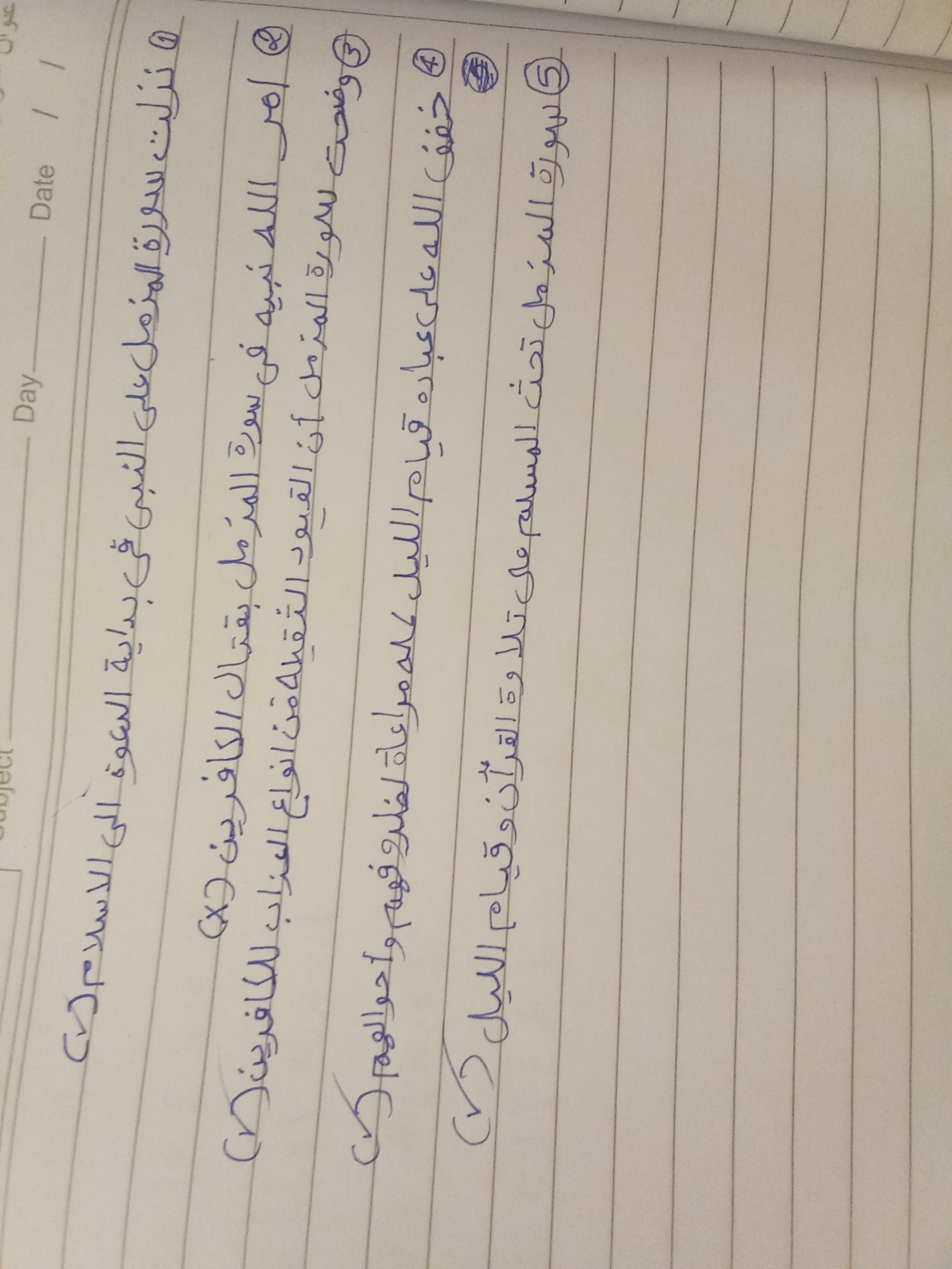 تم اليوم الإيمان بالله / سورة المزمل واجب ص 19 نشاط ح