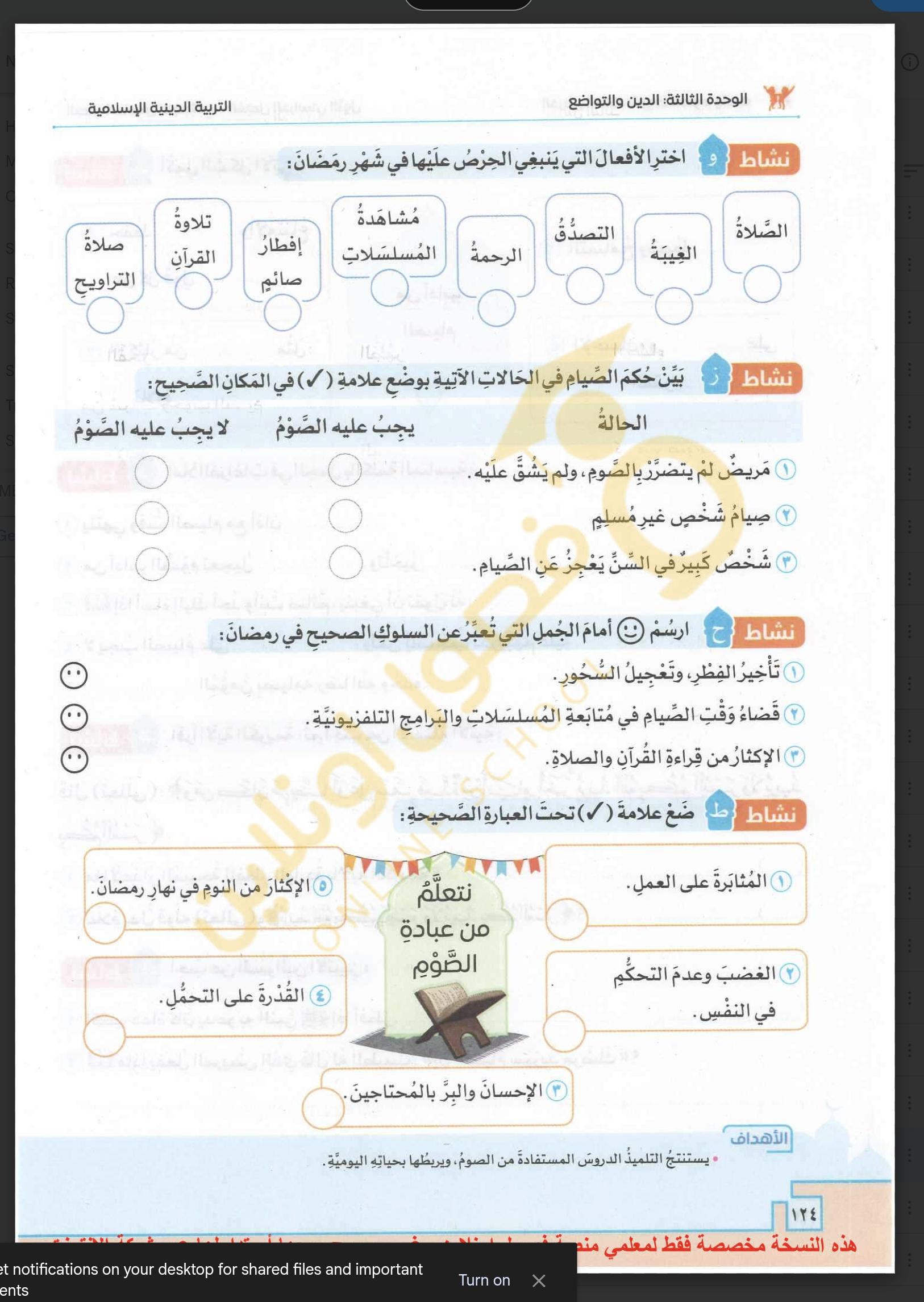 تم اليوم شروط الصوم وغزوة خيبر واجب ص 124