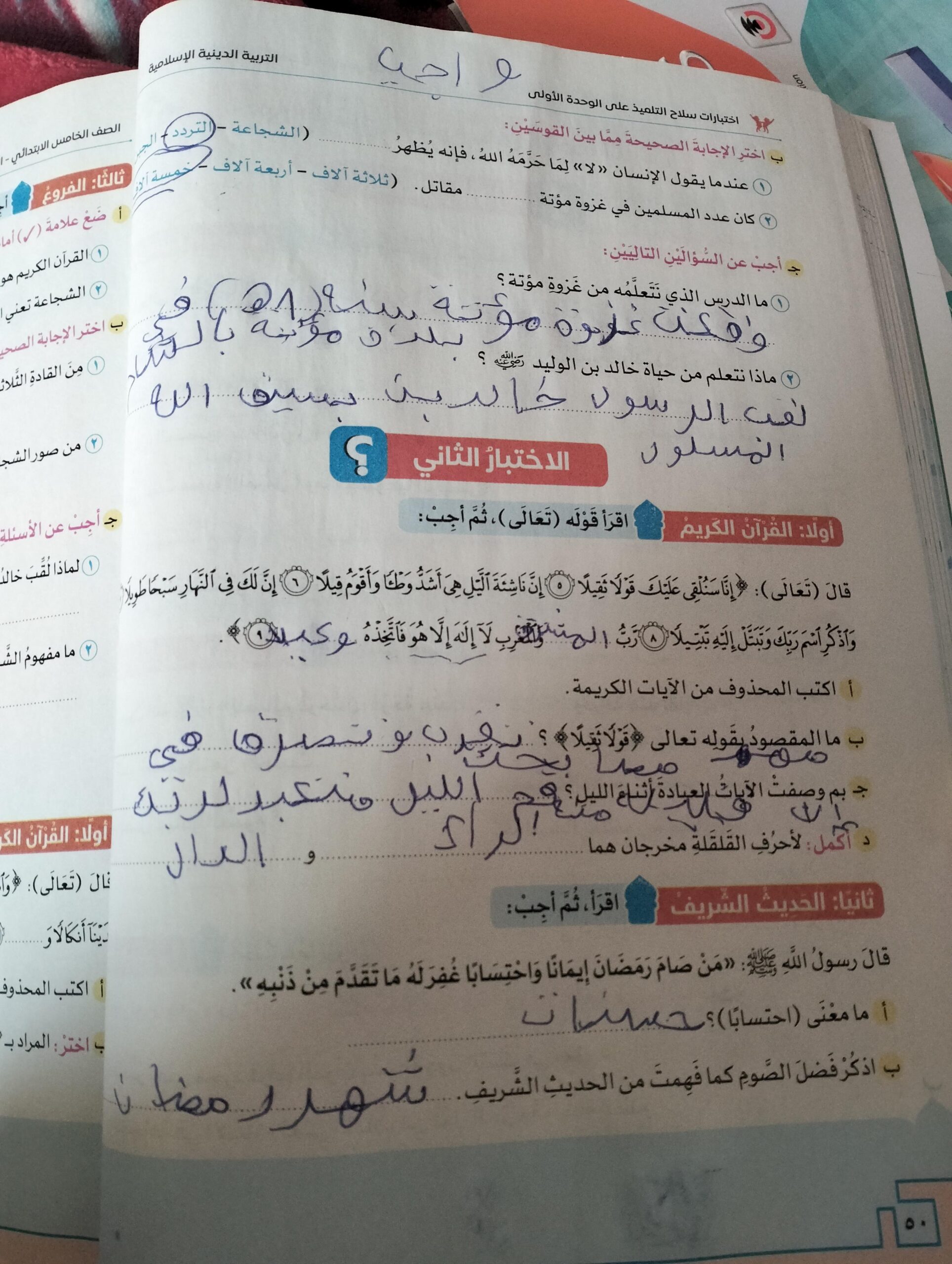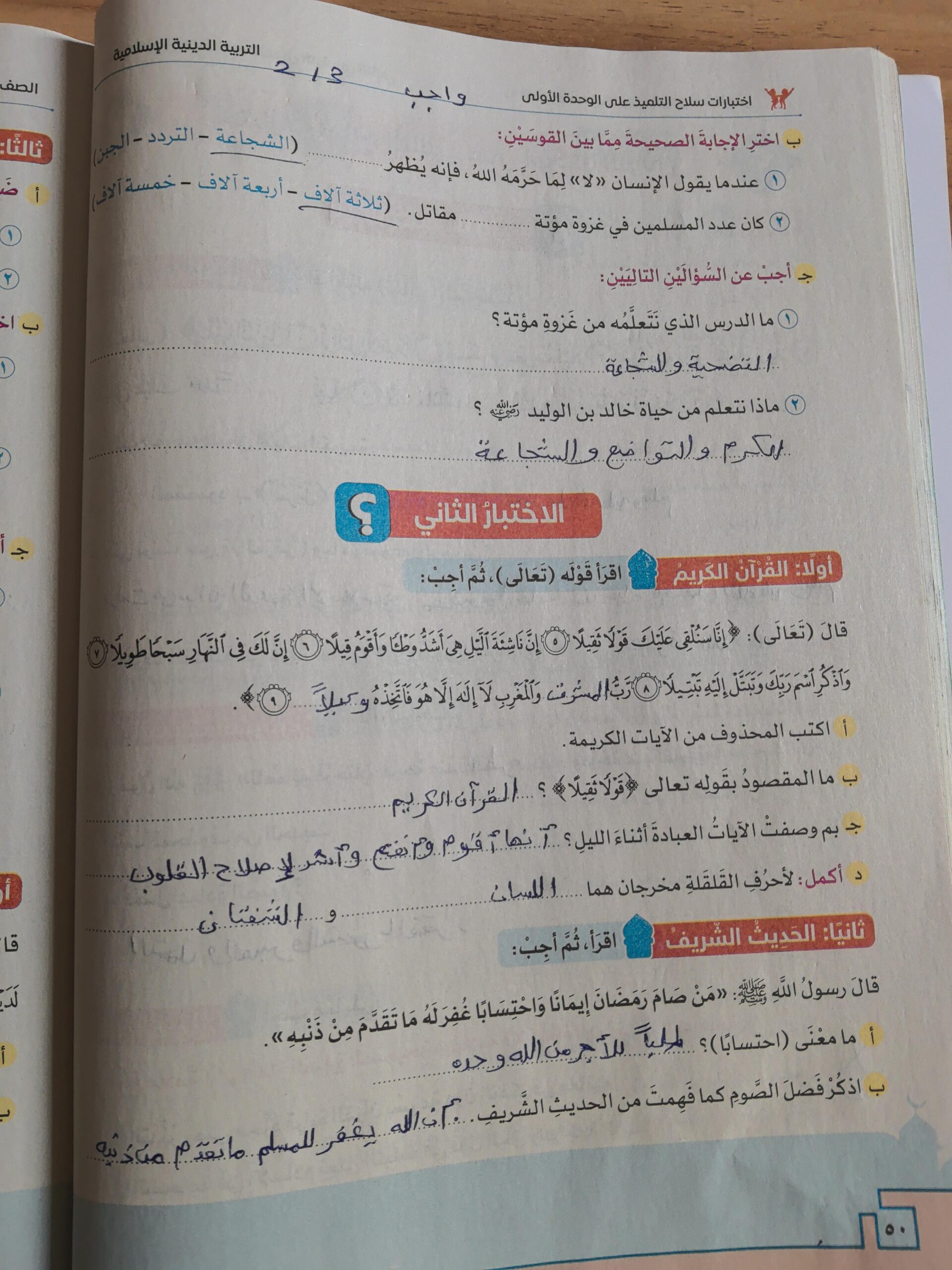 تم اليوم الشجاعة والقرأن عقيدة المؤمن واجب ص 50