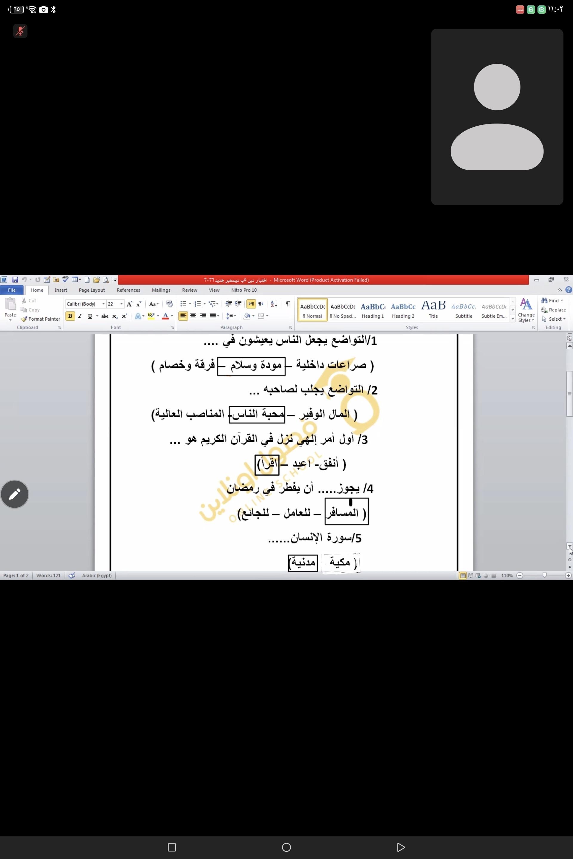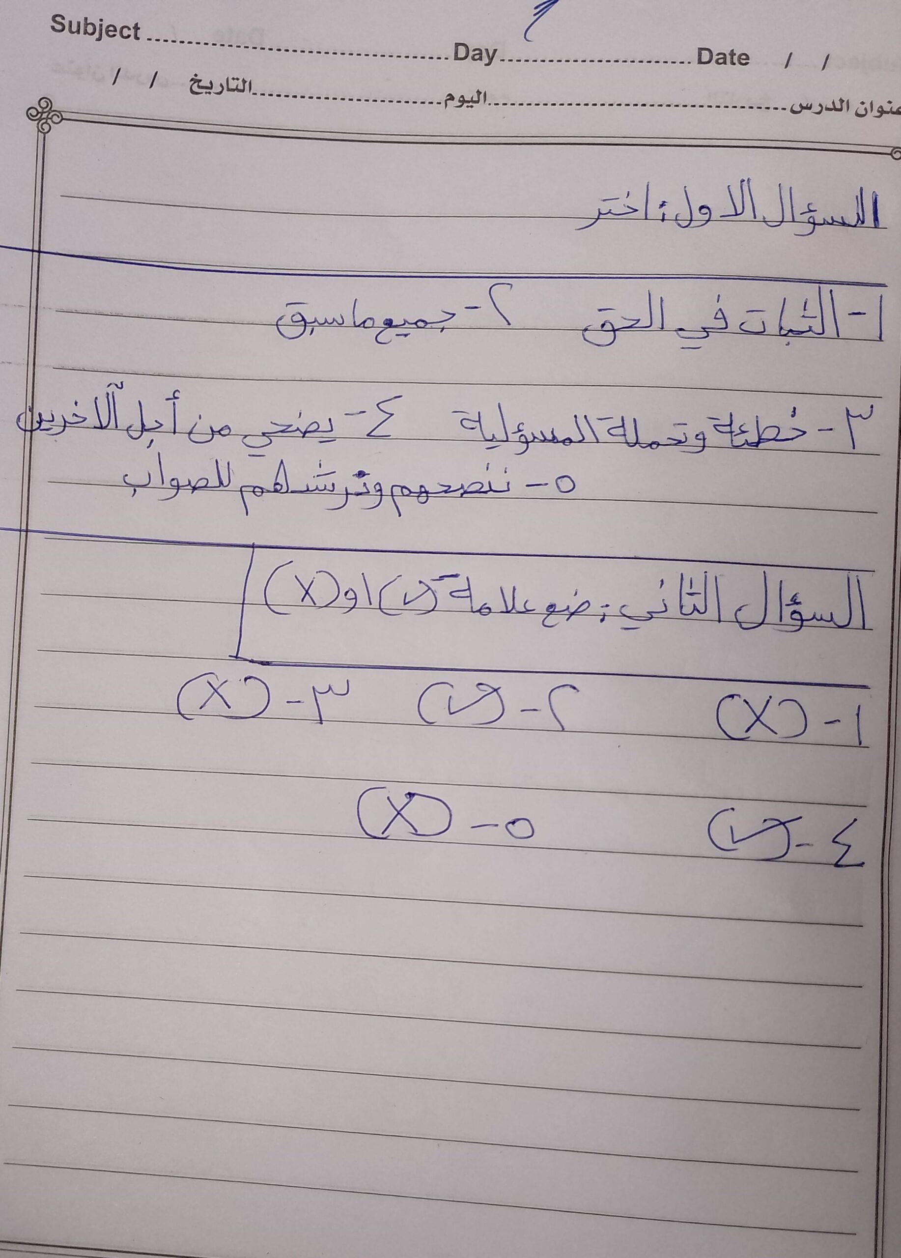 واجب التربيه الاسلاميه…